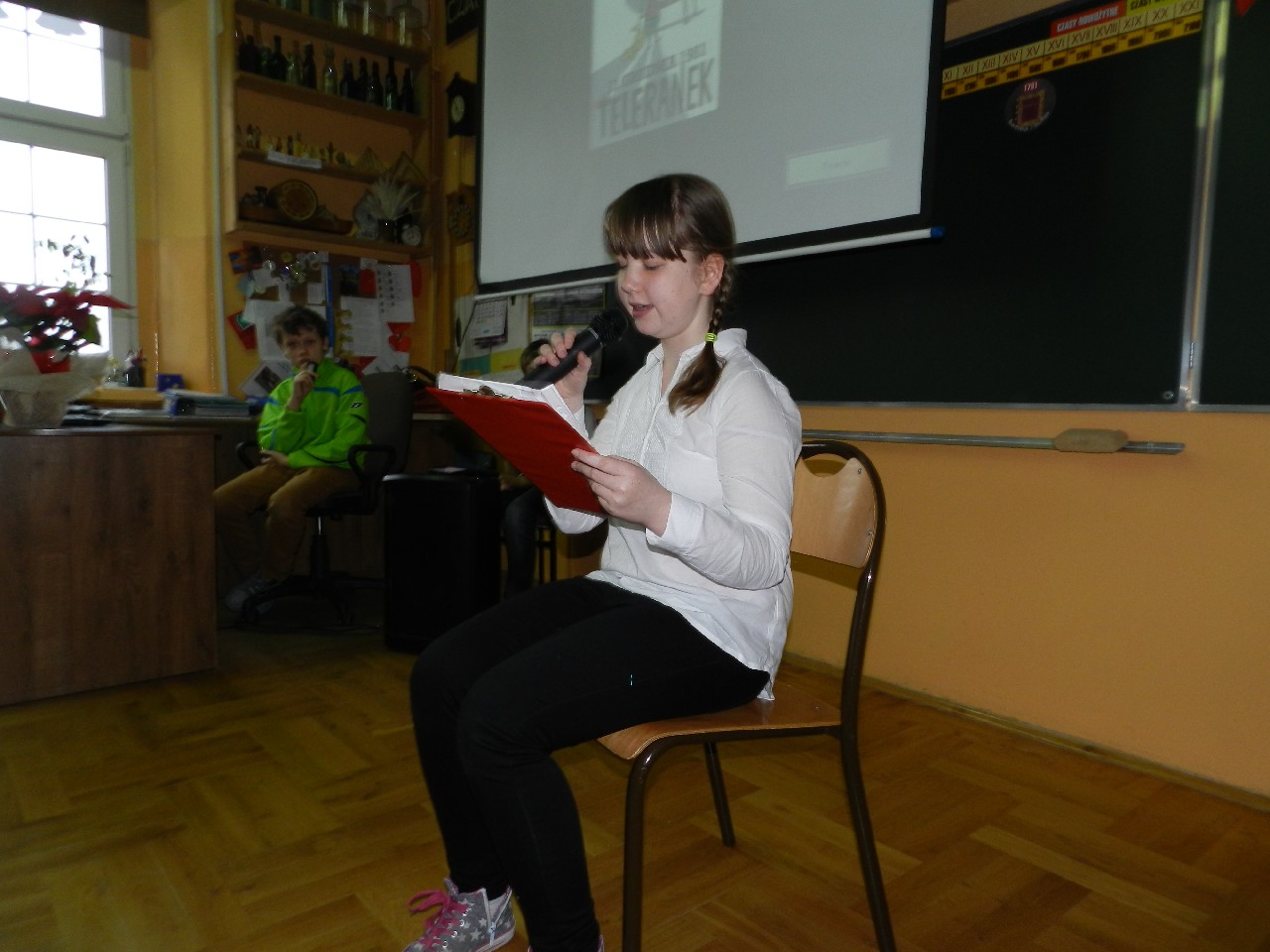 Dzięki naszej koleżance Weronice Dziamara poczuliśmy atmosferę dnia, w którym w Polsce wprowadzono stan wojenny. Nasza koleżanka, wcielając się w rolę swej rówieśniczki, bohaterki Pamiętnika z okresu stanu wojennego, przeczytała fragment pt.”Niedziela bez teleranka”13 grudnia 1981roku.