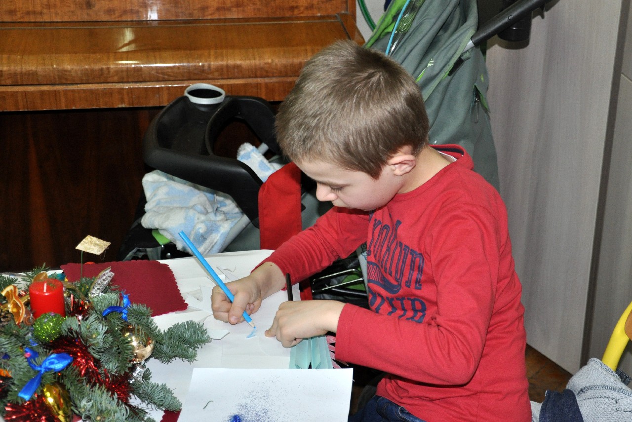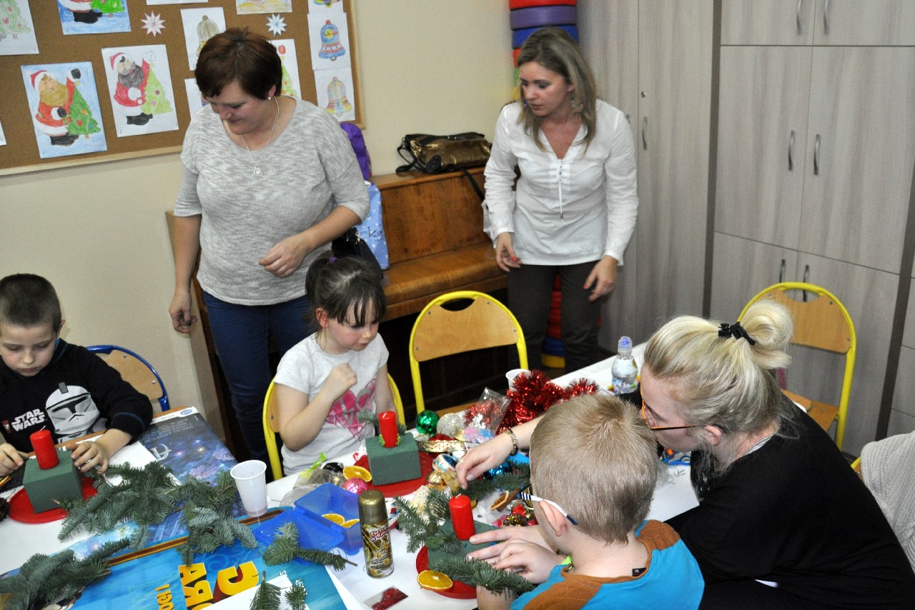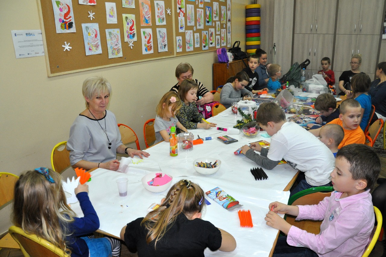 Dzieci wspólnie z rodzicami wykonały śliczne, pachnące stroiki, które potem przystrajały świąteczne stoły. Ozdabiały też lukrem pachnące pierniczki, malowały rajskie ptaki na choinkę. Wspólna praca dostarczyła wszystkim mnóstwo radości i zabawy; świetnie bawili się i „duzi i mali”. Tego wieczoru po raz pierwszy mieliśmy przyjemność posłuchać kolęd w wykonaniu ucznia Witka Sobczaka, który pięknie grał na keyboardzie. Spotkanie upłynęło w radosnej i przyjemnej atmosferze. Dziękujemy wszystkim rodzicom, którzy przyczynili się do tego, aby ten wieczór był magiczny i wyjątkowy… dziękujemy za Państwa obecność.