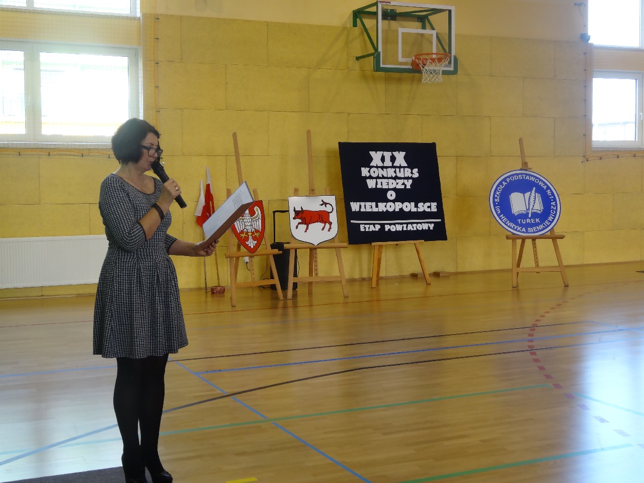 W czwartek, 5 lutego br. w Szkole Podstawowej nr 1 im. Henryka Sienkiewicza w Turku odbył się Etap Powiatowy XIX Konkurs Wiedzy o Wielkopolsce. Honorowy patronat nad uroczystością objęli: starosta turecki i dyrektor SP nr 1 . W szranki stanęło 39 uczniów szkół podstawowych i gimnazjów z terenu powiatu tureckiego, podzielonych na poszczególne kategorie wiekowe.