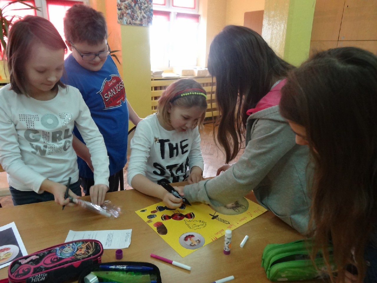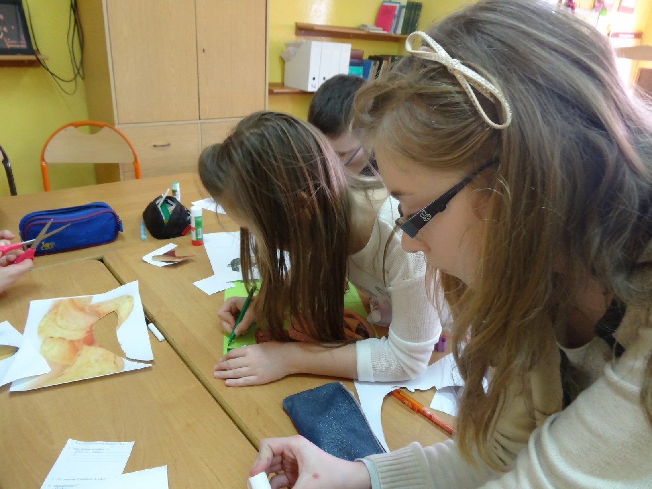 Na początku zajęć pani zadała nam mnóstwo pytań na temat składników pokarmowych. Oczywiście na każde z nich staraliśmy się odpowiedzieć jak najlepiej. Dietetyczka była mile zaskoczona naszą znaczną wiedzą dotyczącą odżywiania. Następnie prowadząca rozdała nam krótką ankietę, dotyczącą naszych nawyków żywieniowych. Zawierała ona pytania typu: Jakie jest twoje ulubione śniadanie? Co najczęściej pijesz? Później podzieleni zostaliśmy na cztery grupy o nazwach: sole mineralne, cukry, tłuszcze i białka. Zadaniem każdego zespołu było wybranie pożywienia, w którym zawarta jest największa ilość składnika pokarmowego znajdującego się w nazwie jego grupy. Ćwiczenie to okazało się świetną zabawą i nauką. W dalszej części spotkania dowiedzieliśmy się, jaka jest różnica w zawartości cukru pomiędzy zdrowymi, naturalnymi płatkami a ich niezdrowymi , sztucznymi odpowiednikami. Okazało się, że rozbieżność jest bardzo duża. Wszyscy również bardzo się zdziwili, gdy okazało się, że jeden baton zawiera dziesięć łyżeczek cukru. Podobna sytuacja miała miejsce, kiedy zaczęliśmy porównywać trzy różne jogurty. Następnie – po krótkiej przerwie – pani dietetyk rozdała nam kartki, pisaki i inne materiały, za pomocą których tworzyliśmy plakaty na temat: Zachęć swoich kolegów do zdrowego odżywiania. Po wykonaniu zadania każdy zespół zaprezentował swoją pracę. Plakaty były różnorodne, ale spełniały swoją rolę i w sugestywny sposób nakłaniały do prawidłowego odżywiania. Potem przyszedł czas na zadawanie pytań, na które prowadząca spotkanie odpowiadała bardzo precyzyjnie. Na zakończenie otrzymaliśmy zadanie domowe –mieliśmy rozwiązać quiz podsumowujący naszą wiedzę. Na pożegnanie każdy uczeń otrzymał zdrowe, soczyste i pachnące jabłko.