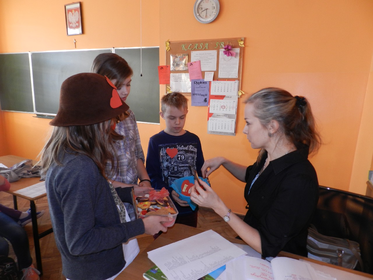 WALENTYNKI przypadają 14 lutego, w naszej szkole obchodziliśmy je 13 lutego w piątek. Samorząd szkolny wymyślił na ten dzień różne atrakcje. Przygotowali oni ponad sto czerwonych serc z napisem” WALENTYNKI 2015”.Uczniowie klasy V d rozdawali je nauczycielom i uczniom. Zorganizowali też podczas przerw dyskotekę. Odbywała się ona na korytarzu, wszyscy się świetnie bawili. Przedstawiciele samorządu i uczniowie przynieśli do szkoły upieczone ciastka w kształcie serc. Częstowali nimi kadrę nauczycielską i siebie nawzajem. Prawie wszyscy uczestnicy WALENTYNEK mieli przypięte do ubrania czerwone serca. Atmosfera tego dnia była wspaniała, było dużo śmiechu i radości. Był to SUPER dzień.