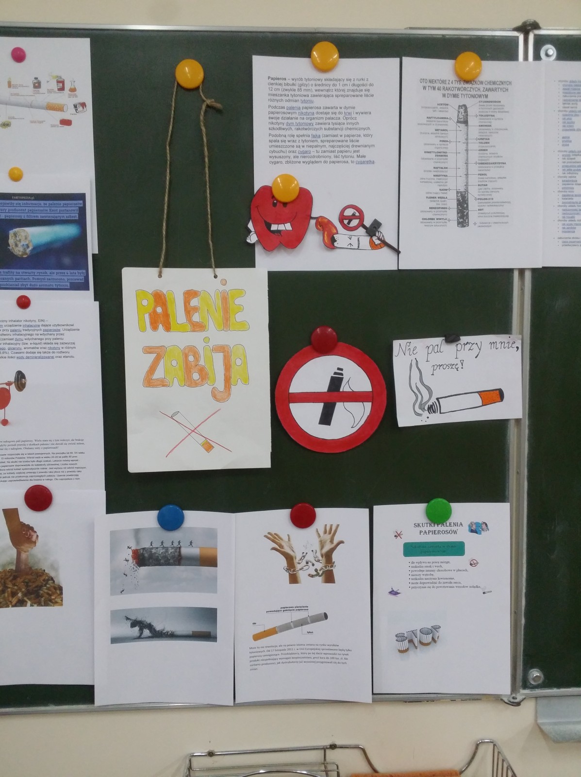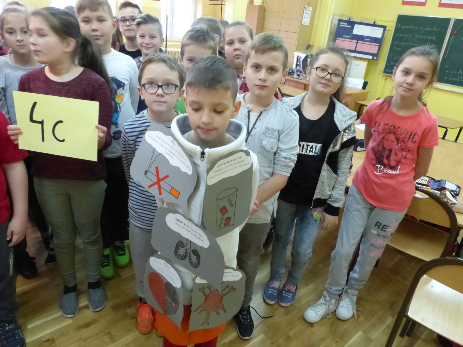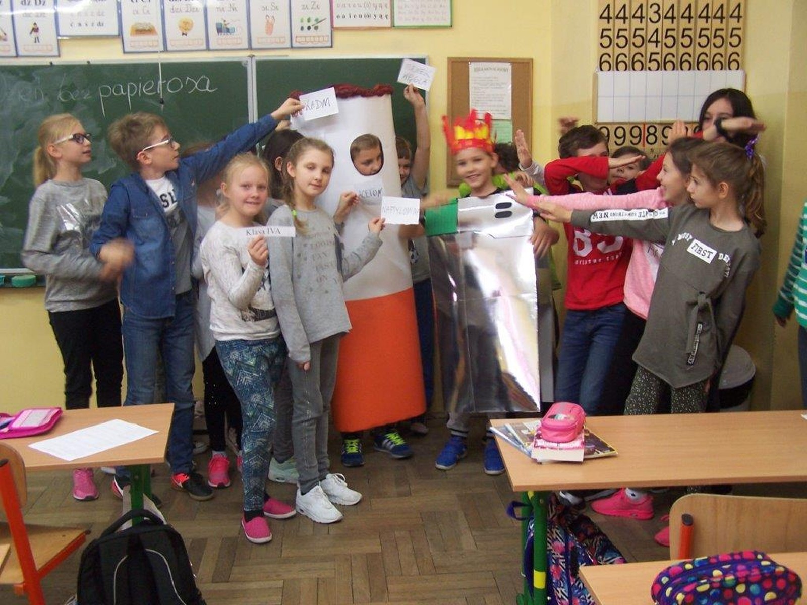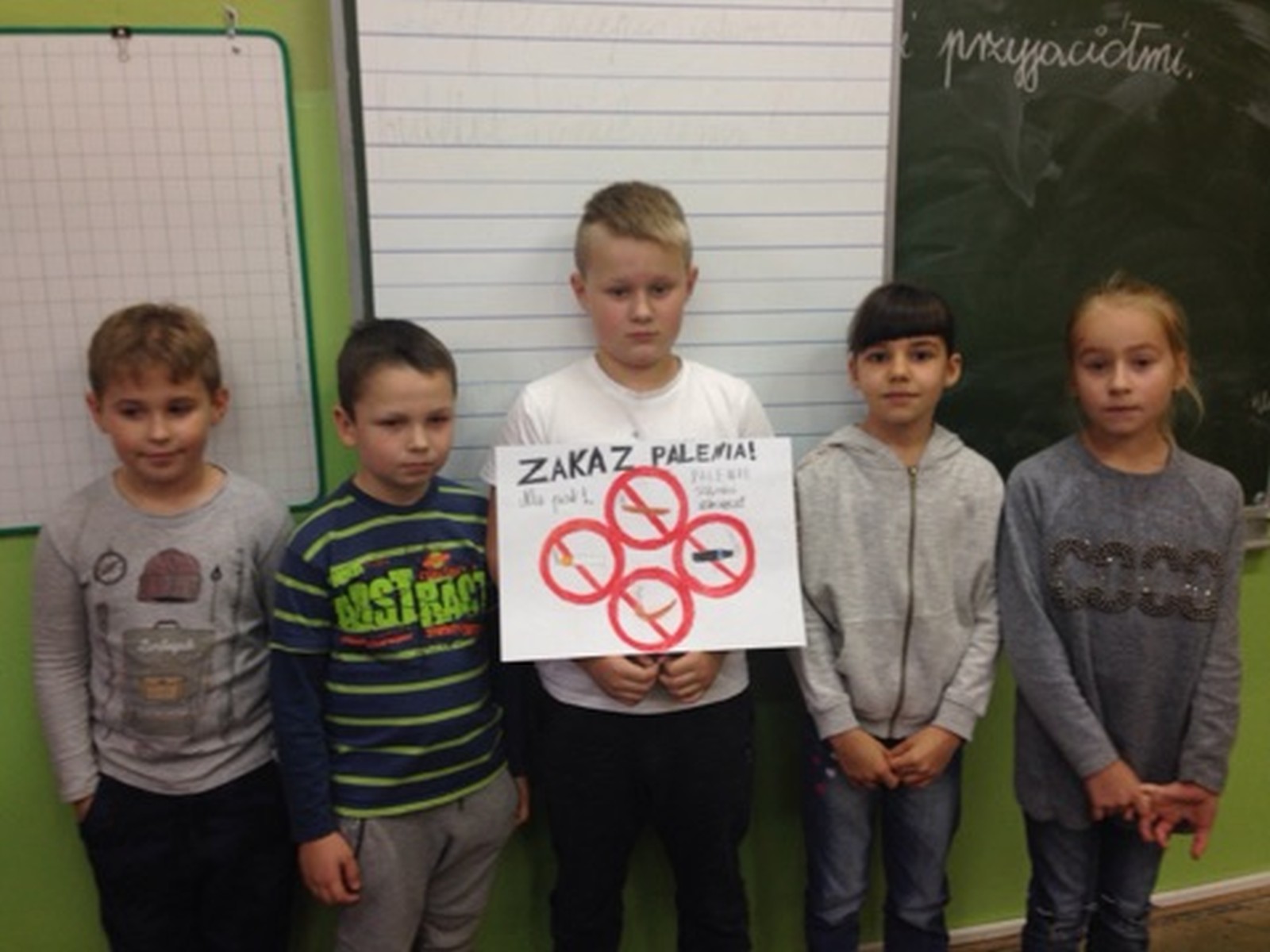 16 listopada 2017r. obchodziliśmy Światowy Dzień Rzucania Palenia. Tego dnia klasy 1-3 opracowywały nowe zakazy palenia tytoniu, a klasy 4-6 przebierały się za papierosa, obklejając go nawami substancji trujących. Każda klasa wraz z wychowawcą omówiła skutki palenia tytoniu i zapoznała się z statystykami osób palących w Polsce. Zadowalające jest to, iż procent ludzi palących papierosy jest z roku na rok coraz mniejszy. Klasa 4d i 5c zaprezentowały swoje stroje oraz uświadamiały uczniów i pracowników całej szkoły. Na wywiadówce rodzice zostali zapoznani z metodami rzucania palenia.