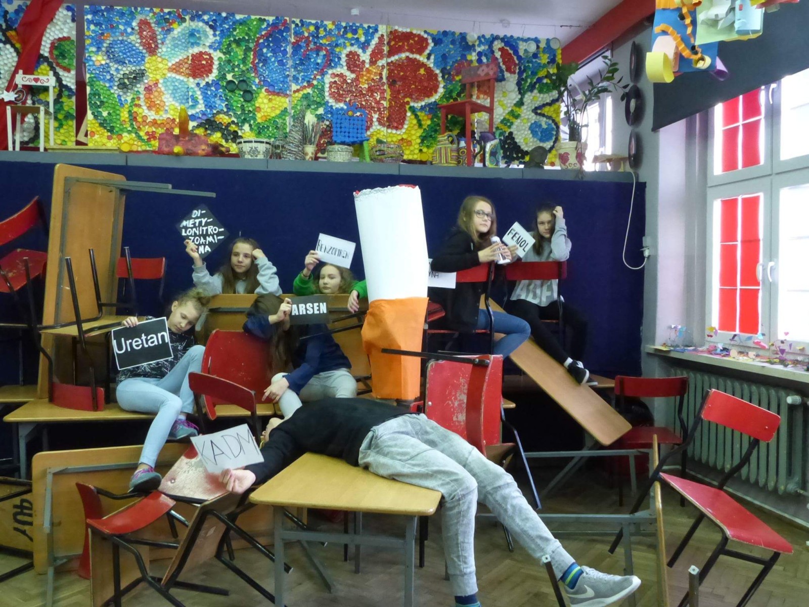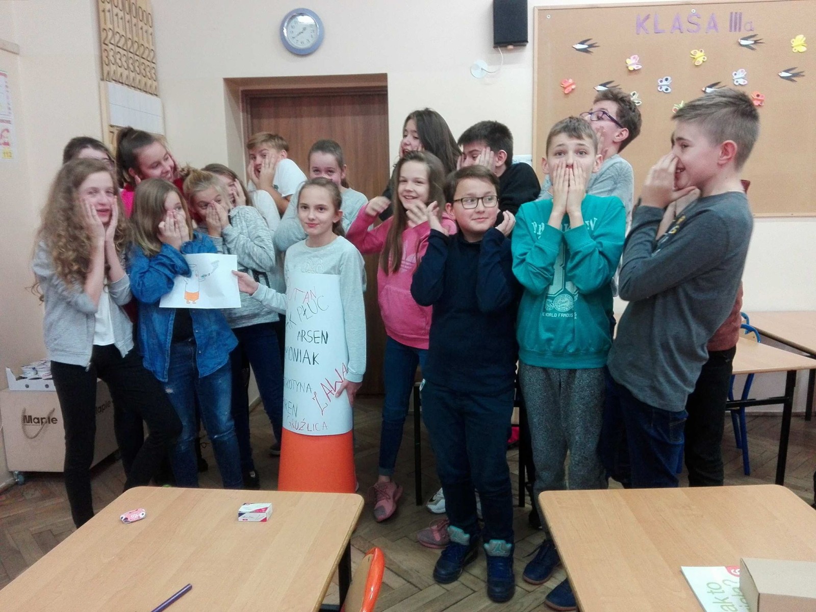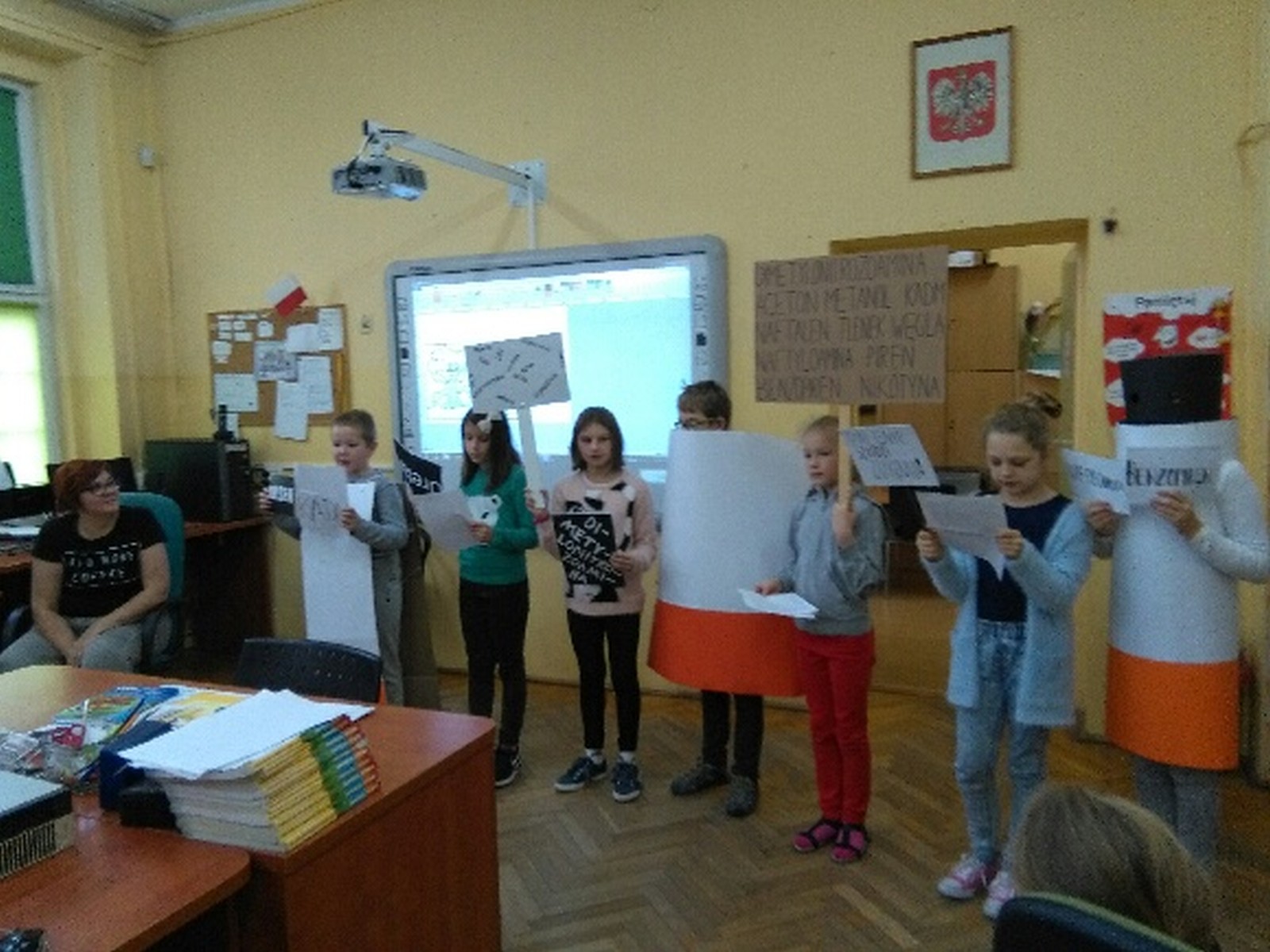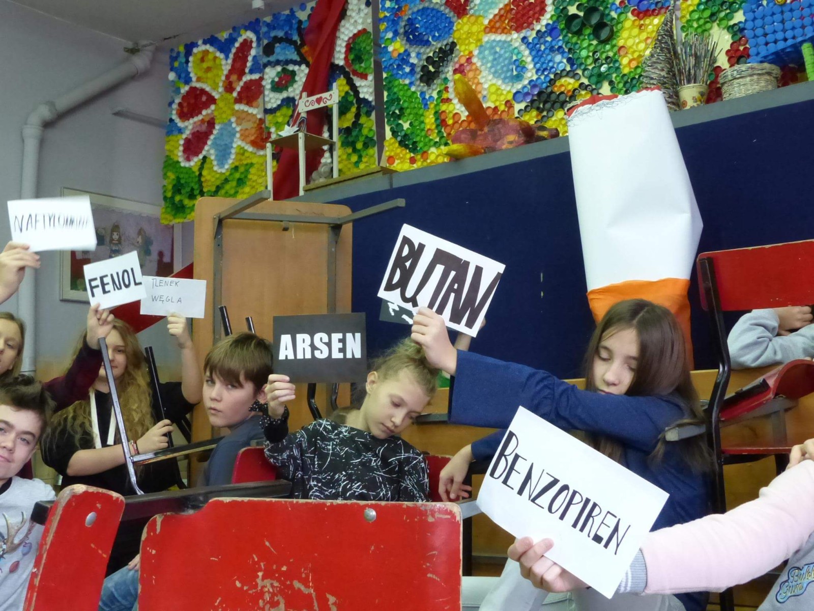16 listopada 2017r. obchodziliśmy Światowy Dzień Rzucania Palenia. Tego dnia klasy 1-3 opracowywały nowe zakazy palenia tytoniu, a klasy 4-6 przebierały się za papierosa, obklejając go nawami substancji trujących. Każda klasa wraz z wychowawcą omówiła skutki palenia tytoniu i zapoznała się z statystykami osób palących w Polsce. Zadowalające jest to, iż procent ludzi palących papierosy jest z roku na rok coraz mniejszy. Klasa 4d i 5c zaprezentowały swoje stroje oraz uświadamiały uczniów i pracowników całej szkoły. Na wywiadówce rodzice zostali zapoznani z metodami rzucania palenia.