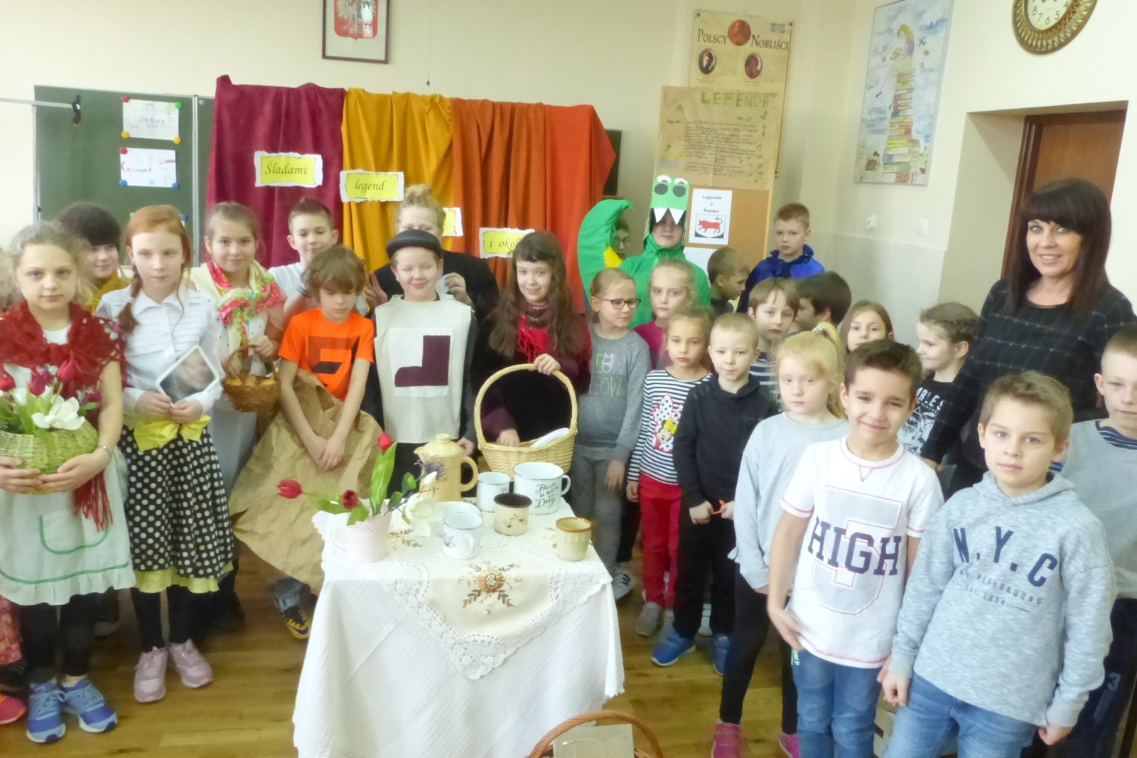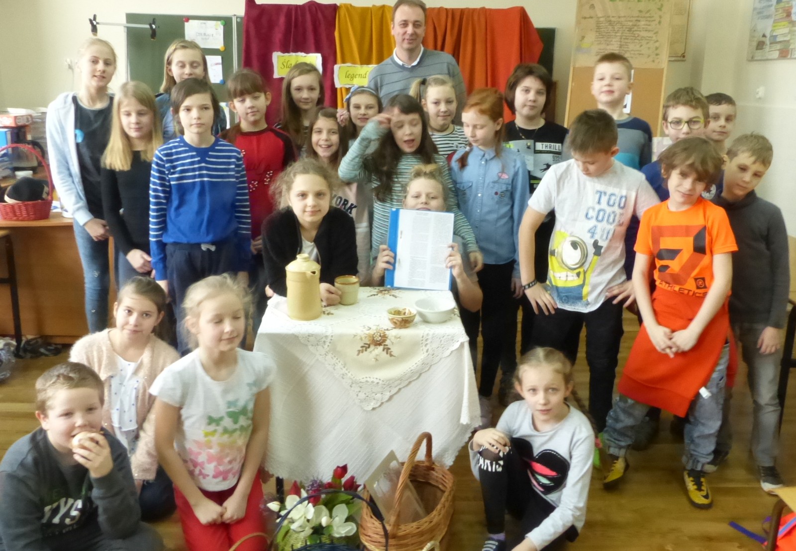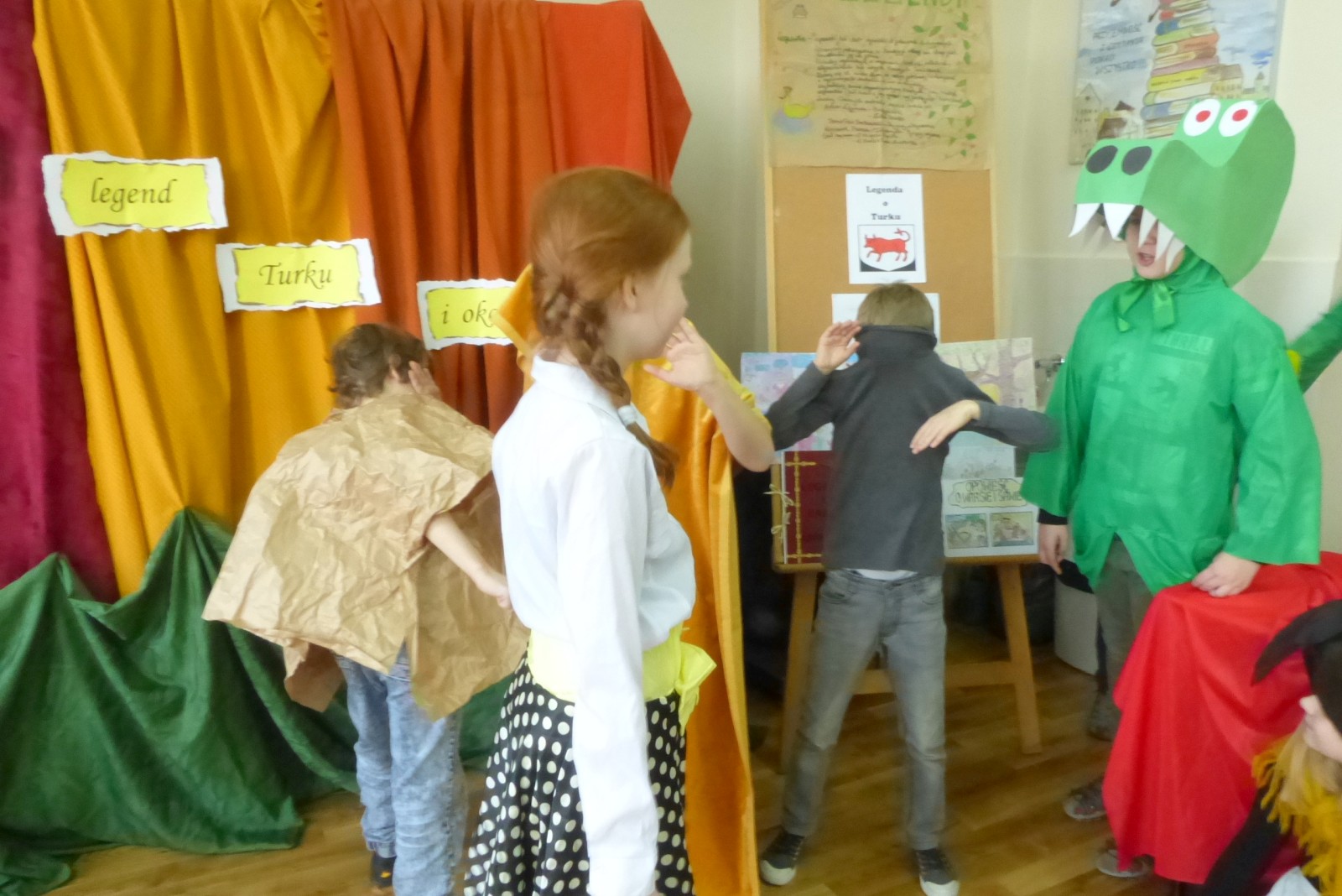 Dnia 7 lutego w kl. 4d odbyła się lekcja języka polskiego na temat „Śladami legend Turku i okolic”. Na lekcję przybył pan Bartosz Stachowiak, dyrektor Muzeum im. Józefa Mehoffera w Turku. Najpierw uczniowie przekonali pana dyrektora, że doskonale znają różne polskie legendy. Dowodem na to było przedstawienie „Legendy o Bazyliszku”. Trafnie zgromadzone rekwizyty, doskonała gra aktorska oddały charakter życia mieszkańców dawnego Krakowa. Przedstawienie o strasznym Bazyliszku podziwiali pierwszoklasiści i pani Izabela Ochota, która dumnie patrzyła na swoich byłych wychowanków.