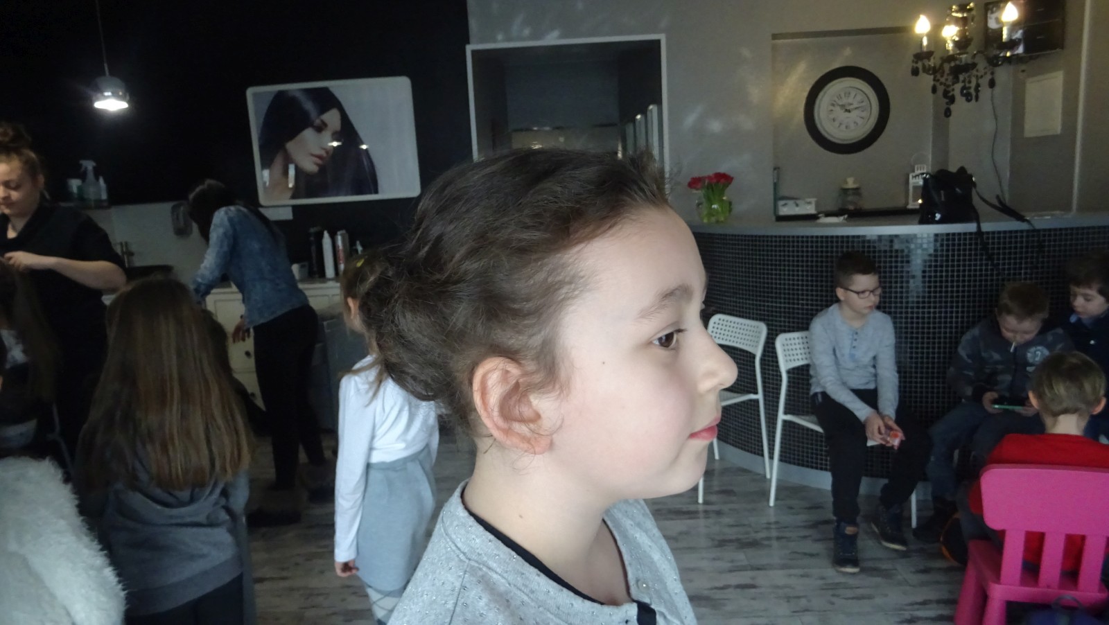 Wizytę w profesjonalnym salonie fryzjerskim i możliwość wybrania dowolnej fryzury. Taki prezent z okazji Dnia Kobiet, otrzymały od chłopców i rodziców dziewczynki z klasy 2c. Panie fryzjerki wykonały fryzury także chłopcom. Wszystko według życzeń młodych klientów. Pobyt w salonie umilił dzieciom słodki poczęstunek przygotowany przez właścicielkę.