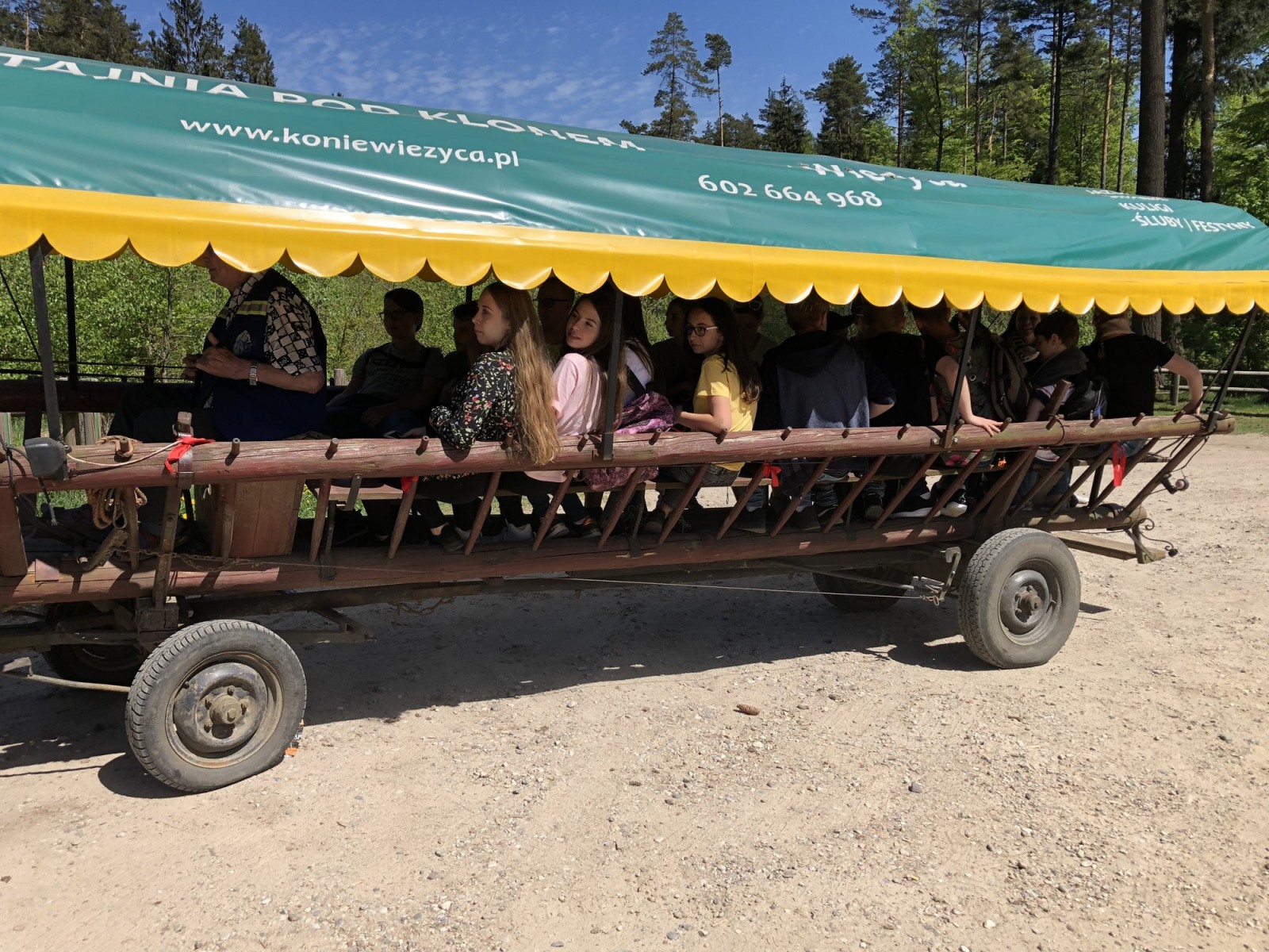 Słoneczna pogoda i dobre humory towarzyszyły uczniom w zwiedzaniu Szymbarka, gdzie podziwialiśmy najdłuższą deskę świata. Braliśmy także udział w symulacji nalotu bombowego w bunkrze. Niewątpliwą atrakcją był dom do góry nogami, po wizycie w którym tylko nieliczni nie mieli zawrotów głowy.