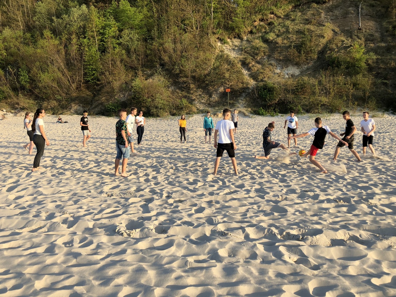 Tam wspólne granie w siatkówkę, frisbee oraz nieśmiałe sprawdzanie czy woda jest ciepła i mokra.
