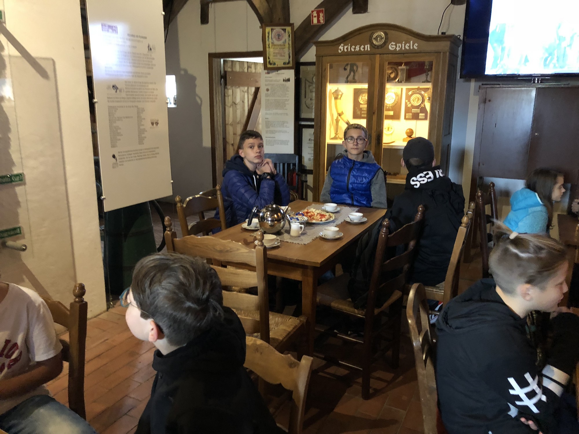 Wśród licznych atrakcji przygotowanych przez naszych gospodarzy największą frajdę sprawiło uczniom pływanie kajakami i gra w mini golfa 3D. Do codziennych obowiązków należał udział w lekcjach razem z dziećmi niemieckimi. Dzięki temu uczniowie mieli możliwość porównania obu systemów szkolnictwa. Grupa zwiedziła lokalne muzeum, w którym Burmistrz Miasta Wiesmoor, pan Friedrich Völler opowiedział o historii miasta i regionu. Odpoczęliśmy tam przy filiżance fryzyjskiej, tradycyjnej herbaty oraz charakterystycznym dla tego regionu chlebie z rodzynkami. Ciekawym sposobem poznania miasta było Stadtreally podczas którego młodzież miała zadanie odnaleźć i sfotografować najbardziej charakterystyczne miejsca. Niemieckie rodziny natomiast zadbały o urozmaicenie programu wypełniając czas wolny uczniów wyjazdami nad morze, grą w kręgle, udziałem w treningach, wyjściem na basen, lody i pizzę. Na pożegnalnym grillu w OSP w Wiesmoor niemieccy uczniowie otrzymali gadżety przekazane przez Urząd Miasta w Turku. Pobyt w Wiesmoor dostarczył wielu niezapomnianych wrażeń. Przy pożegnaniu pojawiły się łzy i zapewnienia kontynuacji nawiązanych przyjaźni.