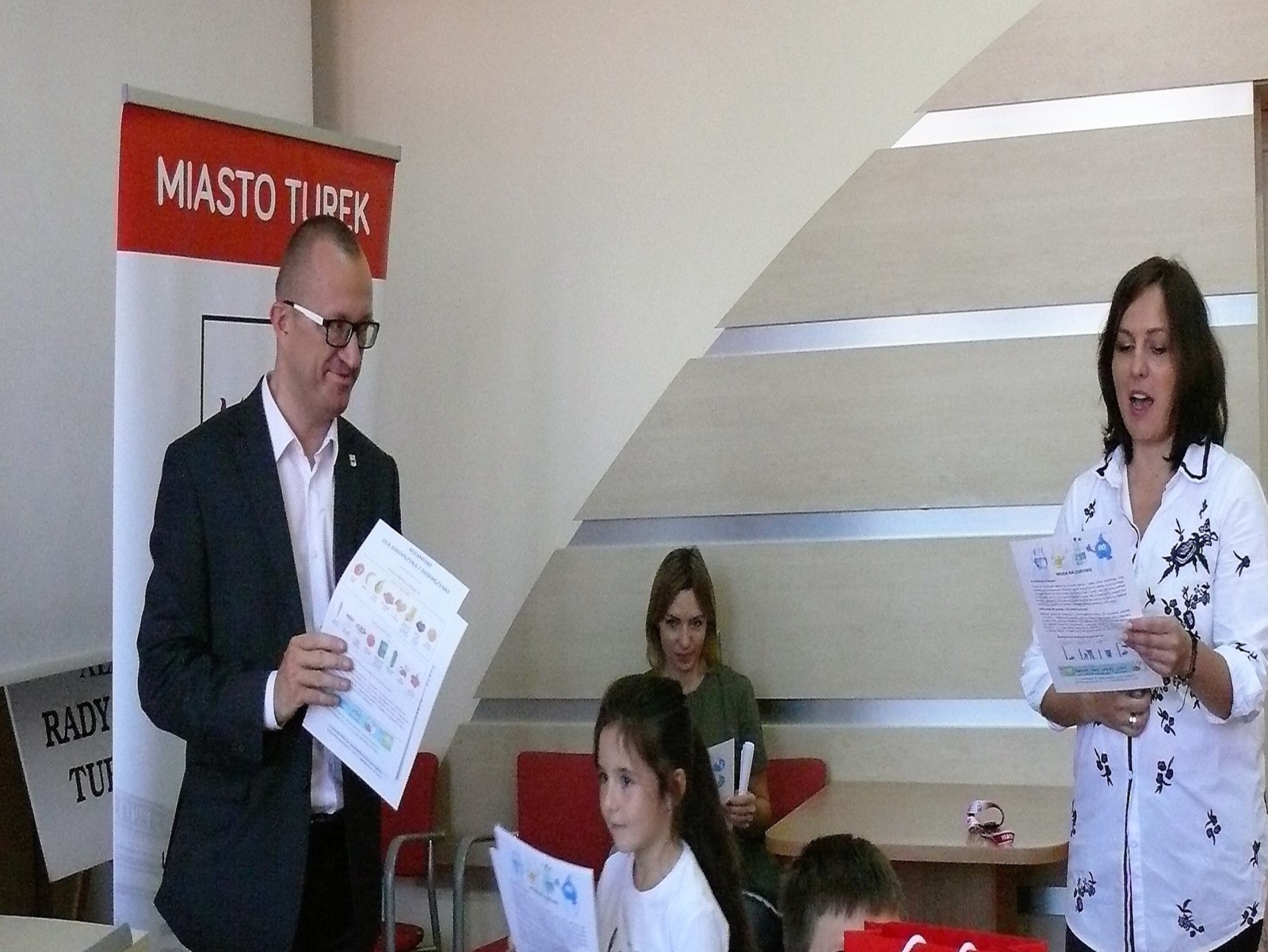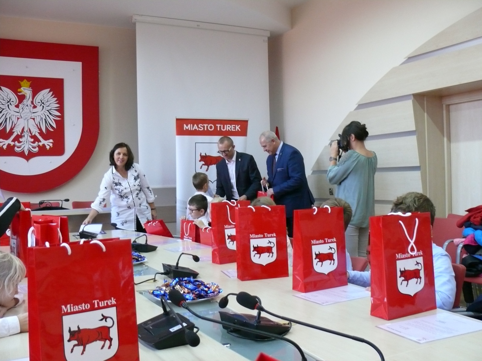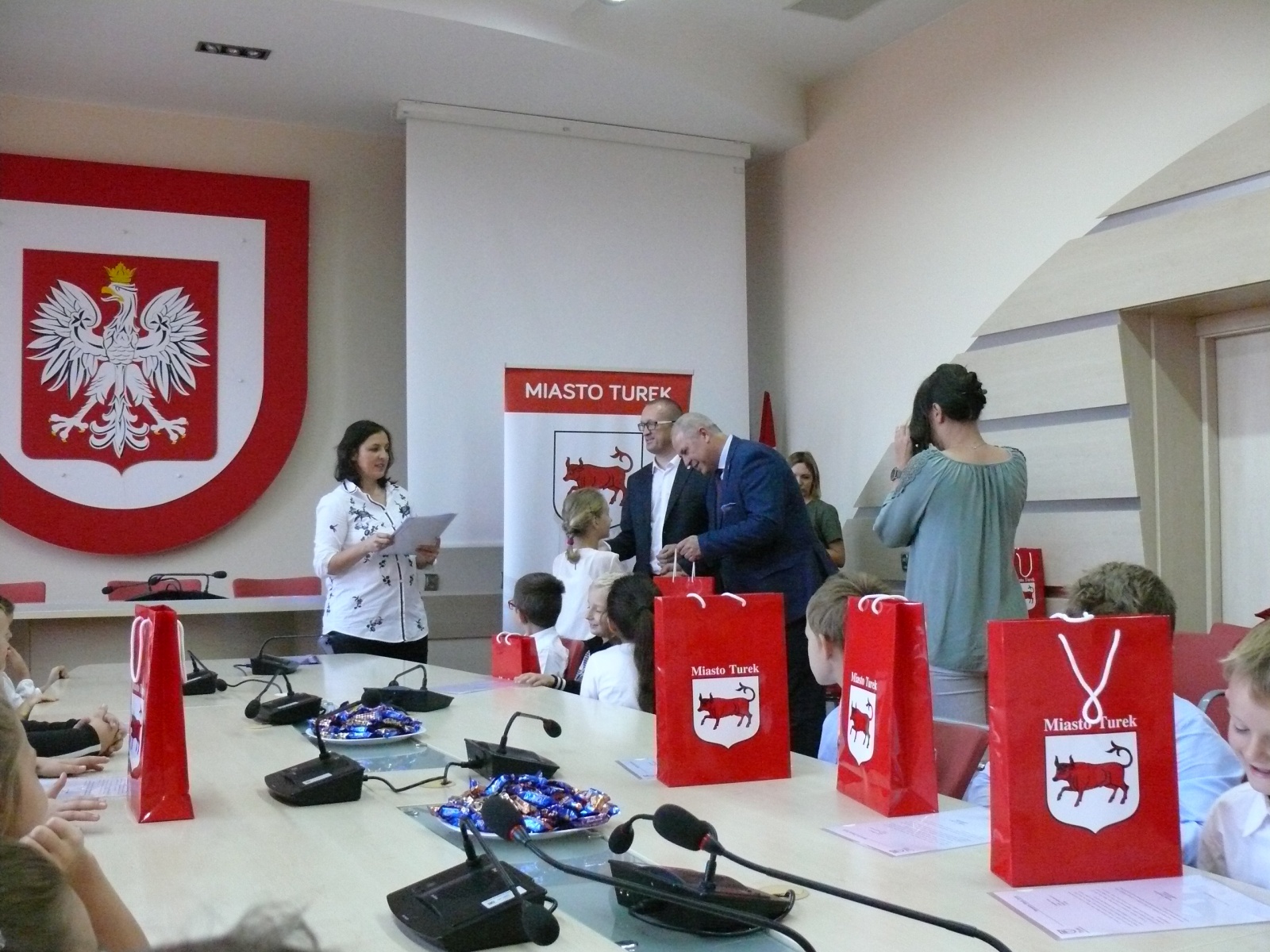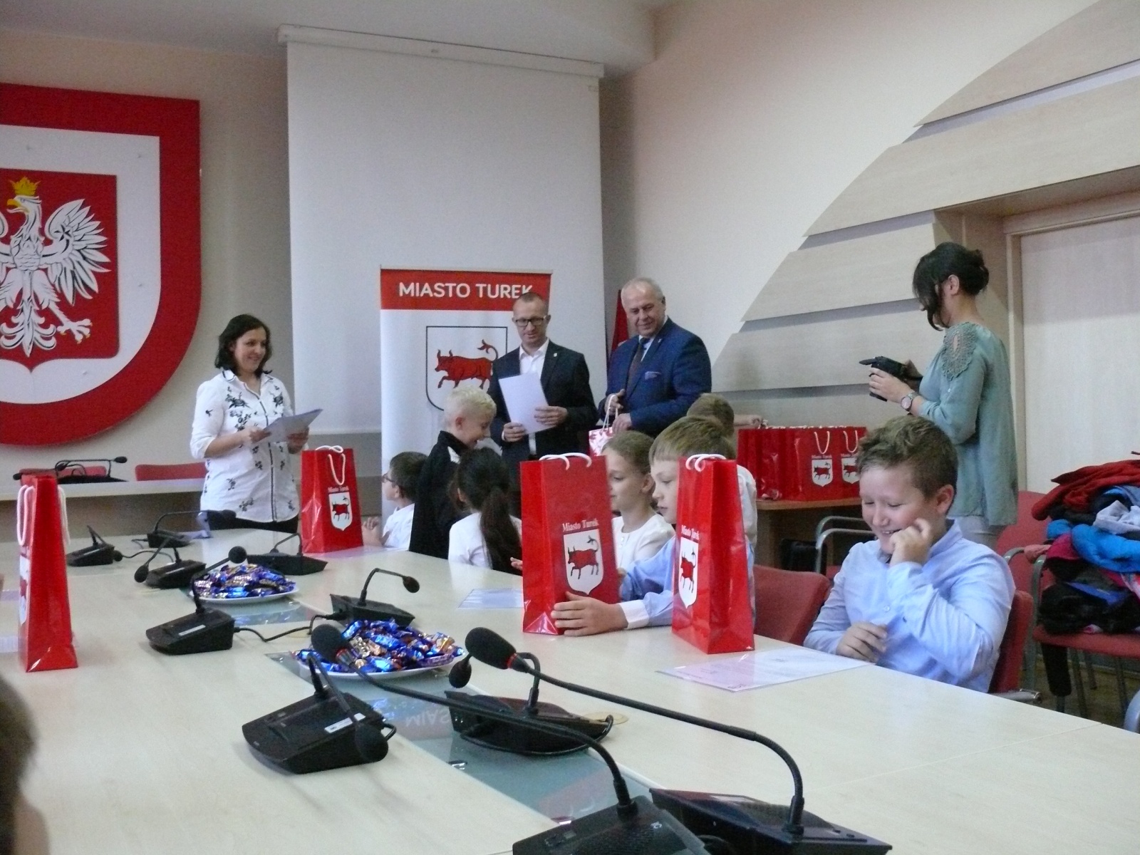 Podczas wizyty w UM włodarze miasta uhonorowali laureatów, wręczając im pamiątkowe dyplomy i upominki. Dzieci były bardzo przejęte wizytą i dumne z osiągniętego sukcesu.