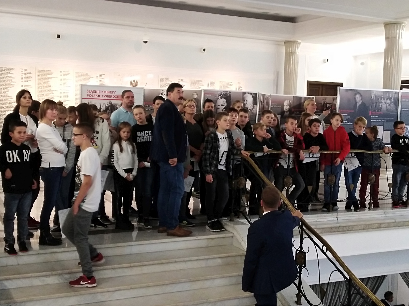Zwiedzanie rozpoczęło się wykładem przewodnika na temat historii polskiego parlamentaryzmu. Następnie uczestnicy wycieczki zwiedzali budynek Sejmu Rzeczypospolitej Polskiej. Przewodnik wspólnie z Posłem oprowadzali uczniów po galerii Sali Posiedzeń Sejmu, holu głównym, gdzie znajduje się tablica upamiętniająca posłów II Rzeczypospolitej, którzy zginęli w czasie II wojny światowej oraz tablica upamiętniająca parlamentarzystów, którzy zginęli w katastrofie lotniczej pod Smoleńskiem. Uczniowie zadawali wiele pytań dotyczących Sejmu, byli ciekawi, jak wygląda praca Posła. Zwiedzanie Sejmu uwiecznione zostało na wspólnym zdjęciu