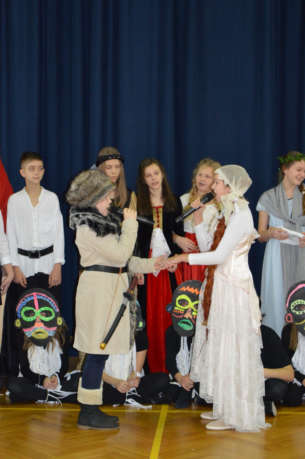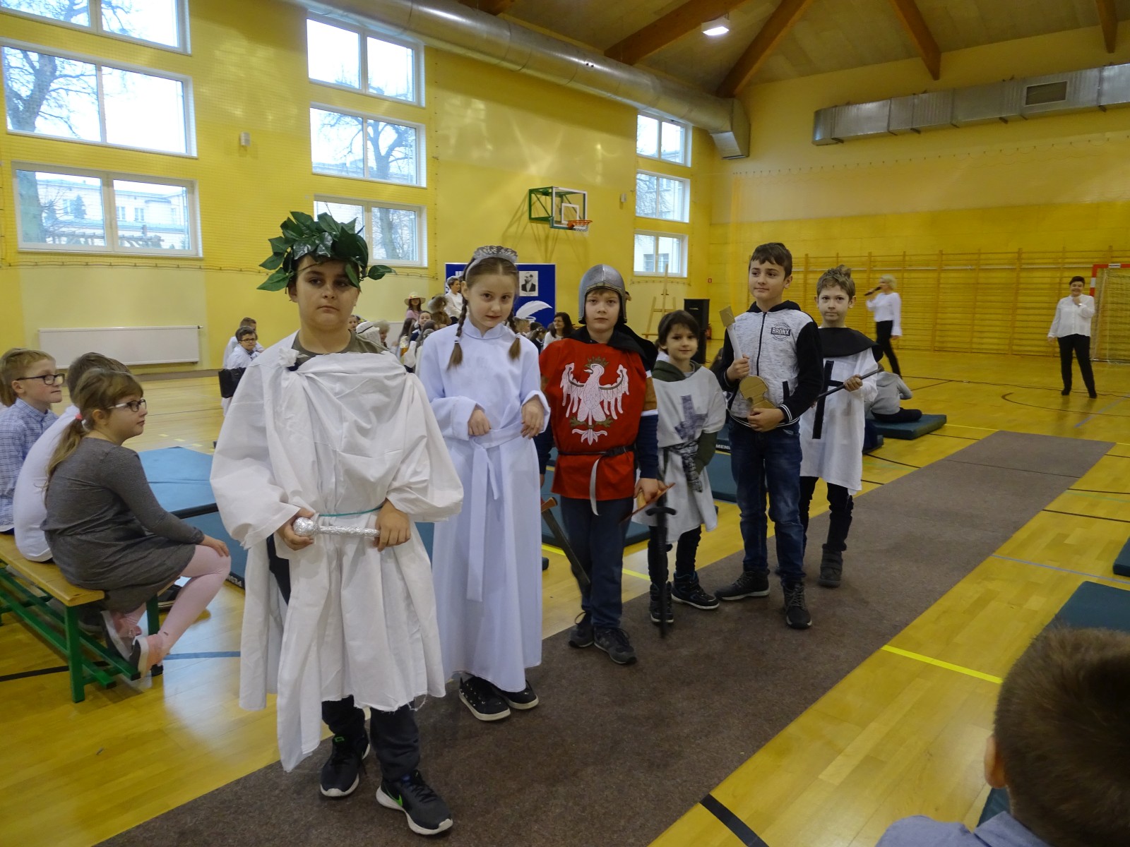 Całą uroczystość brawurowo poprowadziły uczennice z klasy 8d, które wcieliły się w role Baśki Wołodyjowskiej – Nina Grabara i w rolę Ligii – Michalina Rosiak.