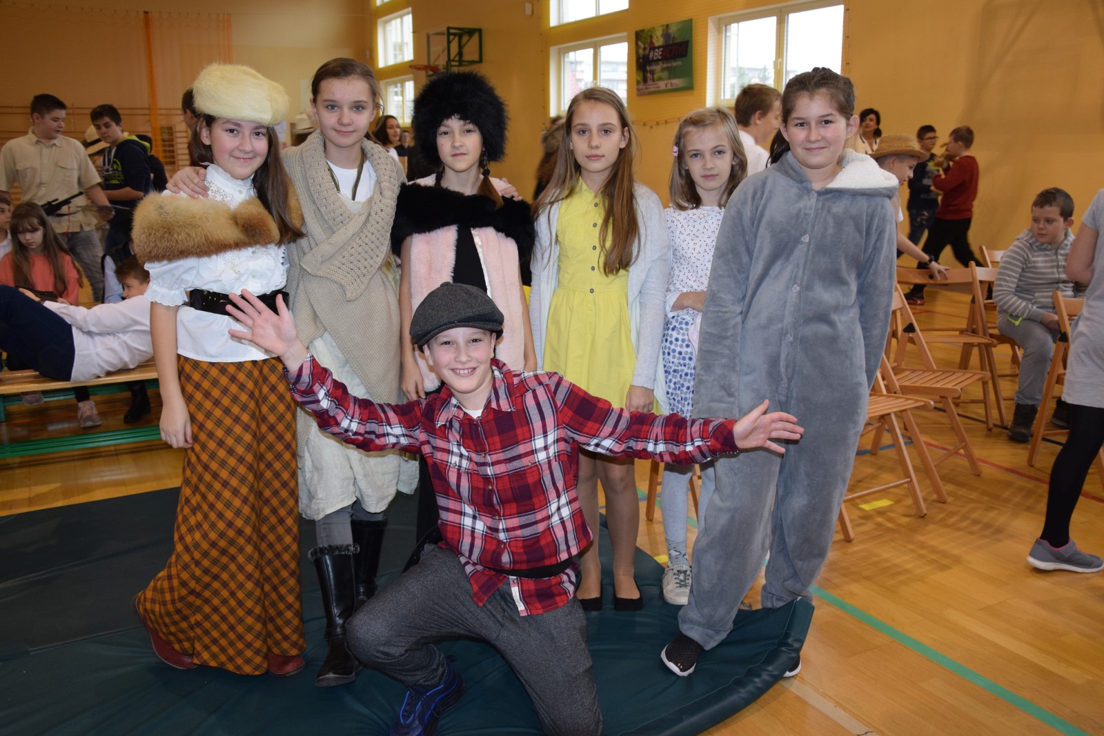 Następnym punktem programu był „Pokaz mody Sienkiewiczowskiej”. Stroje oddające charakter postaci z utworów pisarza prezentowali uczniowie klas I – VI jak na prawdziwym pokazie mody. Omawiane były najnowsze modowe trendy z XIX wieku. Widać było, że zadziałała szeroka wyobraźnia uczniów, pomysł, styl i szyk a także humor i sposób prezentacji jak na prawdziwym wybiegu.
