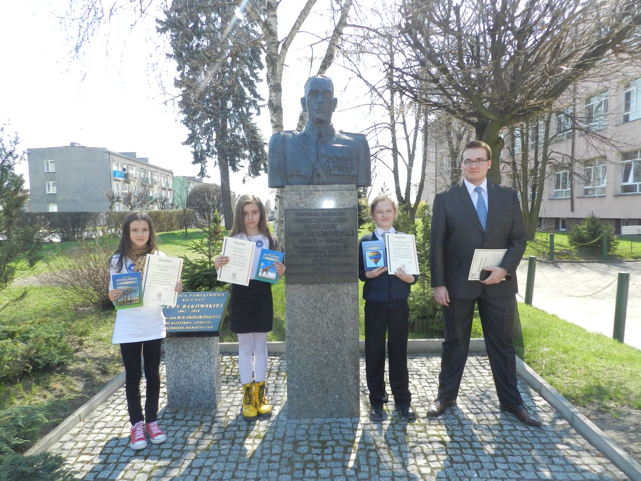 Owocem pracy uczniów Maćka Wichrowskiego, Oliwi Walas i Zosi Bąk był udział w konkursie pt. „ Życie i droga żołnierska gen. M. M. Smorawińskiego ” zorganizowanego przez SP nr 4. Uczniowie wykazali się imponującą wiedzą i doskonałą znajomością biografii generała zajmując drugie miejsce. W tym miejscu należy dodać, że do pierwszego miejsca - które zajęli gospodarze - zabrakło nam jedynie 1,5 punktu.