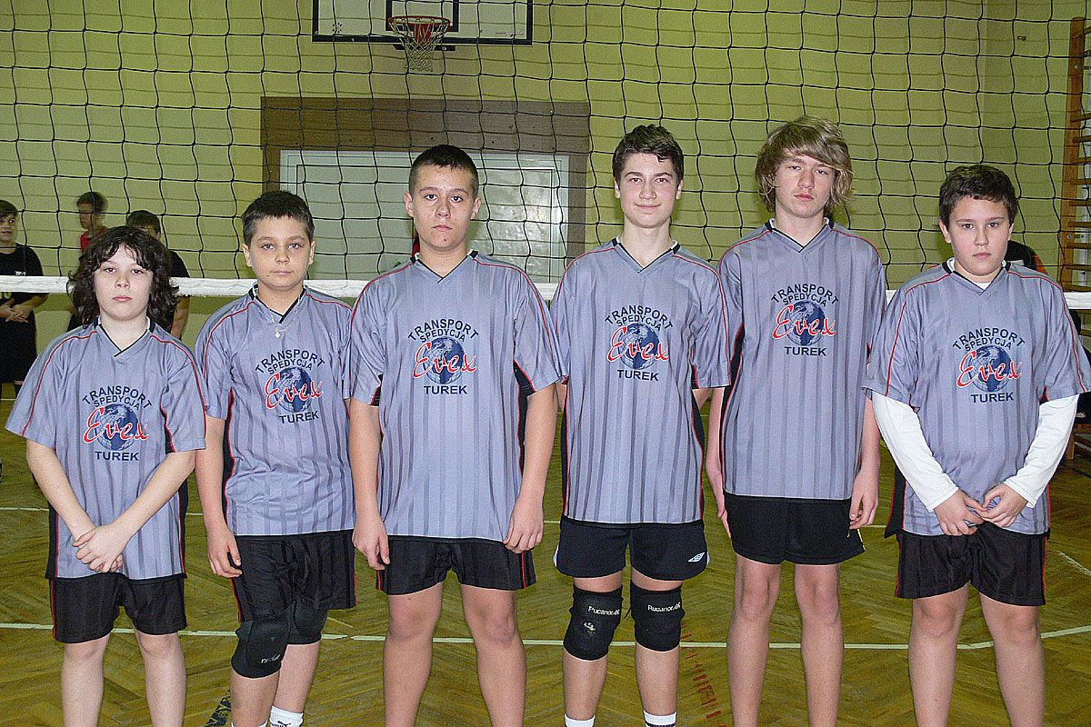 Zwycięska reprezentacja SP 4 Turek: Bartosz Zygmunt, Dawid Urbanowski, Martin Kubczak, Karol Górski, Bartosz Binkowski, Dominik Gadomski, trener Zbigniew Zieliński