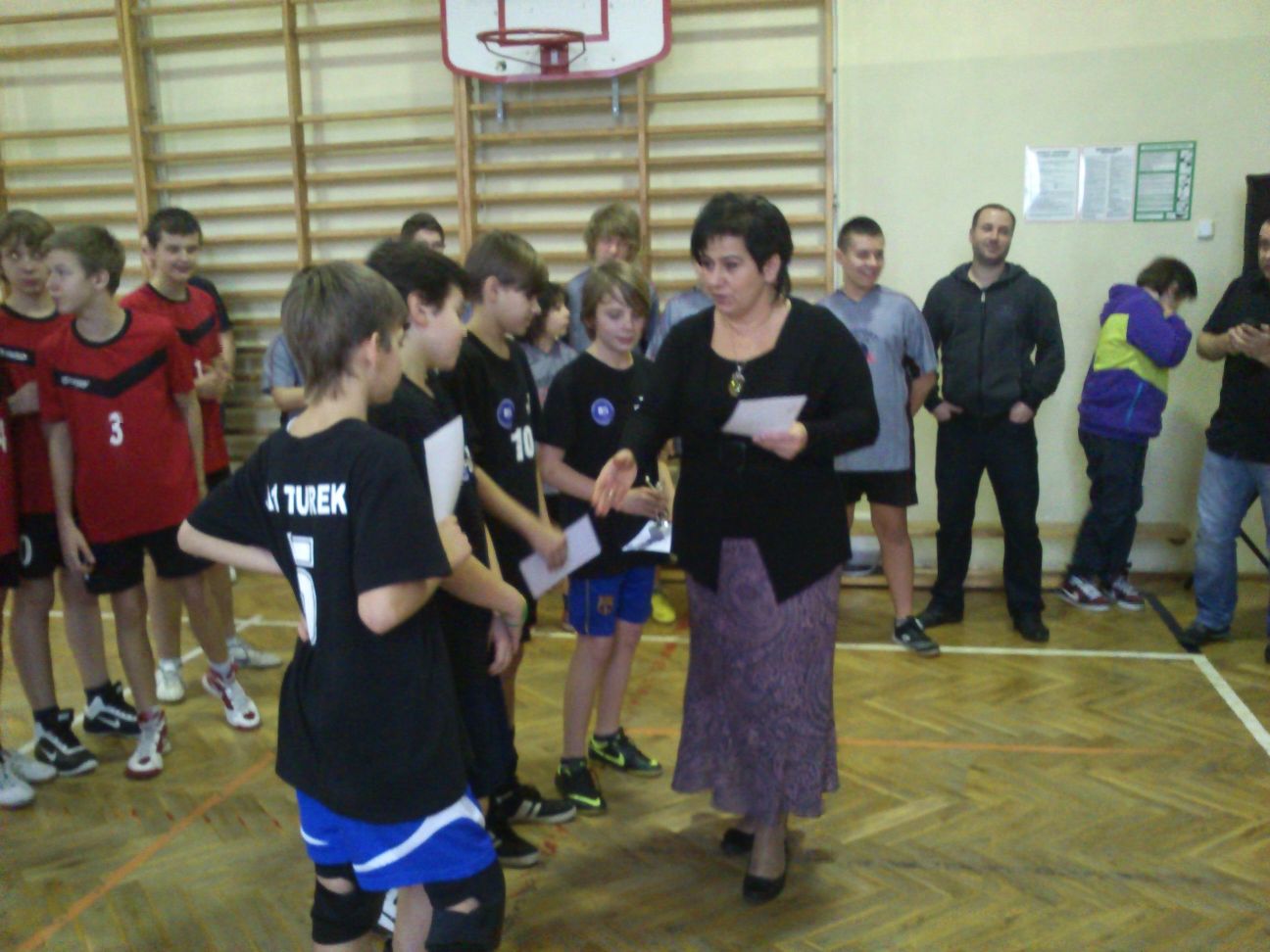 2 lutego 2013 roku w Szkole Podstawowej nr 1 w Turku po raz trzynasty został zorganizowany Turniej Mini Piłki Siatkowej Chłopców im. Jacka Zycha. Tradycyjnie honorowy patronat nad imprezą objął Burmistrz Miasta Turku. Z całą pewnością można stwierdzić, że turniej zakończył pewną historię w naszej szkole, bowiem po raz ostatni został rozegrany w prawie 90 - letniej sali gimnastycznej. Już niebawem te zawody rozgrywane będą w nowej, pełnowymiarowej hali sportowej. Na uroczystym rozpoczęciu turnieju gościliśmy zastępcę Burmistrza Miasta Turku pana Mirosława Mękarskiego, natomiast podczas podsumowania zawodów towarzyszył nam pan Andrzej Sochacki - inspektor ds. kultury i sportu z Urzędu Miasta. Po oficjalnym rozpoczęciu delegacja uczniów wraz z nauczycielem udała się na grób tragicznie zmarłego nauczyciela wychowania fizycznego Jacka Zycha, aby złożyć wiązankę oraz zapalić znicz.