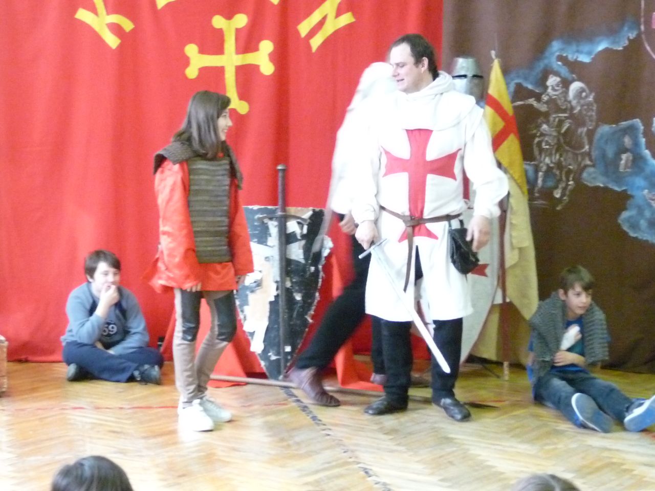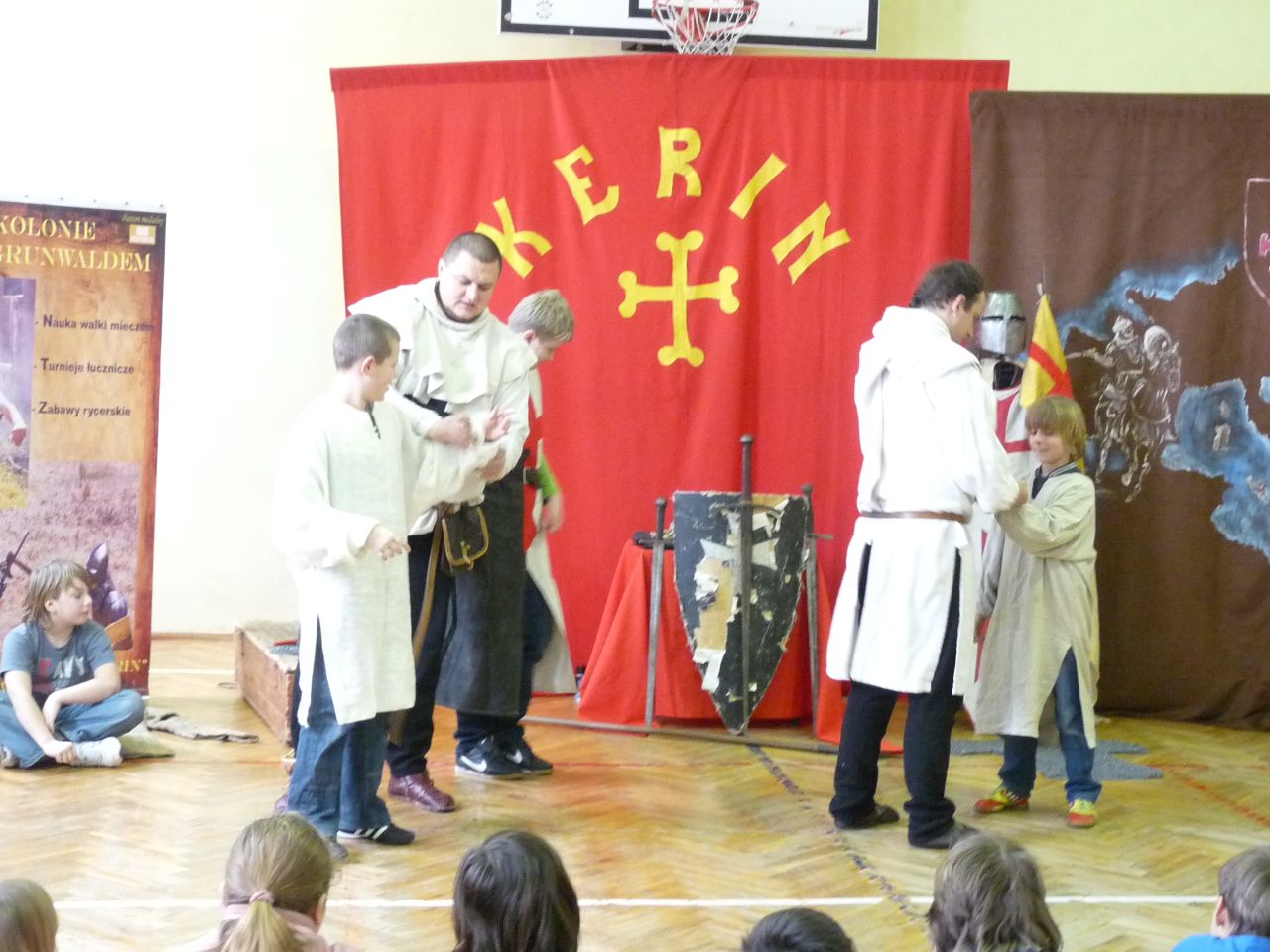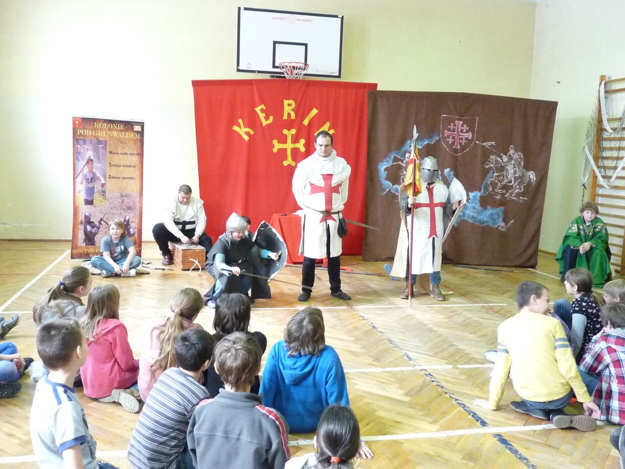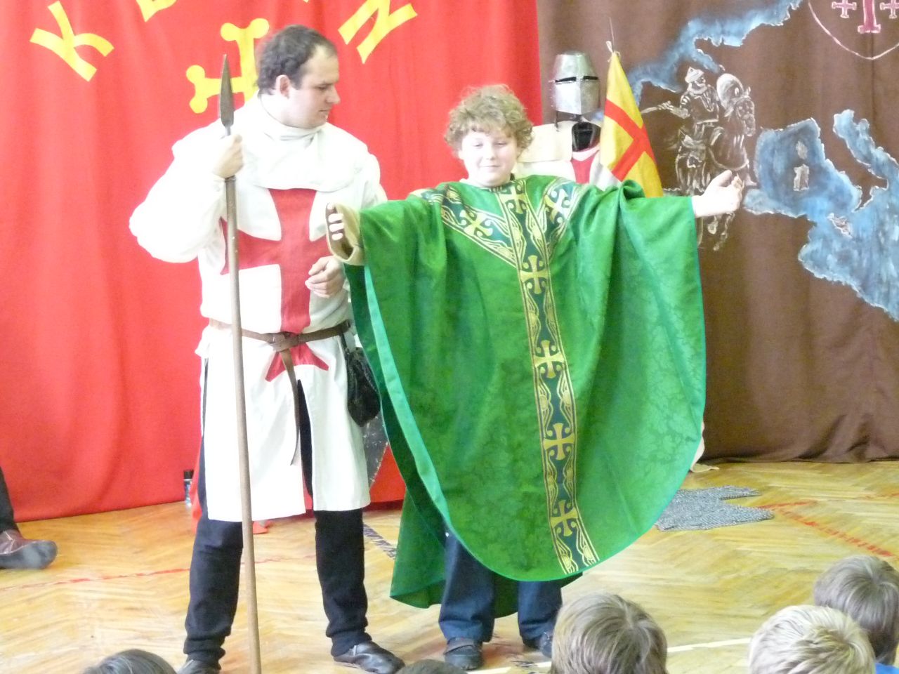 W dniu 13 marca w naszej szkole gościliśmy członków Bractwa Rycerskiego „ Kerin”, którzy przygotowali dla naszych uczniów żywą lekcję historii „Wyprawy krzyżowe”. Członkowie Bractwa w bardzo atrakcyjny sposób opowiadali o wyprawach „ w imię Boże”, przedstawili powstanie zakonów rycerskich, a także zaprezentowali białą broń, którą posługiwali się krzyżowcy. W pokazie bardzo chętnie brali udział nasi uczniowie, którzy wcielali się w role rycerzy, giermków ,papieża i na chwilę poczuli klimat tamtych czasów. Nasi uczniowie kolejny raz przekonali się, że historia nie jest nudną nauką, lecz fascynującą przygodą.