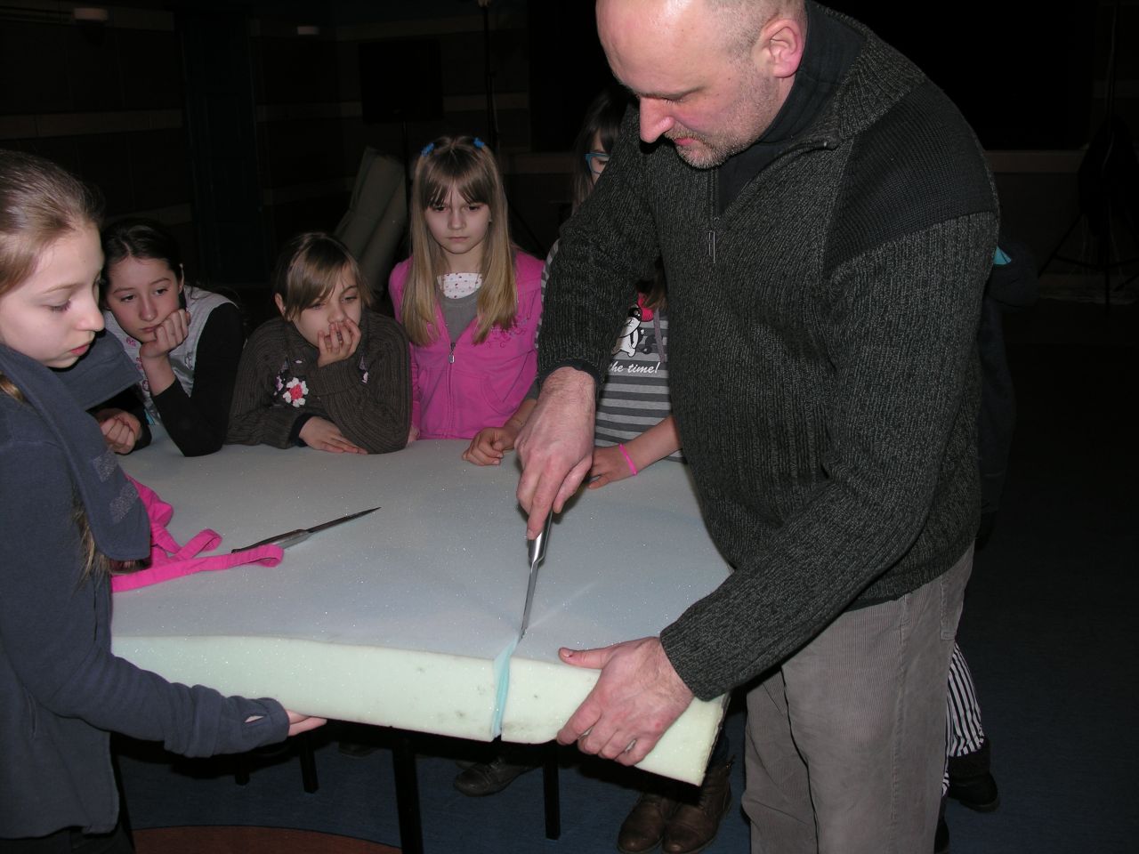 Warsztaty prowadzili reżyser Teatru Lalkowego z Wrocławia, Paweł Pawlik wraz z plastykiem Piotrem Kochanowskim, Z naszej szkoły uczestniczyła grupa dzieci z kółka artystycznego oraz członkowie Teatru Szpilka.