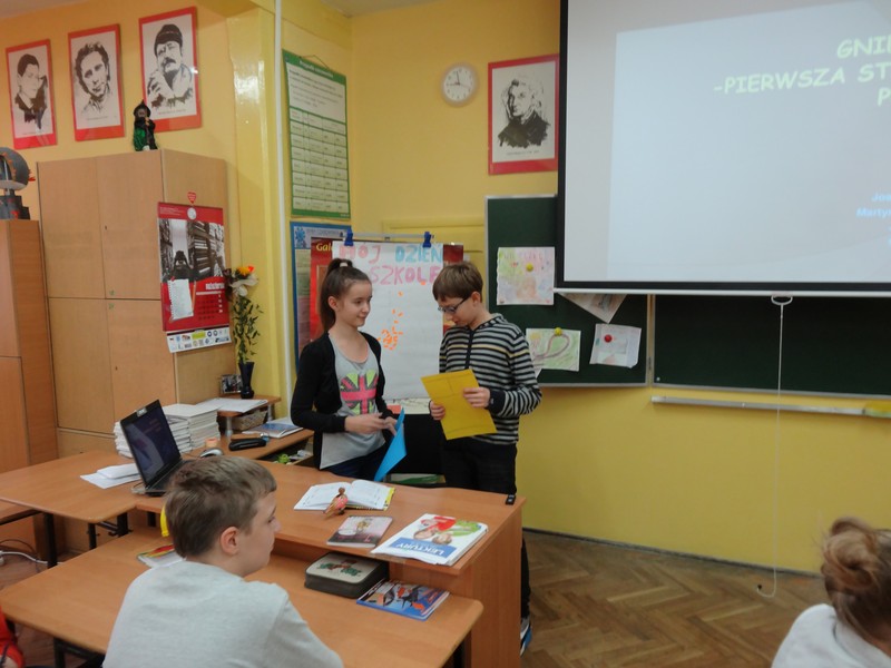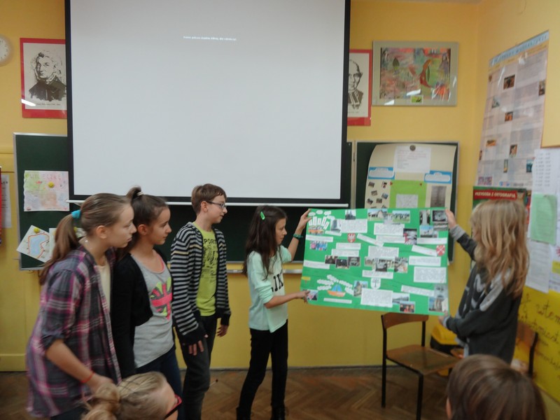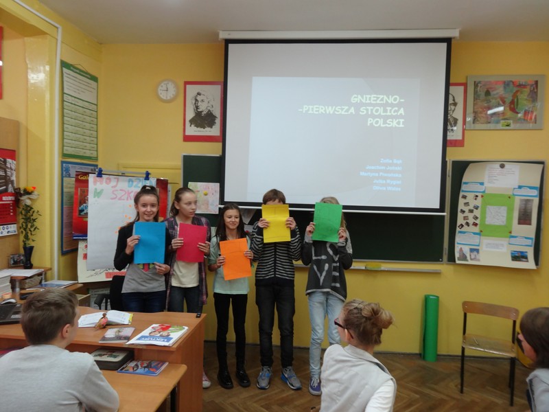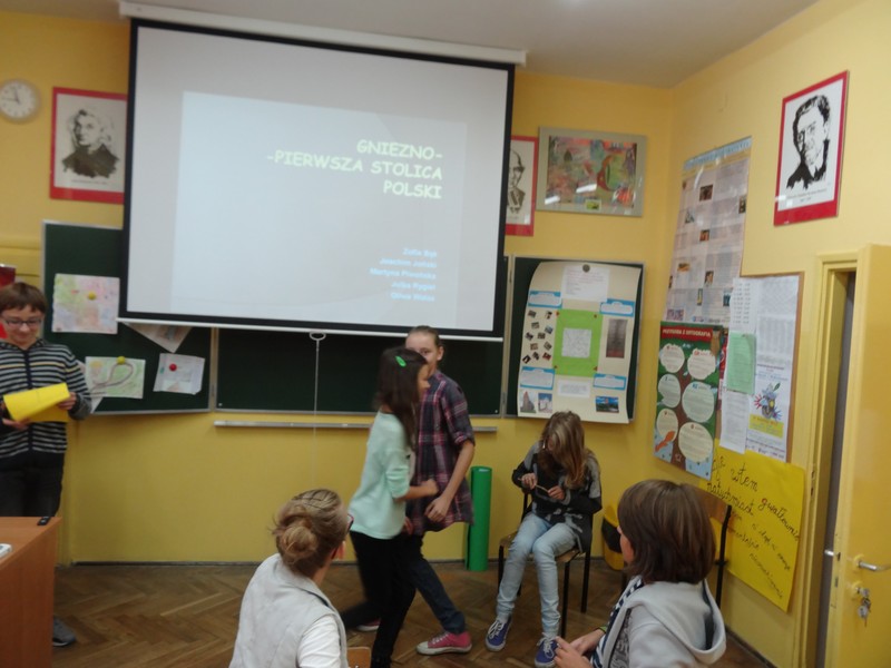 Lekcja metodą projektu – „Szlak Piastowski” odbyła się w klasach 5d i 6d. Uczniowie pracowali w grupach przed i podczas wycieczki Gniezno – Ostrów Lednicki – Strzelno – Kruszwica wg instrukcji: notowali, nagrywali, rozmawiali z przewodnikiem, fotografowali. Po powrocie opracowali w ciągu dwóch tygodni prezentacje prac: miniscenki, foldery, trasę zwiedzania, sprawozdanie, byli przewodnikami, rysownikami, pisarzami, reżyserami i aktorami. Stworzyli także prezentacje multimedialne, najlepszą udostępniono uczniom innych klas do wykorzystania na lekcjach. Uczyli się od siebie, a nauczyciel był obserwatorem i koordynatorem tych działań. Wystąpiła integracja międzyprzedmiotowa, a nauczyciele współpracowali