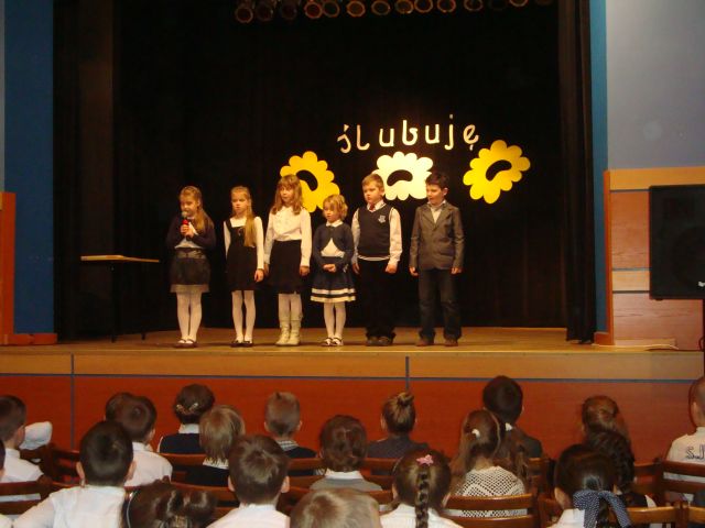 Gościem honorowym była dyrektor szkoły p. Elżbieta Pokojowa. Sala MDK-u była wypełniona po brzegi, gdyż na uroczystość przyszło wielu rodziców i dziadków naszych Pierwszoklasistów.