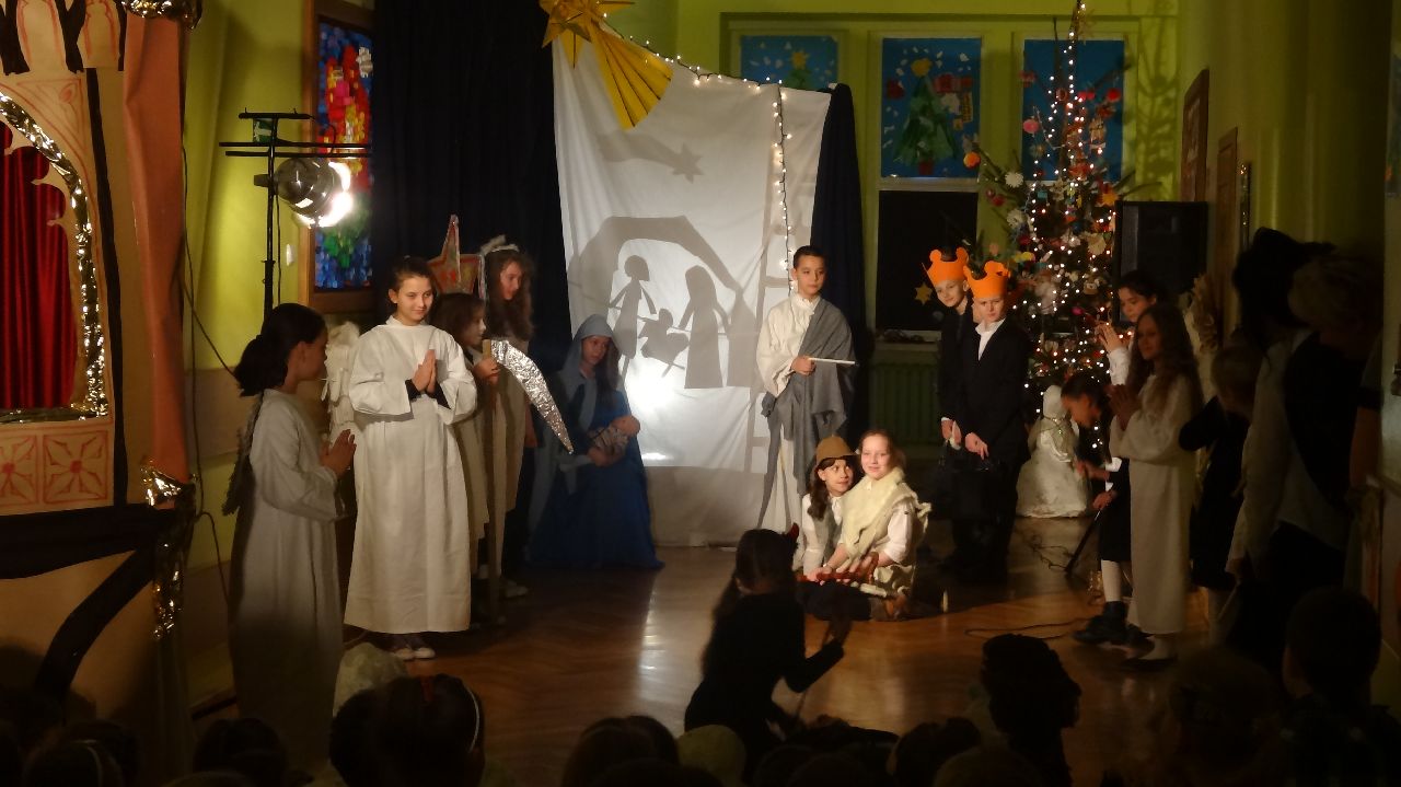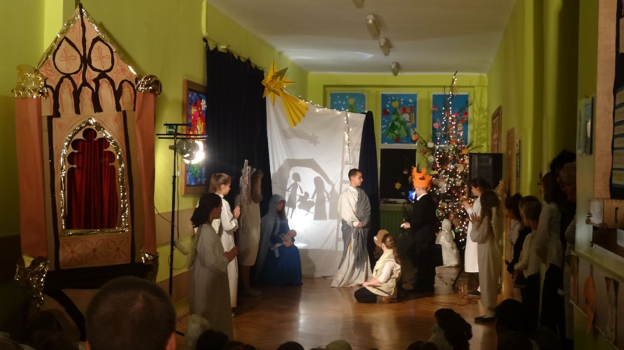 Jasełka pozwoliły poczuć rodzinną atmosferę zbliżających się świąt. Po przedstawieniu już kameralnie, każda klasa ze swoim wychowawcą uczestniczyła w Wigilii klasowej.