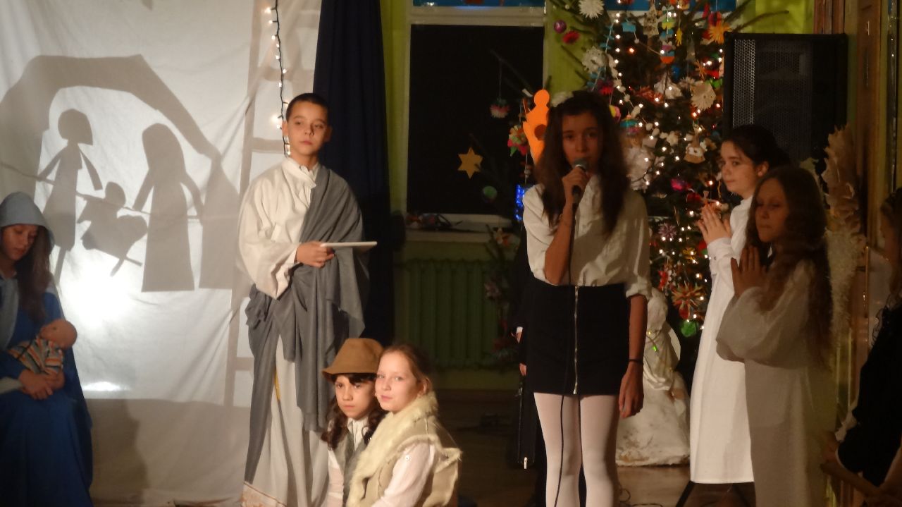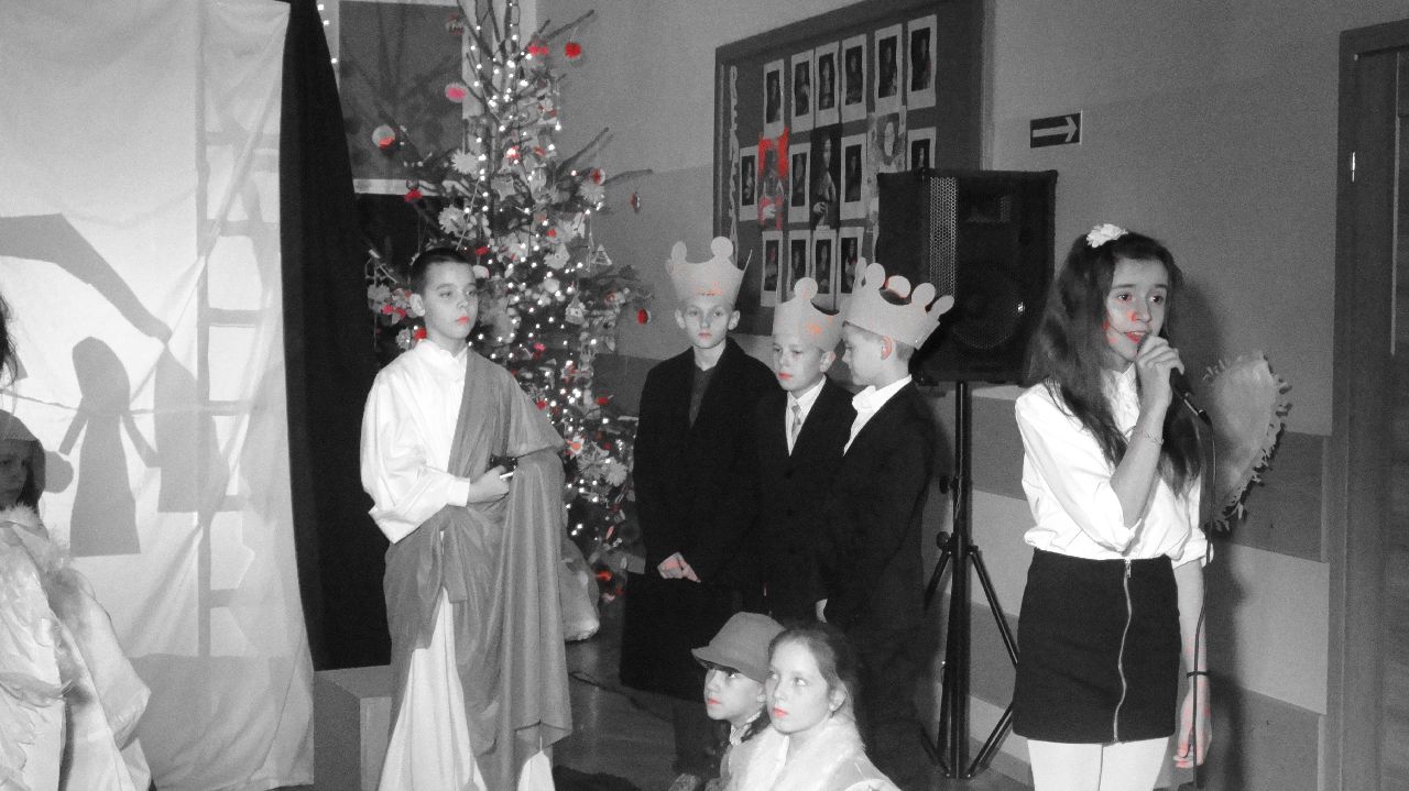 Jasełka przygotował szkolny teatr „Szpilka”. Scenariusz napisał uczeń Maciej Adamiak, który reżyserował spektakl i brawurowo wcielił się w rolę Heroda.
