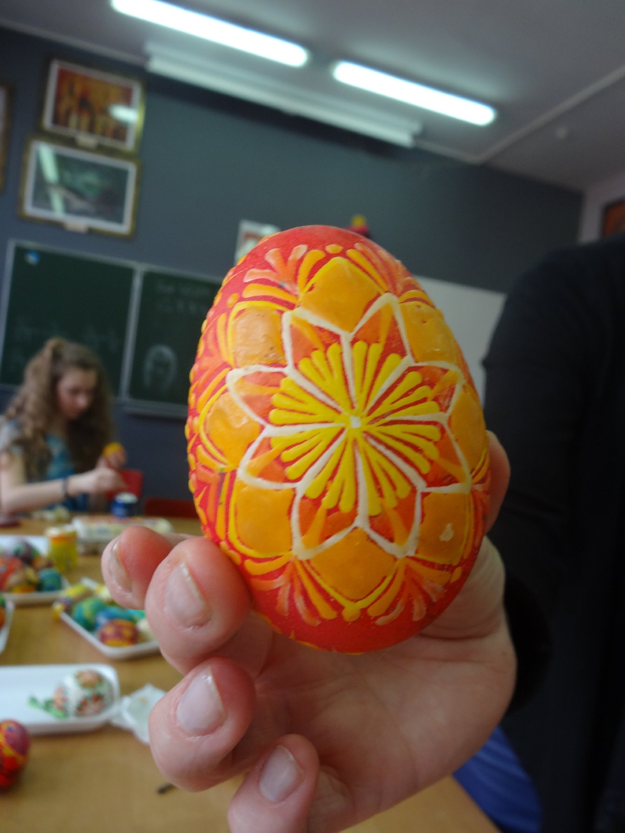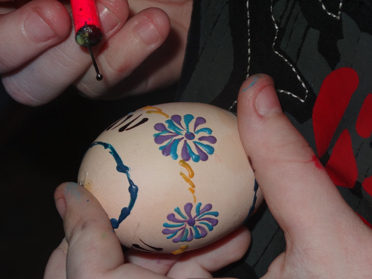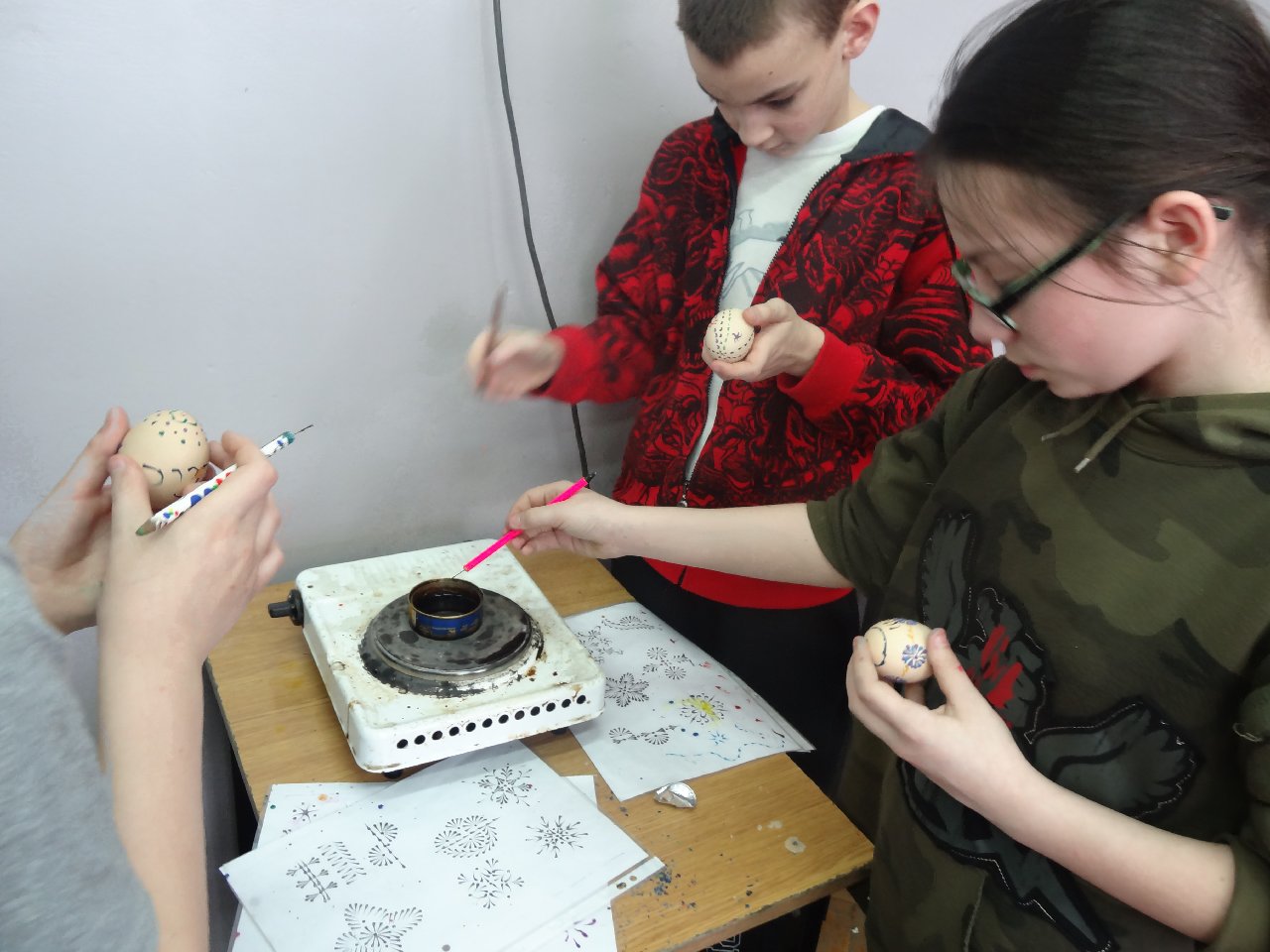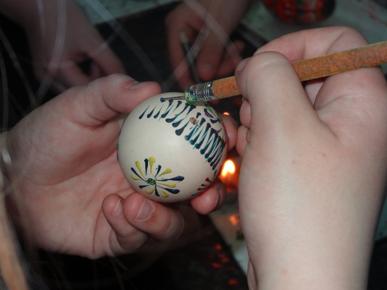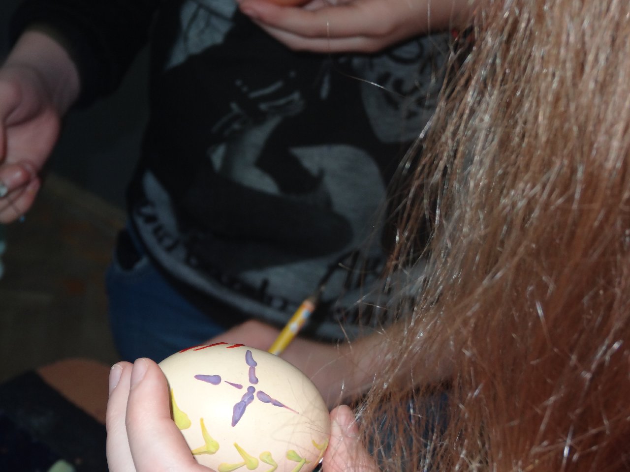 Święta Wielkanocne mają bogatą tradycję. Są niezwykle barwne, towarzyszy im wiele obrzędów. Dzięki nim świąteczne dni są bardziej radosne. Dlatego w naszej szkole odbywały się zajęcia, na których dzieci miały możliwość poznania różnych tradycji. W szczególności lekcje plastyki w tych dniach zamieniły się w profesjonalne warsztaty, podczas których można było zdobić jajka w sposób tradycyjny przez pisanie woskiem. Polegało to na tym, że na czystą skorupkę nanosiły wzór z roztopionego wosku, a następnie zanurzały jajo w roztworze barwnika, co sprawiło że zabarwiły się tylko odsłonięte fragmenty skorupki. Części ukryte pod woskiem nie zmieniły koloru. Po wyjęciu jajka z kąpieli wystarczało zetrzeć wosk miękką ściereczką. Powstały w ten sposób piękne pisanki.Dodatkową atrakcją w tych dniach stał się Kiermasz Pisanek zorganizowany przez uczniów z klasy 5d wraz z wychowawczynią.