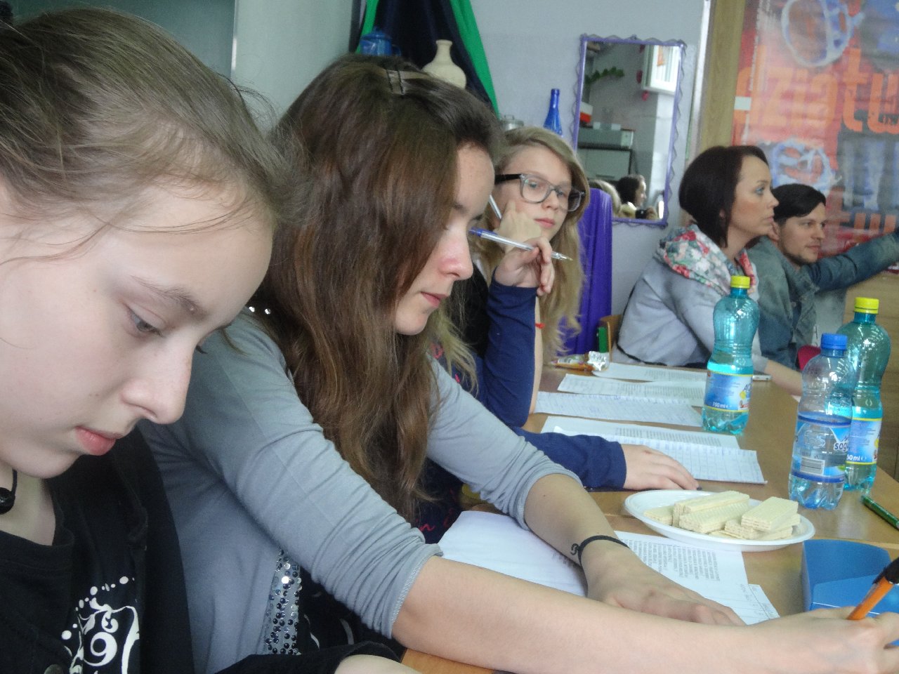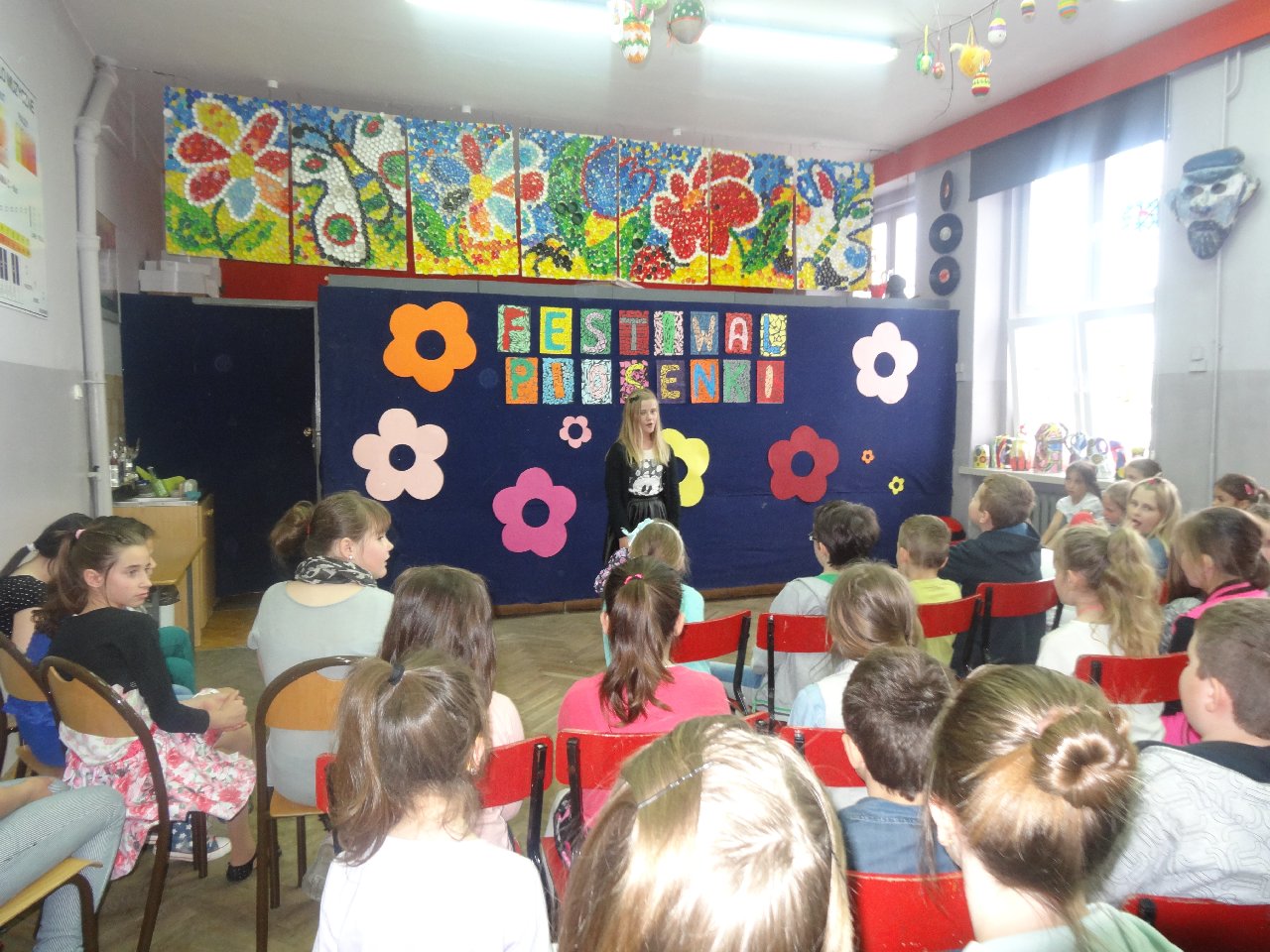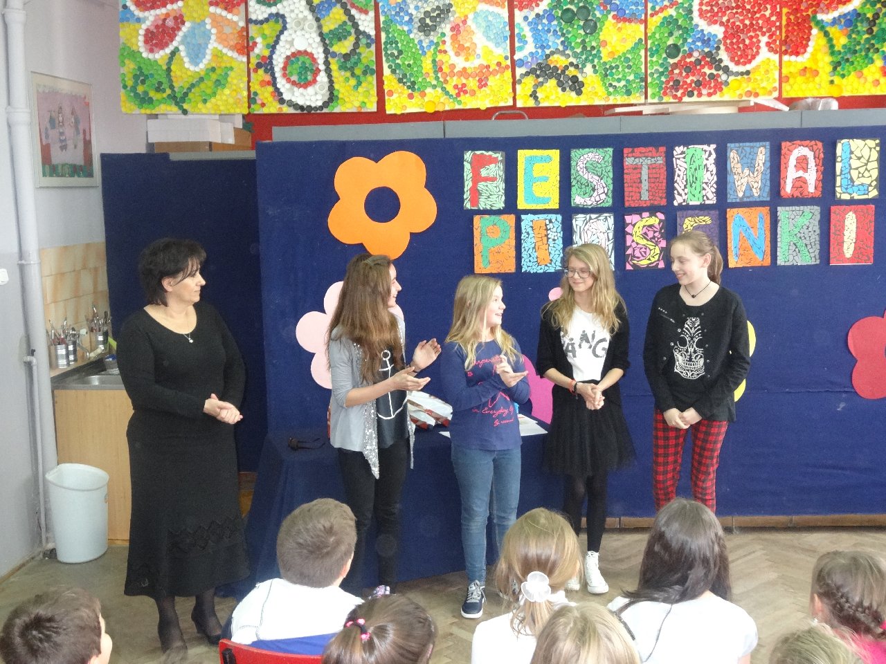I Festiwal Piosenki w naszej szkole. W ostatnich dniach kwietnia w naszej szkole odbył się I Festiwal Piosenki Szkolnej. Udział w nim wzięli zarówno uczniowie klas 1-3 i 4-6. W takich właśnie kategoriach byli oceniani przez jury składające się z uczennic klasy artystycznej 6d, które to z piosenką i Teatrem Szpilką związane są od lat. Uczennice te, to: Martyna Piwońska, Oliwia Walas, Zosia Bąk, Marta Gomułka, Weronika Janiak oraz Julia Rygiel. Dziewczyny w profesjonalny sposób oceniały uczestników zwracając szczególną uwagę na takie aspekty muzyczne jak: intonacja, dykcja, ruch sceniczny, ogólne wrażenie artystyczne. W festiwalu wzięło udział 33 uczestników, z czego przyznano 9 nagród i 24 wyróżnienia:
