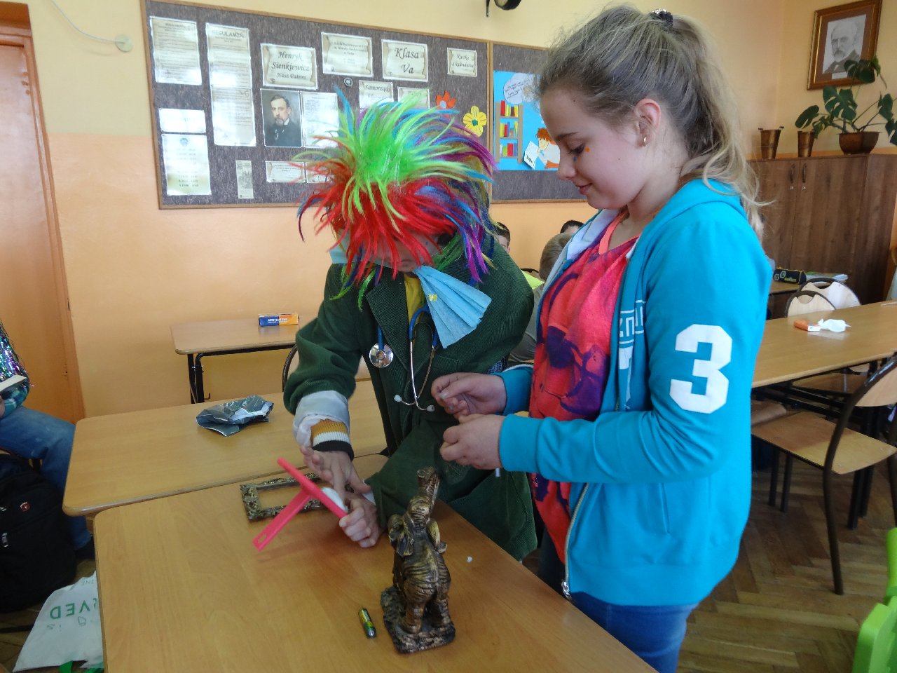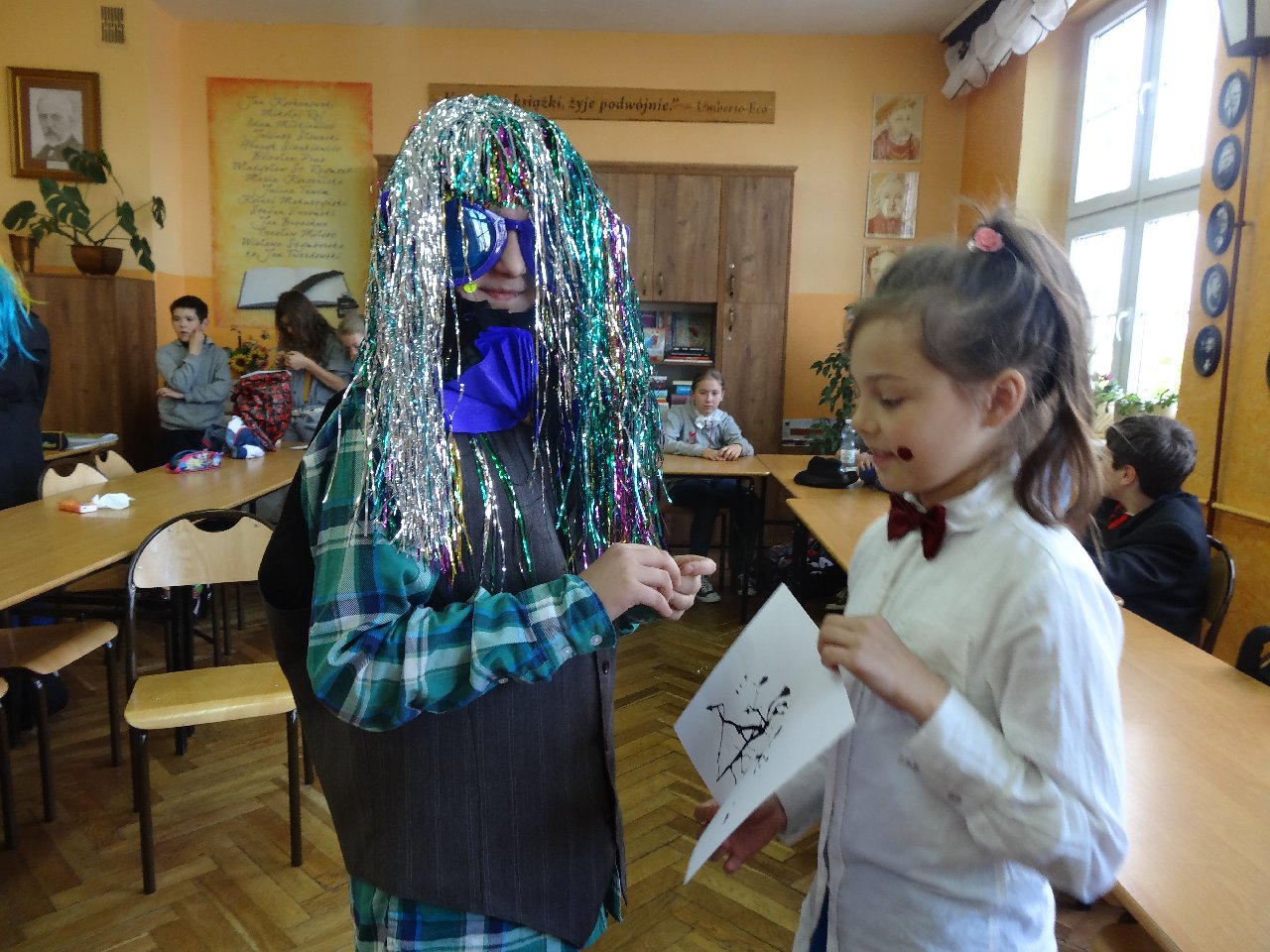 Pani Emilia Kozłowska nie mogła wręcz poznać swoich uczniów, pochwaliła i nagrodziła ich za pomysłowe przygotowanie strojów i nietypowych zajęć. Ciekawe, czy w trakcie oglądania zdjęć rozpoznacie, kto wcielił się w postacie z Akademii pana Kleksa?