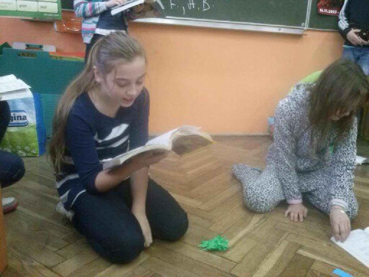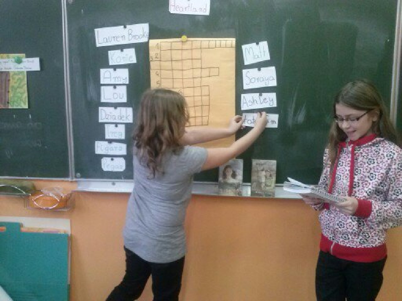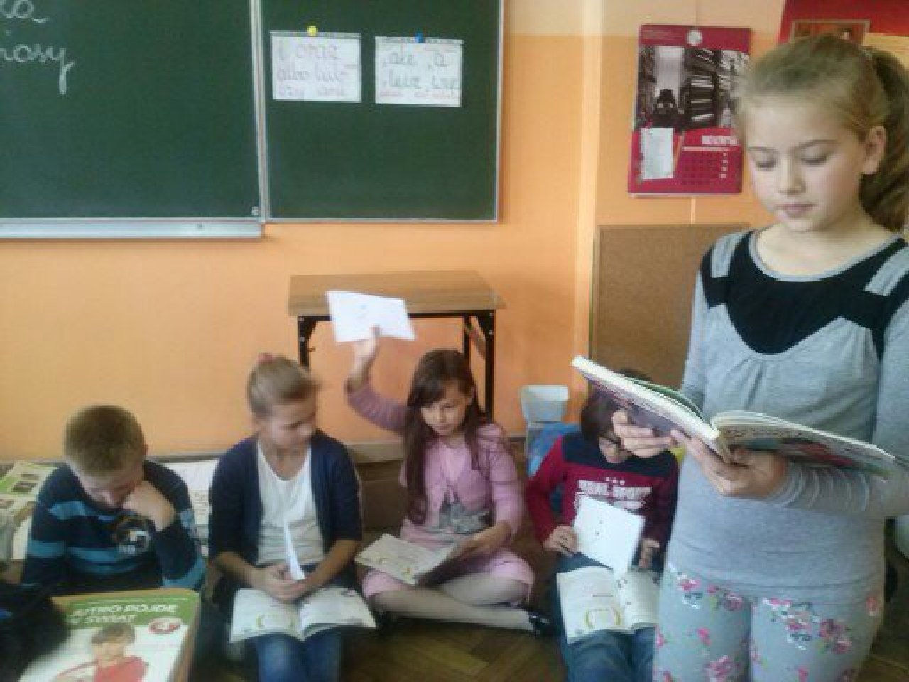 Lekcje języka polskiego to często zabawa, odgrywanie ról, swobodna interpretacja utworów literackich, prezentacja dodatkowo przeczytanych książek, spotkania z historią, a nawet wywiady z Noblistami. Dużym zainteresowaniem cieszą się konkursy wiedzowe, które organizujemy na podsumowanie, utrwalenie i oczywiście sprawdzenie wiedzy z danego działu podręcznika. A że odbywa się to w atrakcyjnej formie, to dzieci chętnie uczestniczą i sprawdzają swoją. Wszystko jest tak zorganizowane, że nauczyciel jest tylko obserwatorem lub uczestnikiem zabaw.