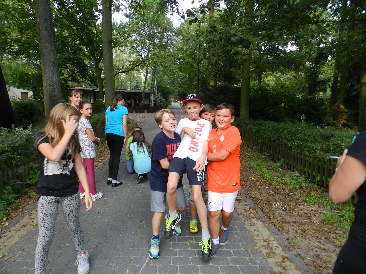 Pierwszego dnia, po zajęciach w szkole zebraliśmy się o 15:45. Wyruszyliśmy ok. 16:00. Na miejsce dojechaliśmy przed 18:15. Tuż po tym zakwaterowaliśmy się i zjedliśmy smaczny obiad. Później poszliśmy na spacer po Skorzęcinie. Następnie udaliśmy się na dyskotekę na której odbyła się „Gala Talentów” Po zabawie podekscytowani rozmawialiśmy w swoich domkach i poszliśmy spać. Drugiego dnia o godzinie 8:00 chętni zebrali się na poranne biegi. Po śniadaniu wyruszyliśmy na wycieczkę dydaktyczną do wsi Skorzęcin , łącząc edukację przyrodniczą z wypoczynkiem i turystyką. Z panem leśniczym weszliśmy do lasu, gdzie pochowany jest niemiecki leśniczy. Zobaczyliśmy jego nietypowy pomnik – pięć drzew różnej grubości, symbolizujących ,,grube i chude” lata zmarłego. Po powrocie zjedliśmy obiad i bawiliśmy się w podchody. Podczas których musieliśmy wykazać się wiedzą z zakresu zdrowego stylu życia i właściwego odżywiania się. Odnaleźliśmy skarb – czekoladowe monety. Zanim wróciliśmy do ośrodka podziwialiśmy jezioro i zamaczaliśmy w nim stopy. Na miejscu, wśród drzew zjedliśmy kiełbaski z grilla. Po rozmowach w pokojach zasnęliśmy.Ostatniego dnia o godzinie 8:00 odbyły się biegi, a o 8:30 zjedliśmy śniadanie. Następnie spakowaliśmy się, posprzątaliśmy pokoje i wsiedliśmy do autobusu. Około 14:05 byliśmy pod szkołą.Wszyscy świetnie się bawili. Nie możemy doczekać się kolejnych takich wyjazdów. Paniom serdecznie dziękujemy za opiekę i wiele miłych wrażeń.