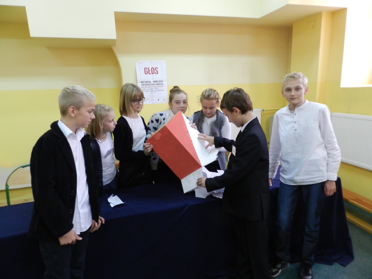 26 września już po raz drugi w naszej szkole w ramach współpracy z Centrum EdukacjiObywatelskiej odbyły się wybory do Samorządu Uczniowskiego na rok szkolny 2014/2015. Zanotowaliśmy 90% frekwencję wyborczą. Najwięcej głosów uzyskały następujące osoby: Natalia Borowczyk, Maciej Adamiak, Martyna Forma, Kasia Łapka, Klaudia Michalak, Aniela Kurzawa, Julia Szlucha, Oskar Brzostkowski, Klaudia Kowalewska, Nina Grabara, Anna Ziętek, Gabriela Grenda. Głosowało236 uczniów na 260 uprawnionych do głosowania. Kampanię wyborcza, którą prowadzili nasi kandydaci przebiegała na zasadach fair play. Nasze korytarze i gazetki były kolorowe od pięknych plakatów wyborczych. Kandydaci rozmawiali z swoimi wyborcami, przedstawiali swój program, zachęcali do głosowania. Bardzo dobrze spisała się komisja wyborcza, która przygotowały lokal wyborczy, karty do głosowania, urnę wyborczą oraz listy wyborców; czuwała nad przebiegiem głosowania. Wszystkim uczestnikom wyborów dziękujemy, a członkom Rady SU gorąco gratulujemy!
