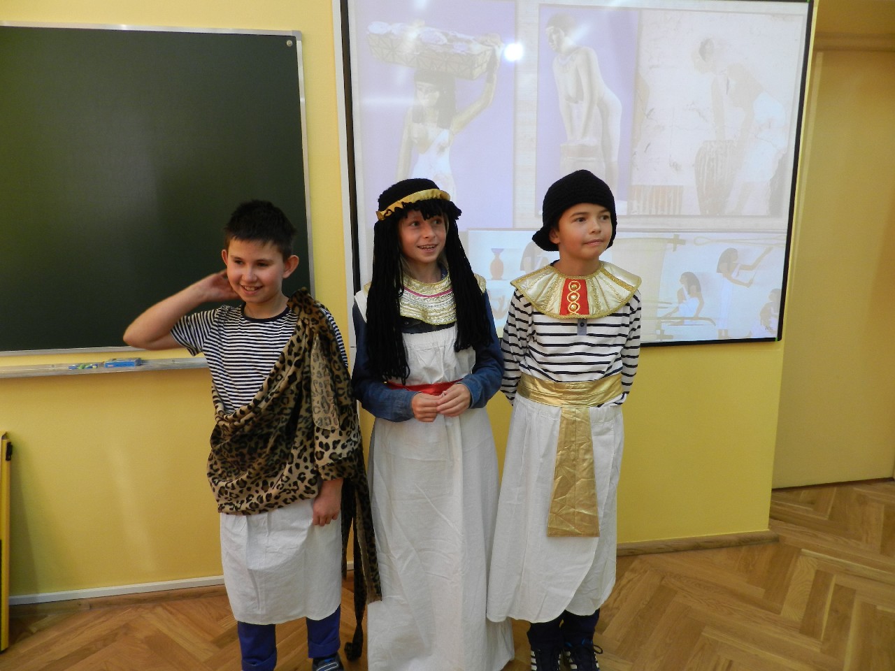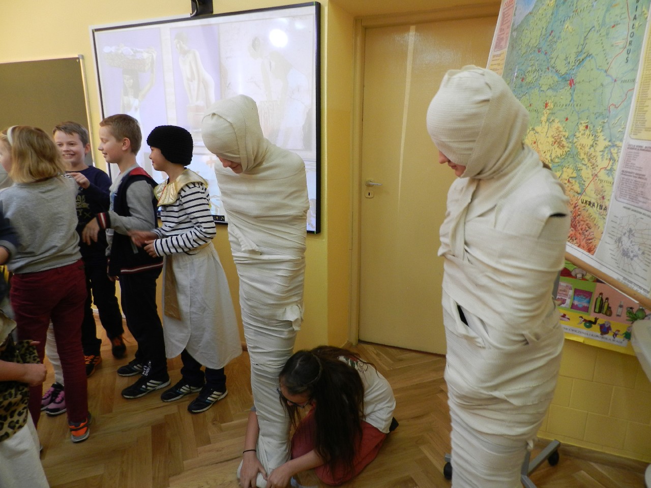 Wszyscy chętni uczniowie klas piątych 25 września przekraczając próg klasy historycznej mogli odbyć podróż do Starożytnego Egiptu. Lekcja muzealna, której tematem jest Śmierć i życie w Starożytnym Egipcie wpisała się w proces dydaktyczny. Tego typu lekcja rozwija i rozbudza zainteresowania uczniów, jest to wielki potencjał poszerzania wiedzy. Forma lekcji warsztatowa sprawia, że uczniowie aktywnie uczestniczą, wcielają się w ważne postacie