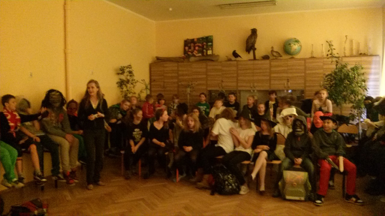 Zadaniem każdego uczestnika było przedstawienie swojej postaci w języku angielskim. Każdy strój był wyjątkowy. Atmosferę podczas prezentacji uczestników podgrzewała mroczna muzyka, przygaszone w sali światło oraz płonąca dynia, która widniała na tablicy interaktywnej. Wszyscy bardzo wczuli się w odgrywane przez siebie postaci. W trakcie konkursu przyszły do nas w odwiedziny przedszkolaki z Przedszkola Samorządowego nr 8 im. Krasnala Hałabały w Turku. Następnie jury udało się na naradę, podczas gdy uczestnicy oglądali bajkę o tematyce halloweenowej pt.: „Duszek Casper”. Po naradzie jury ogłosiło wyniki. Zostały przyznane trzy główne nagrody oraz trzy wyróżnienia. Troje dzieci przebranych najciekawiej otrzymało dyplomy i nagrody, a pozostali uczestnicy dostali słodką nagrodę pocieszenia.