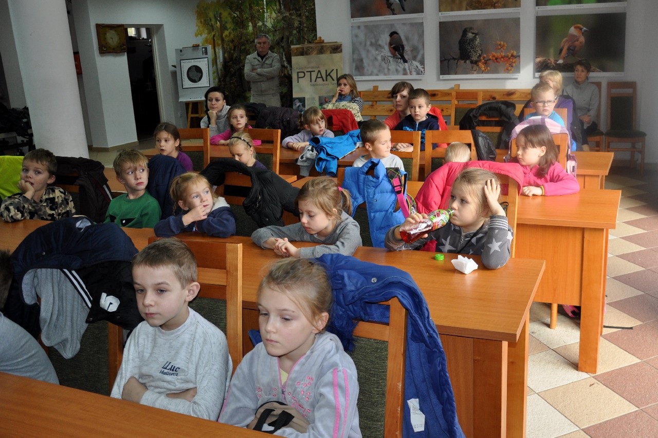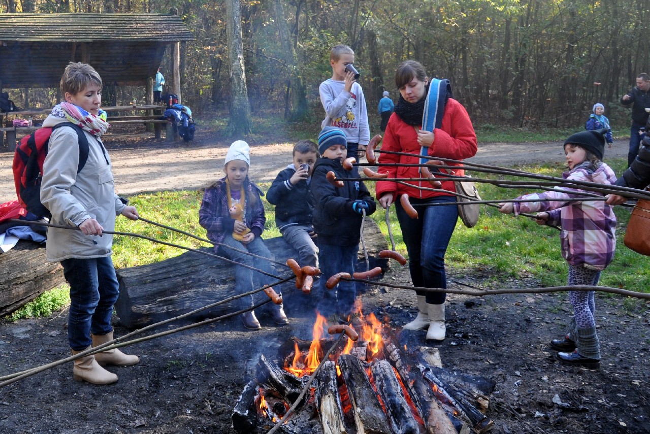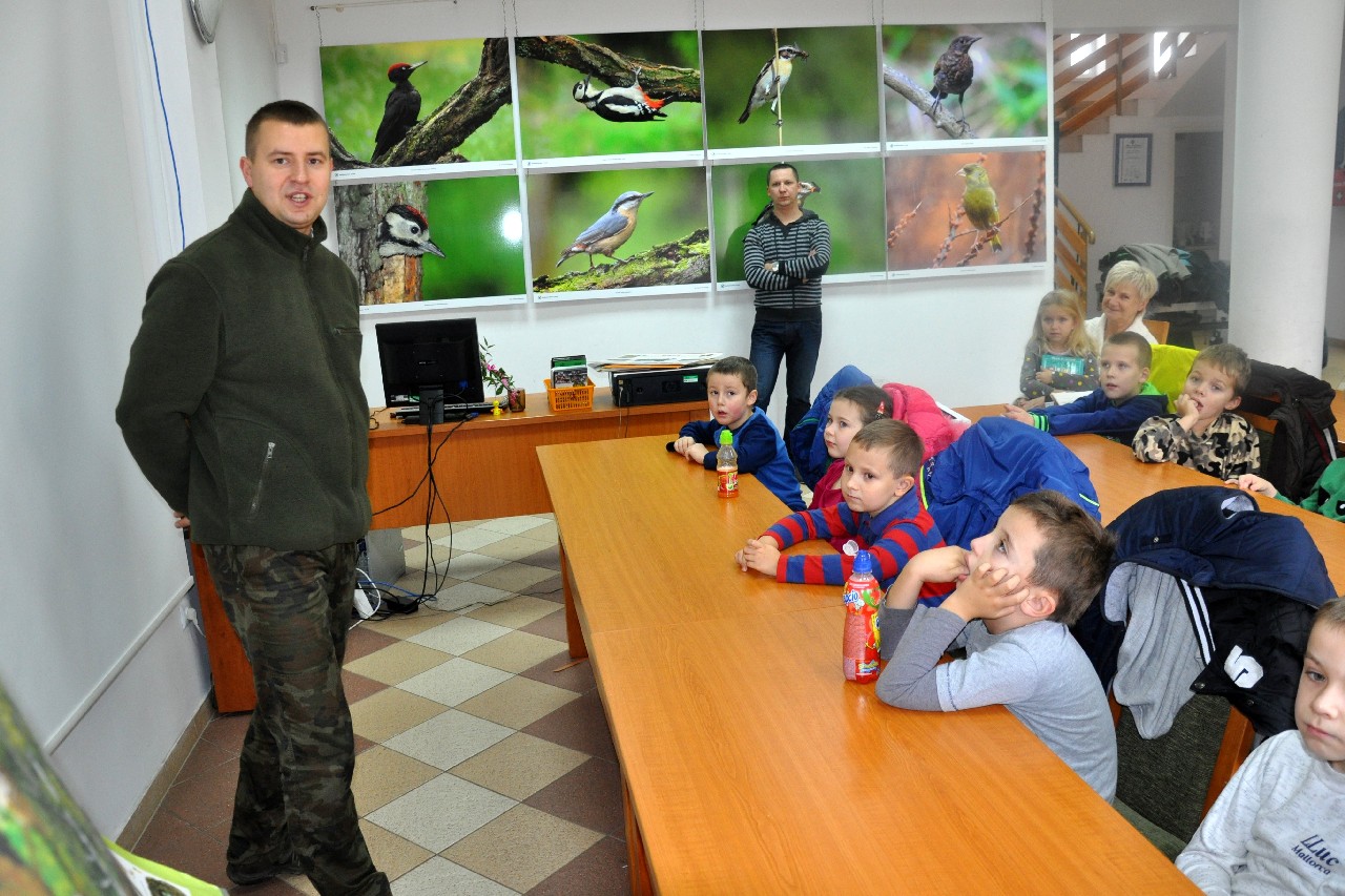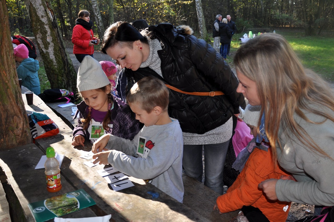 dzieciom fascynujący świat roślin i zwierząt leśnych. Wszyscy byli pod ogromnym wrażeniem - kiedy oglądając film o lesie - słuchali również odgłosów leśnej zwierzyny. Następnie, spacerując leśnymi ścieżkami, dzieci szukały darów jesieni, obserwowały ptaki przez lornetkę, rozpoznawały znane gatunki drzew i krzewów, które o tej porze roku są niezwykle malownicze. Lupa z kolei pozwoliła na podglądanie maleńkich żuczków w ściółce leśnej, drobnych roślinek i obserwację kory drzew. Uczniowie świetnie bawili się też uczestnicząc w różnych konkursach wiedzy o lesie, oraz wesołych zabawach – z nagrodami. Największą jednak frajdą było samodzielne pieczenie kiełbasek w ognisku, przygotowanym przez rodziców. Kiełbaski smakowały wybornie, tak samo jak pieczony chlebek. Na zakończenie spotkania dzieci wręczyły Panu Leśniczemu podziękowanie za wspaniałą lekcję „żywej przyrody” oraz drobny upominek / wykonany przez Mamę naszego kolegi, za co bardzo Dziękujemy!/. kolei dzieci otrzymały książeczki – przewodniki po lesie, które wykorzystają na zajęciach w szkole. Pełni wiedzy o lesie i niezapomnianych wrażeń dzieci – też pieszo - wróciły do szkoły.