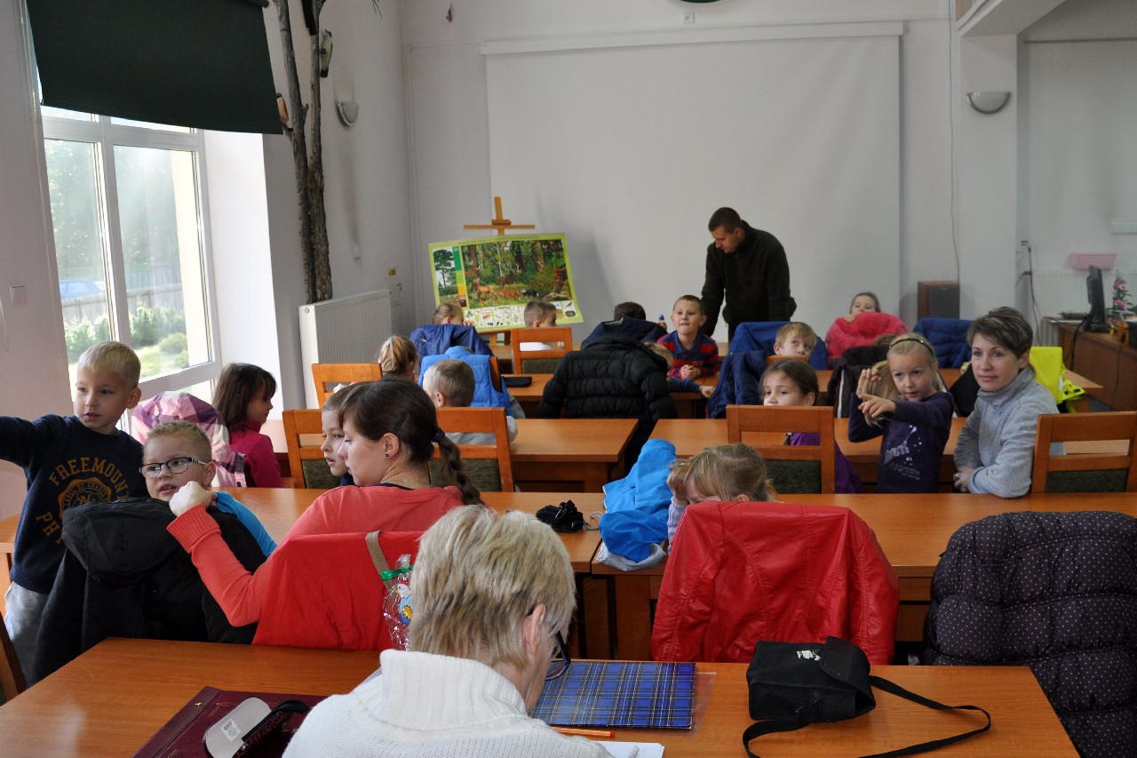 W jesienny, słoneczny dzień - 28 października - uczniowie klasy I „e”z wychowawczynią Panią Elżbietą Frasunkiewicz oraz rodzicami, wybrali się na pieszą wycieczkę do pobliskiego lasu. W Izbie Edukacyjnej Nadleśnictwa Turek spotkali się z Panem Leśniczym – Radosławem Szocińskim, który w ciekawy sposób przedstawił