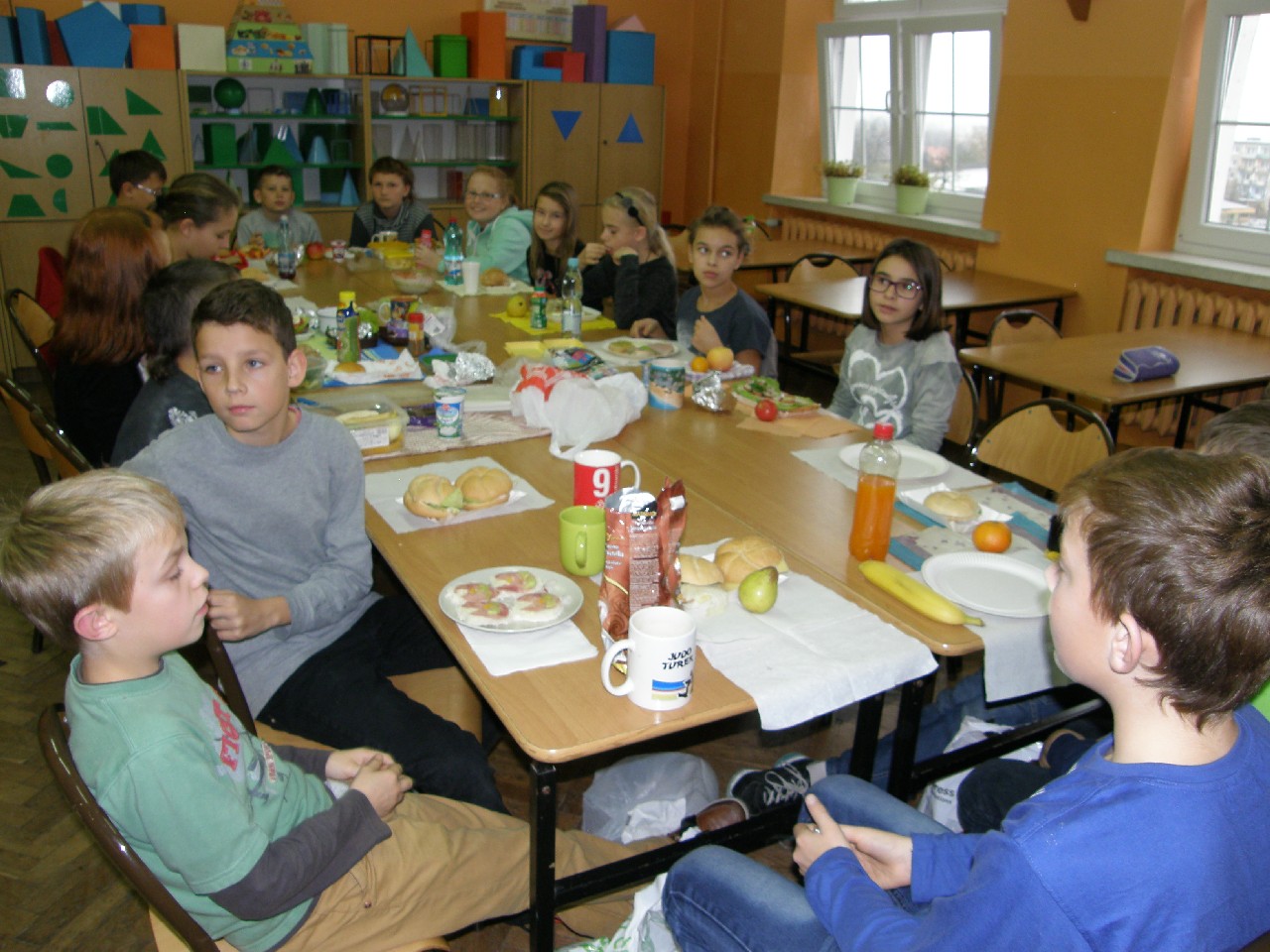 07.11.2014r. w piątek, odbyło się klasowe śniadanie. Do akcji po raz kolejny przystąpiła cała szkoła. Śniadanie to najważniejszy posiłek dnia. Dostarcza nam energii niezbędnej do funkcjonowania. Powinniśmy je jeść zawsze przed wyjściem do szkoły. Z tych powodów wszyscy zorganizowaliśmy wspólny posiłek. Na 3 i 4 godzinie lekcyjnej (9:45 - 11:25) uczniowie klasy 5e przygotowali kanapki.
