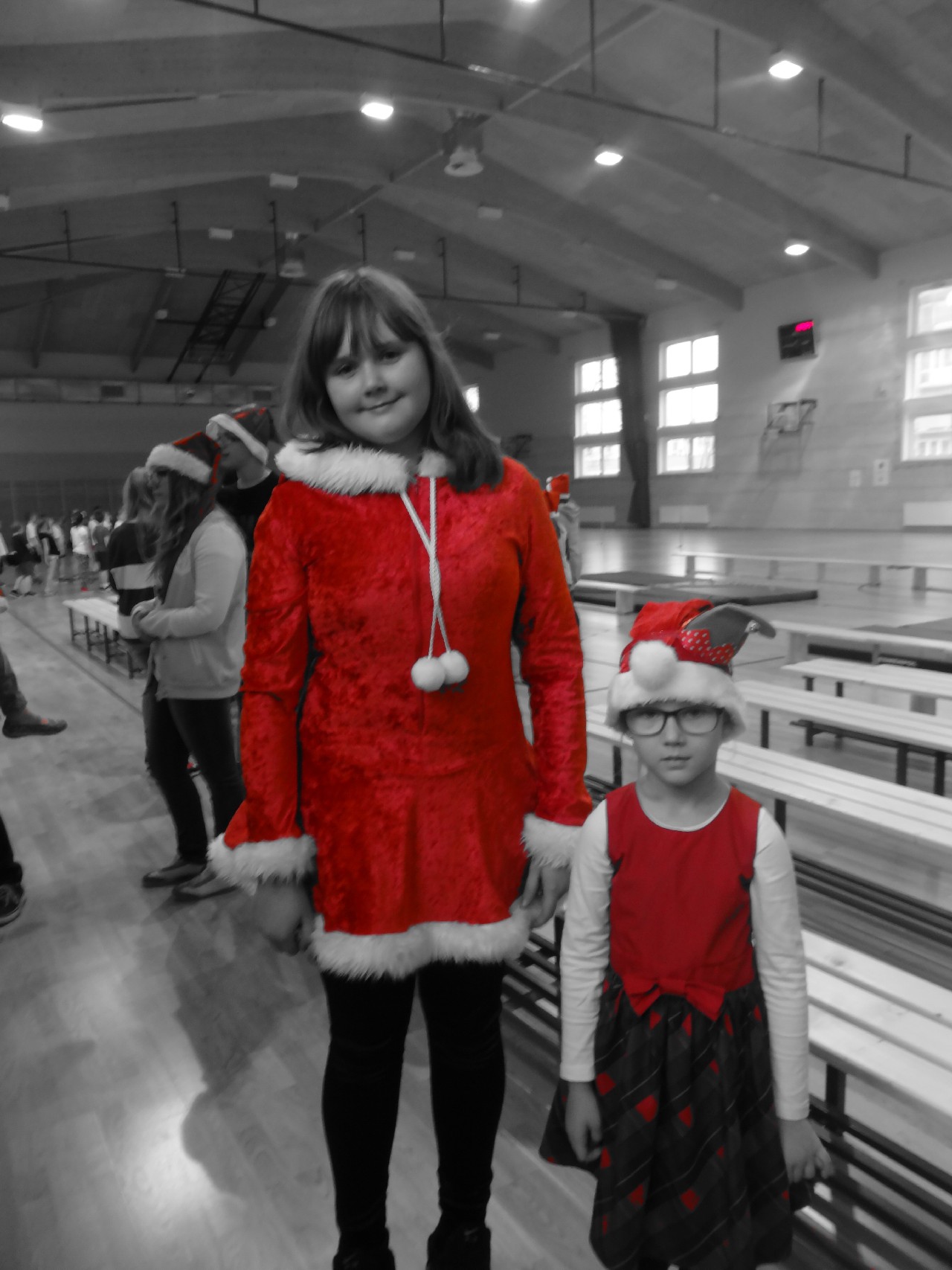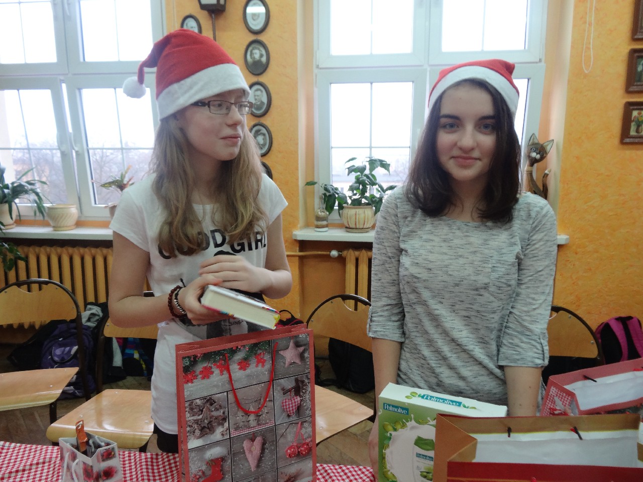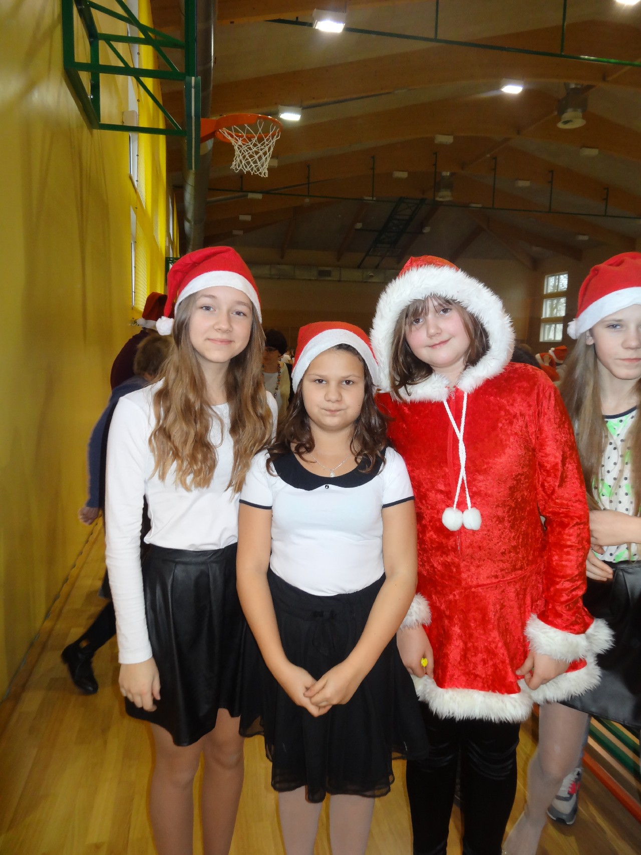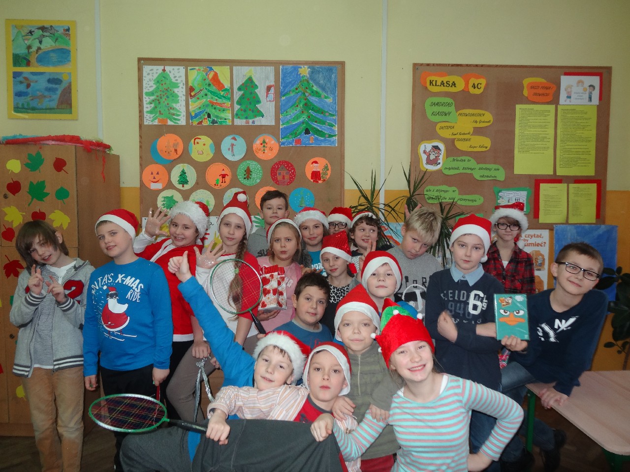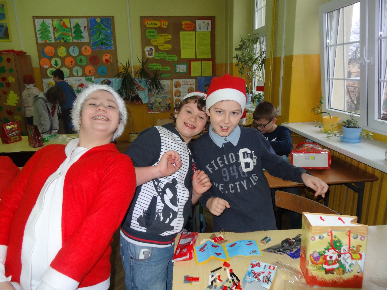 odwiedza nas prawdziwy Mikołaj z worem cukierków i rozdaje je uczniom, nie zważając, czy ktoś zasłużył bardziej czy mniej. O miłą atmosferę w tym dniu zadbali też uczniowie z sekcji rozrywki SU. Na przerwach można było posłuchać utworów wprowadzających nas w atmosferę nadchodzących świąt. W tym dniu mało kto nie posiadał czapki mikołajkowej, mieli je również nasi nauczyciele, co widać na wspólnej pamiątkowej fotografii.