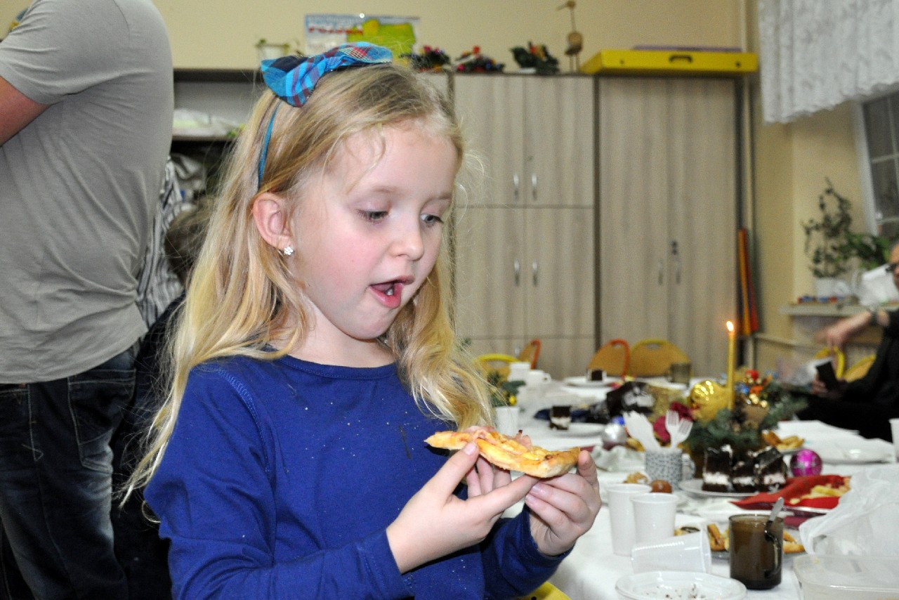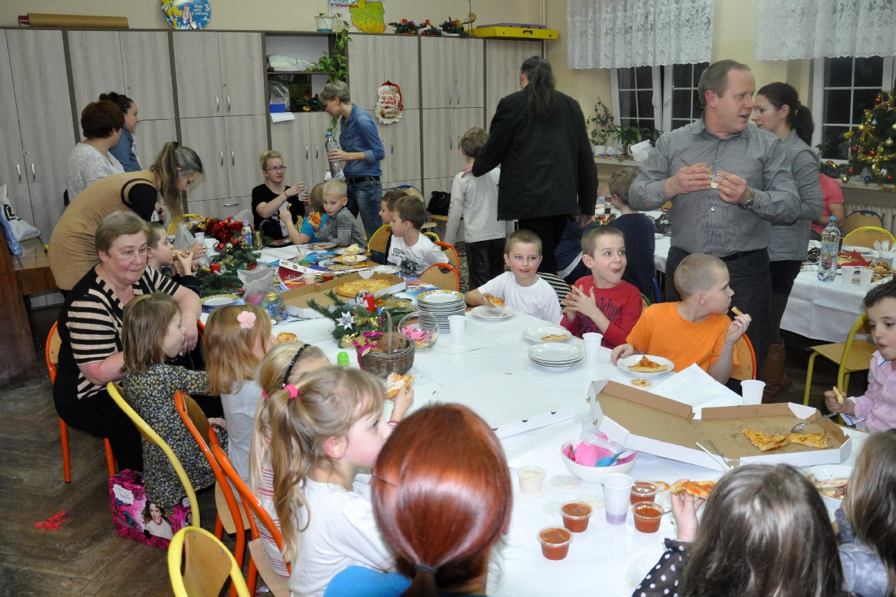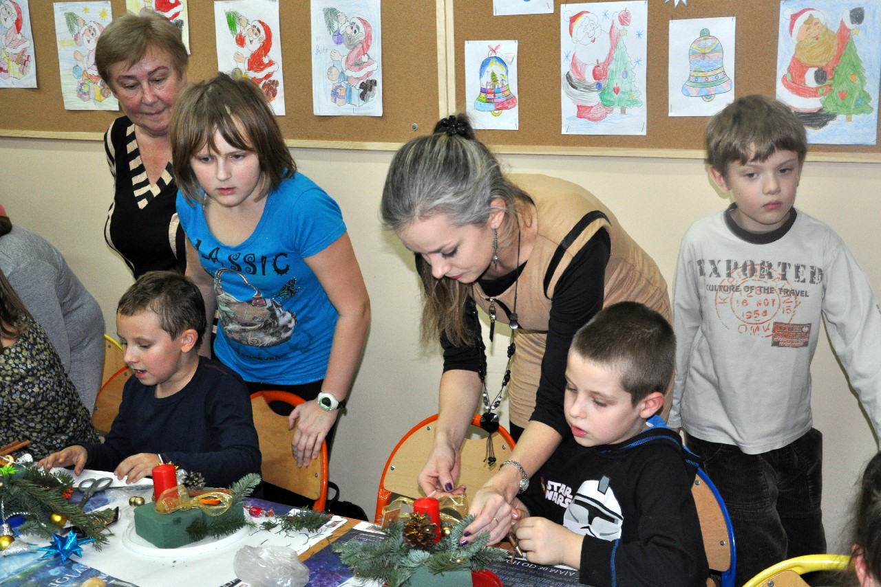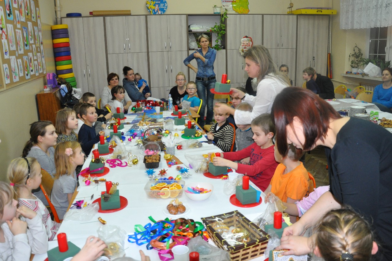 Dzieci wspólnie z rodzicami wykonały śliczne, pachnące stroiki, które potem przystrajały świąteczne stoły. Ozdabiały też lukrem pachnące pierniczki, malowały rajskie ptaki na choinkę. Wspólna praca dostarczyła wszystkim mnóstwo radości i zabawy; świetnie bawili się i „duzi i mali”. Tego wieczoru po raz pierwszy mieliśmy przyjemność posłuchać kolęd w wykonaniu ucznia Witka Sobczaka, który pięknie grał na keyboardzie. Spotkanie upłynęło w radosnej i przyjemnej atmosferze. Dziękujemy wszystkim rodzicom, którzy przyczynili się do tego, aby ten wieczór był magiczny i wyjątkowy… dziękujemy za Państwa obecność.