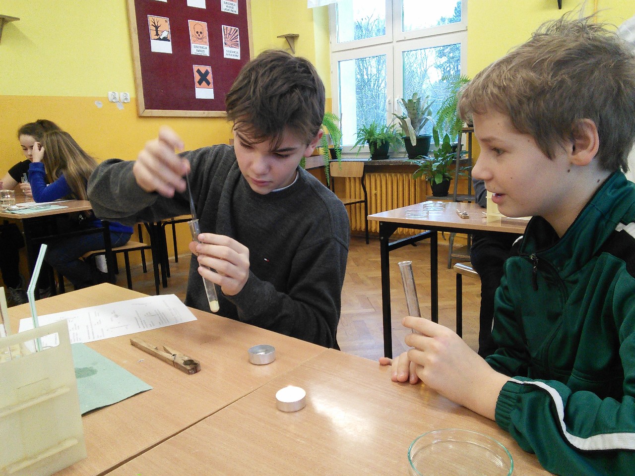 Braliśmy udział w bardzo ciekawej lekcji chemii w ramach której wykonaliśmy szereg doświadczeń. Pan dyrektor Piotr Bińkowski zaprosił nas do zwiedzenia szkoły i wstąpienia w szeregi jej uczniów w przyszłości. Bardzo dziękujemy za miłe przyjęcie!