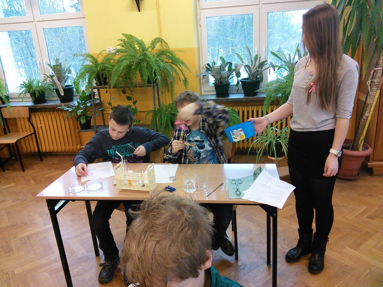 W dniu 4 lutego razem z naszą wychowawczynią Panią Ireną Dominiak odwiedziliśmy gimnazjum nr 2. Powitała nas Pani wicedyrektor Agnieszka Rajczyk, zajęcia poprowadziły Panie Ewa Perlińska oraz Aleksandra Szafarz a asystowali im nasi byli uczniowie Alicja Sobiś, Magdalena Perlińska, Mateusz Pakuła oraz Jakub Skiba.