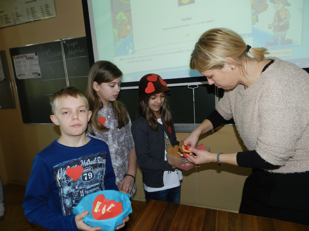 WALENTYNKI przypadają 14 lutego, w naszej szkole obchodziliśmy je 13 lutego w piątek. Samorząd szkolny wymyślił na ten dzień różne atrakcje. Przygotowali oni ponad sto czerwonych serc z napisem” WALENTYNKI 2015”.Uczniowie klasy V d rozdawali je nauczycielom i uczniom. Zorganizowali też podczas przerw dyskotekę. Odbywała się ona na korytarzu, wszyscy się świetnie bawili. Przedstawiciele samorządu i uczniowie przynieśli do szkoły upieczone ciastka w kształcie serc. Częstowali nimi kadrę nauczycielską i siebie nawzajem. Prawie wszyscy uczestnicy WALENTYNEK mieli przypięte do ubrania czerwone serca. Atmosfera tego dnia była wspaniała, było dużo śmiechu i radości. Był to SUPER dzień.