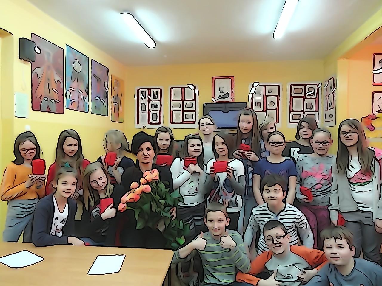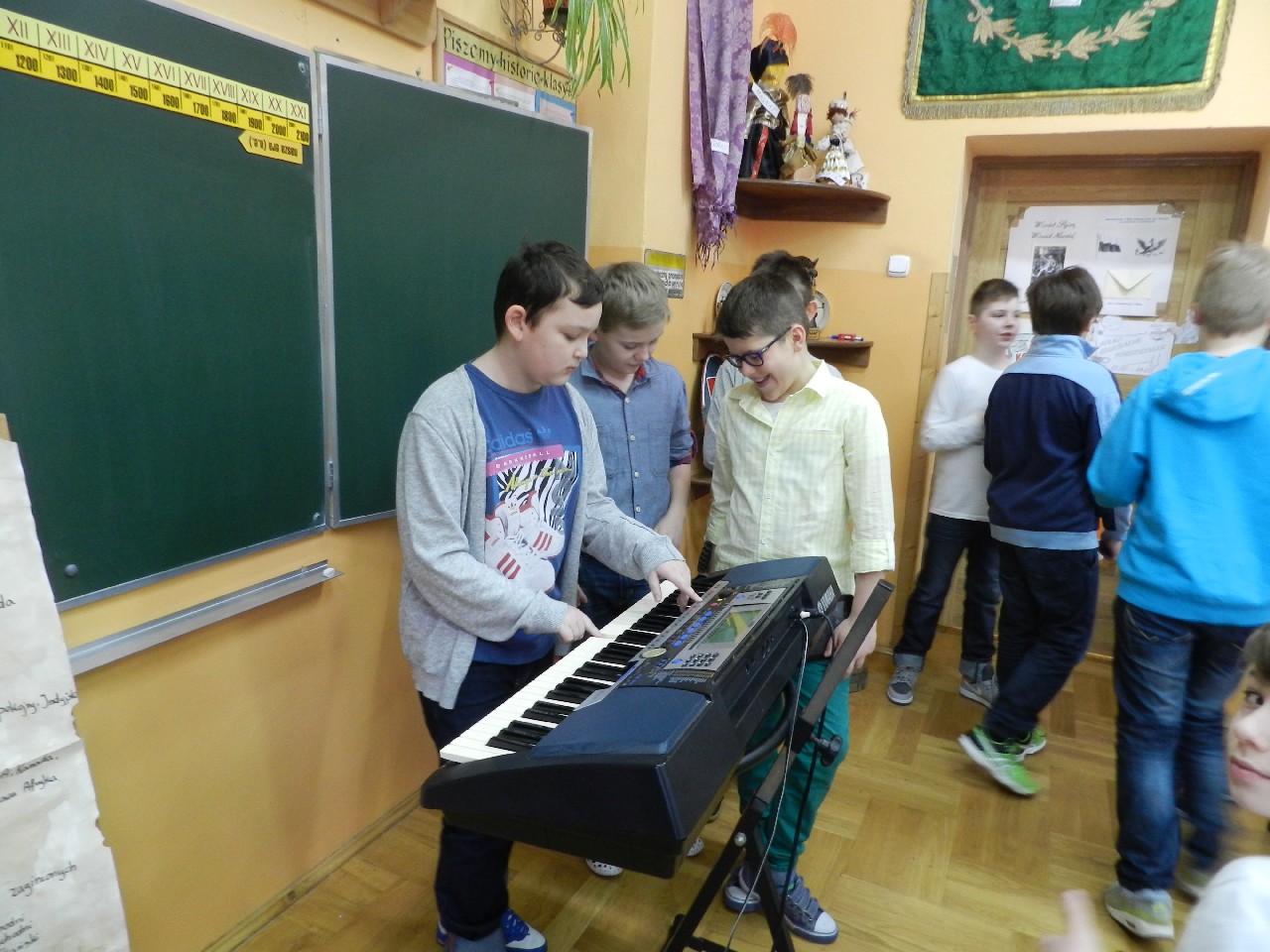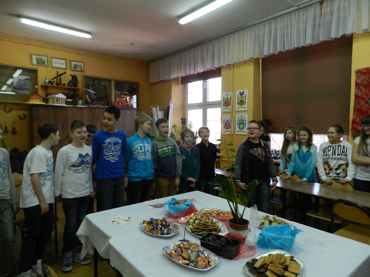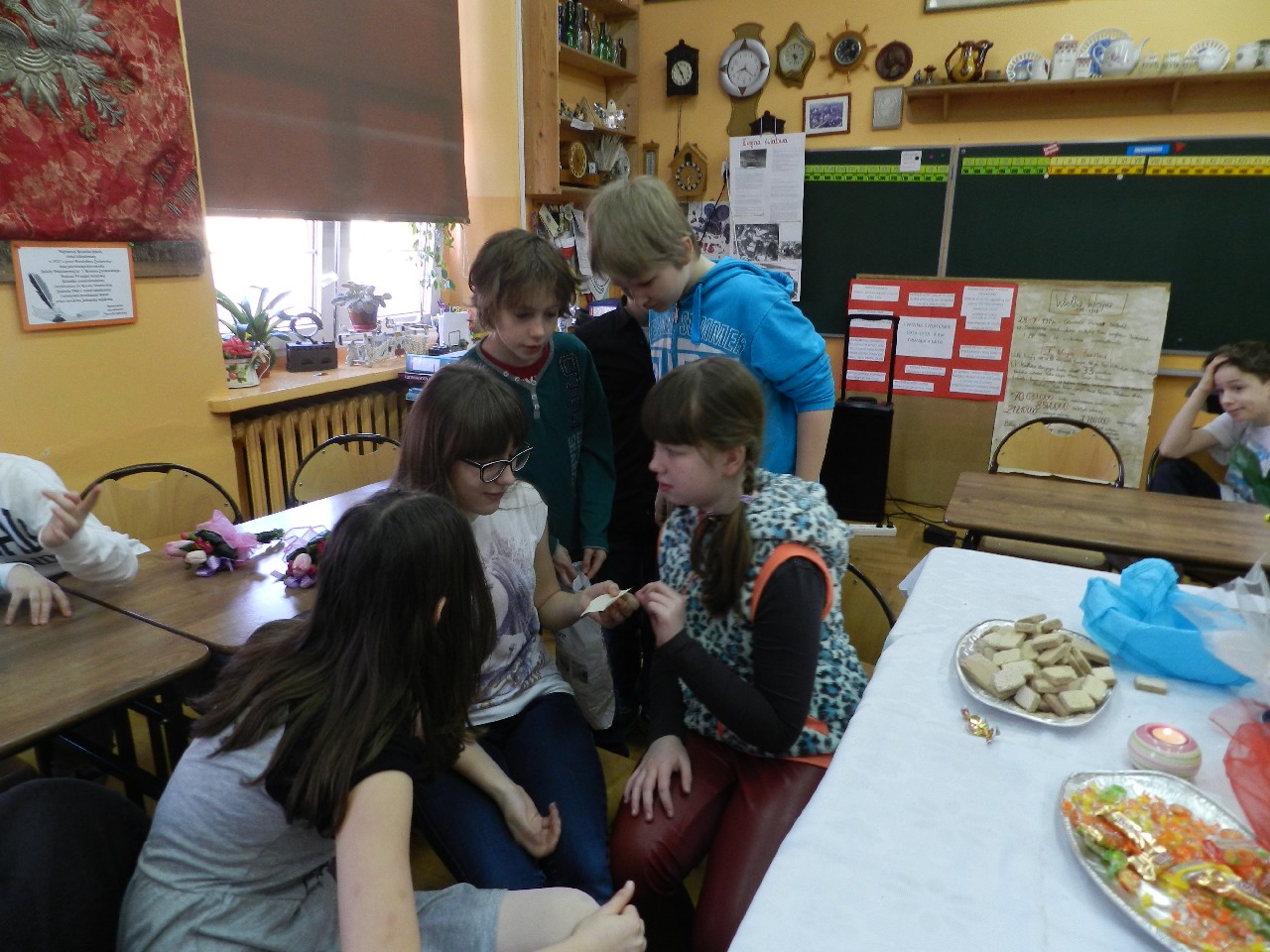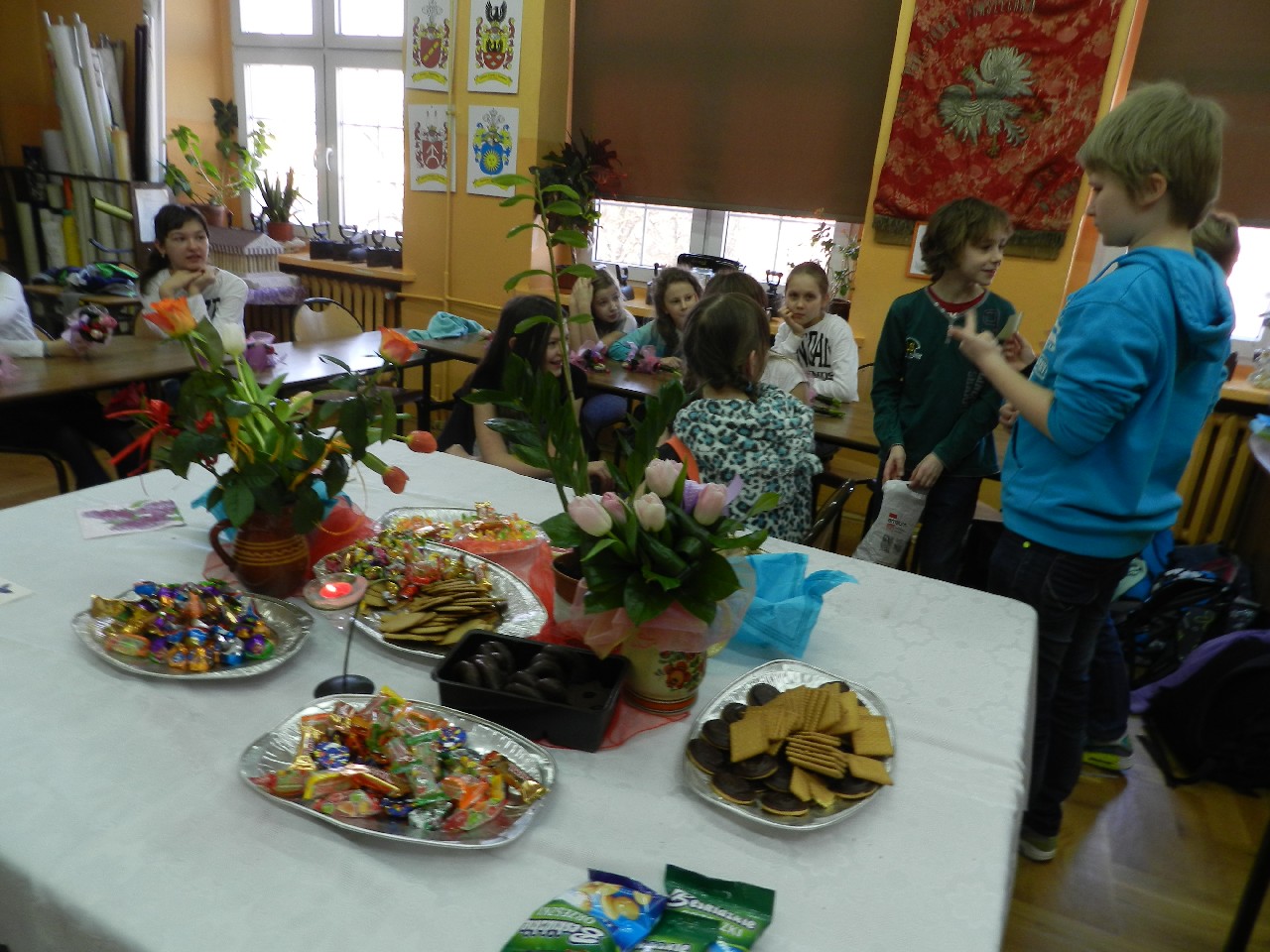 W poniedziałek 9 marca 2015 roku SU w naszej szkole zorganizował obchody Dnia Kobiet święta pań i dziewczynek. Na przerwach chłopcy z klasy 5e Aleks Walczykowski i Kacper Latuszewski zorganizowali koncert żywej muzyki. Również inni koledzy mogli złożyć życzenia lub napisać pozdrowienia na dużej laurce. Dziewczynkom bardzo się podobało czuły się w tym dniu wyróżnione i docenione.