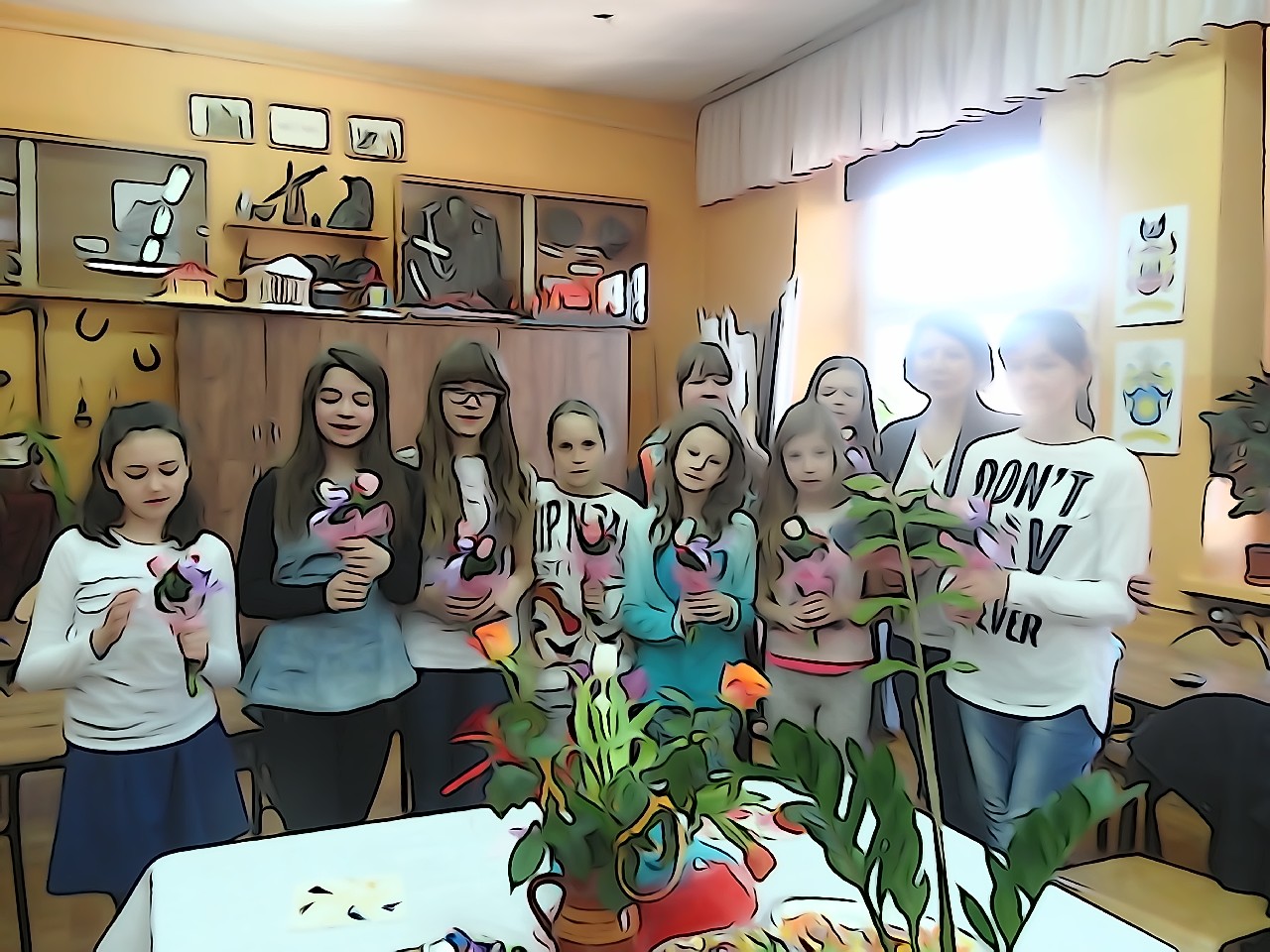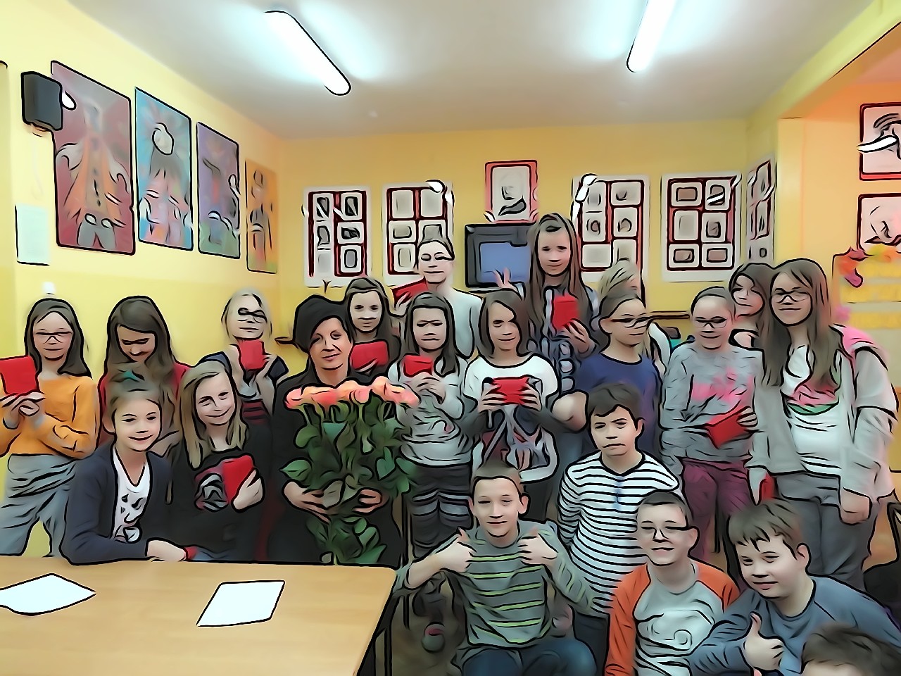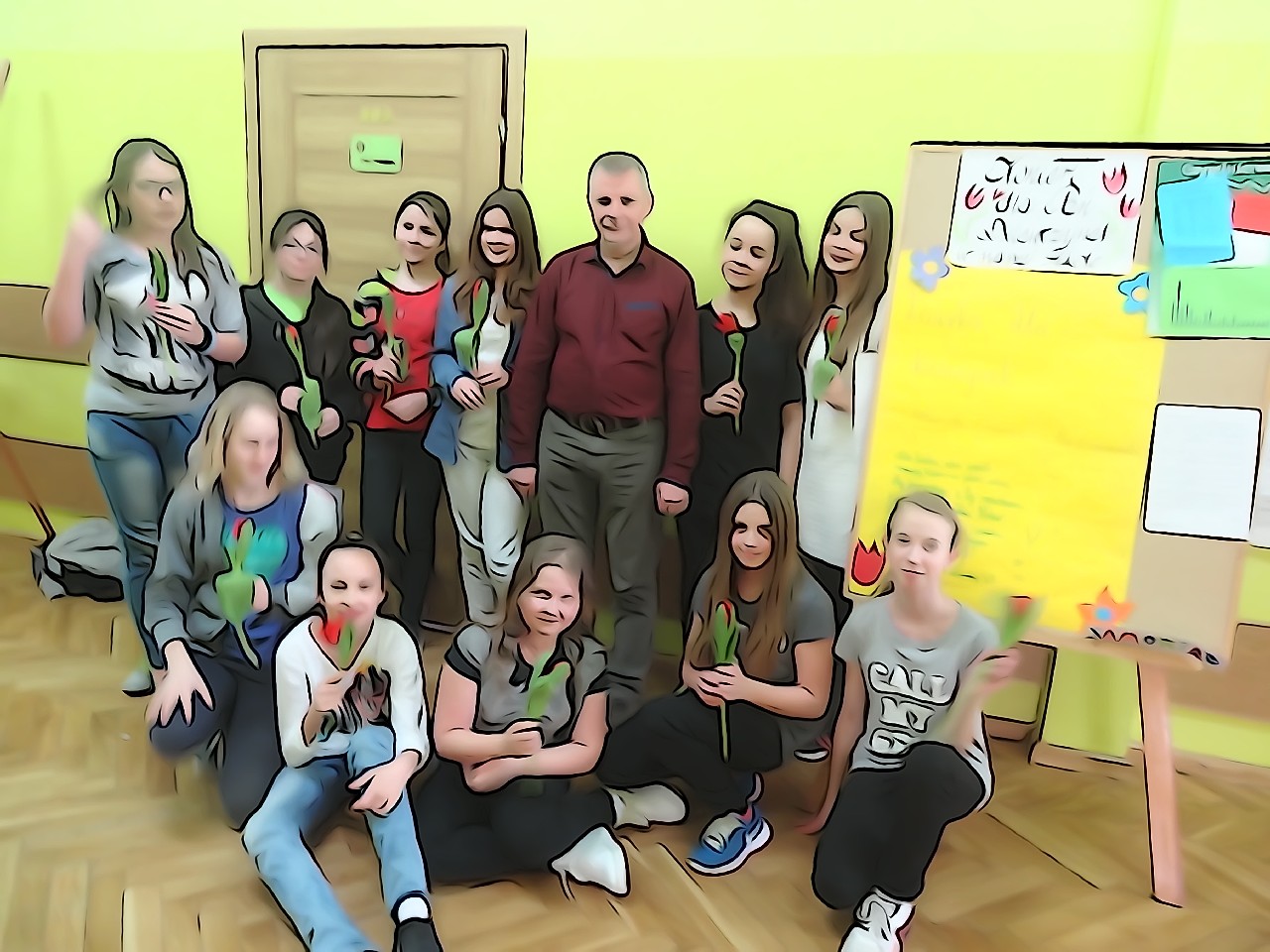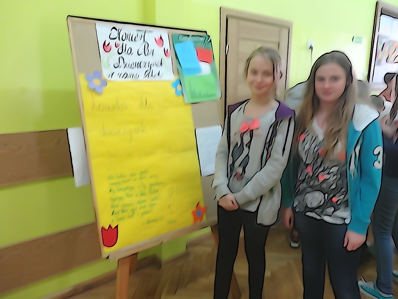 W poniedziałek 9 marca 2015 roku SU w naszej szkole zorganizował obchody Dnia Kobiet święta pań i dziewczynek. Na przerwach chłopcy z klasy 5e Aleks Walczykowski i Kacper Latuszewski zorganizowali koncert żywej muzyki. Również inni koledzy mogli złożyć życzenia lub napisać pozdrowienia na dużej laurce. Dziewczynkom bardzo się podobało czuły się w tym dniu wyróżnione i docenione.