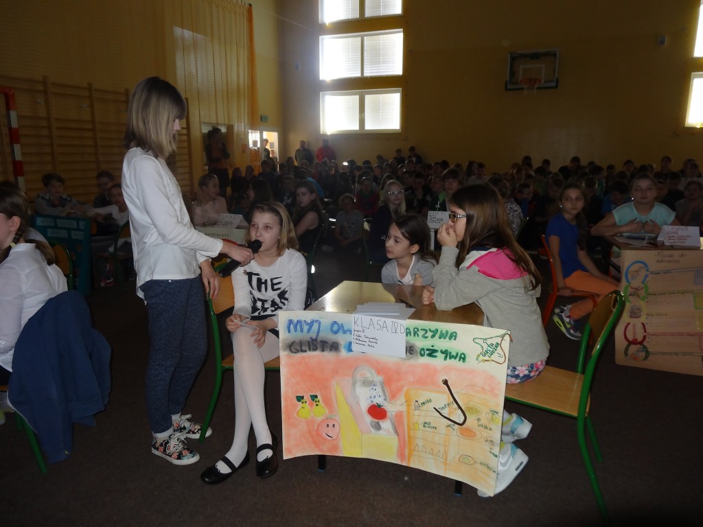 Natomiast w piątek 10 kwietnia odbył się finał „Konkursu wiedzy o zdrowiu”, który był podsumowaniem działań prozdrowotnych. Organizatorkami konkursu były: wicedyrektor p. Krystyna Morek oraz nauczycielka przyrody Katarzyna Błajet. W przygotowaniach i organizacji konkursu pomogła również praktykantka p. Karolina Fabiańska.