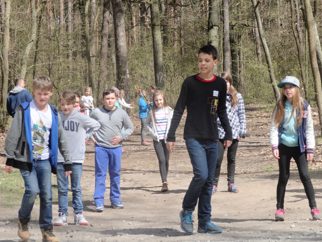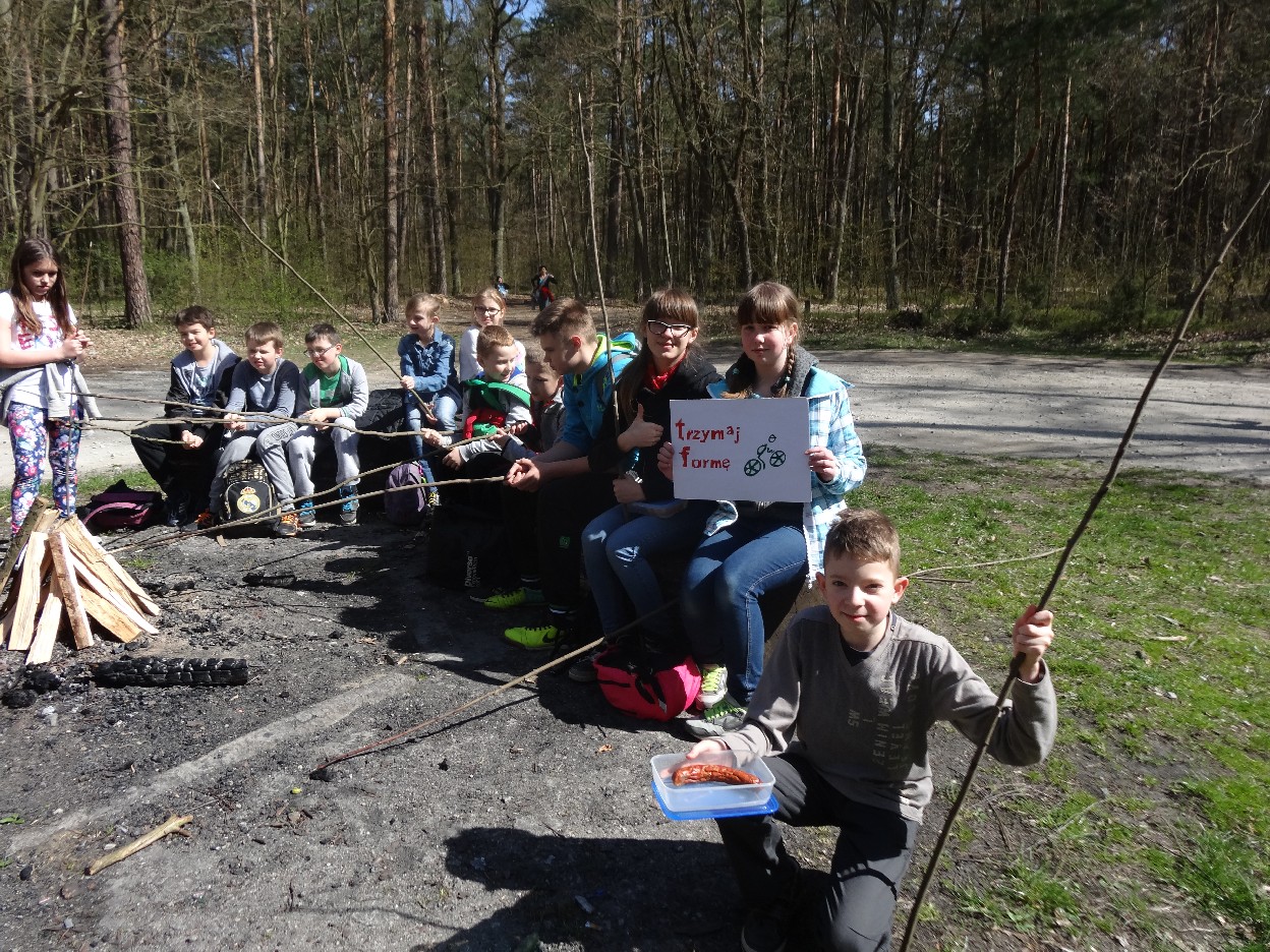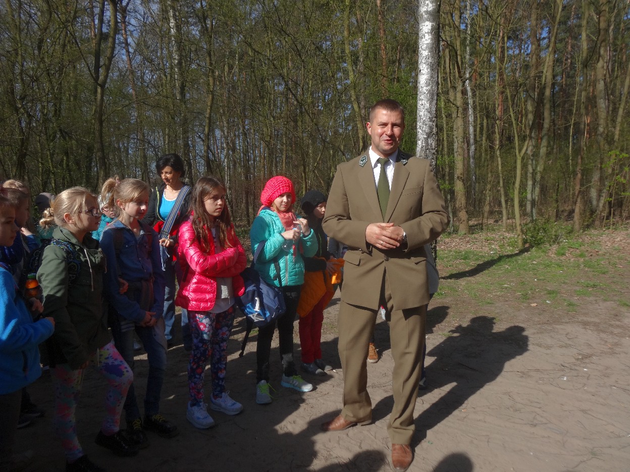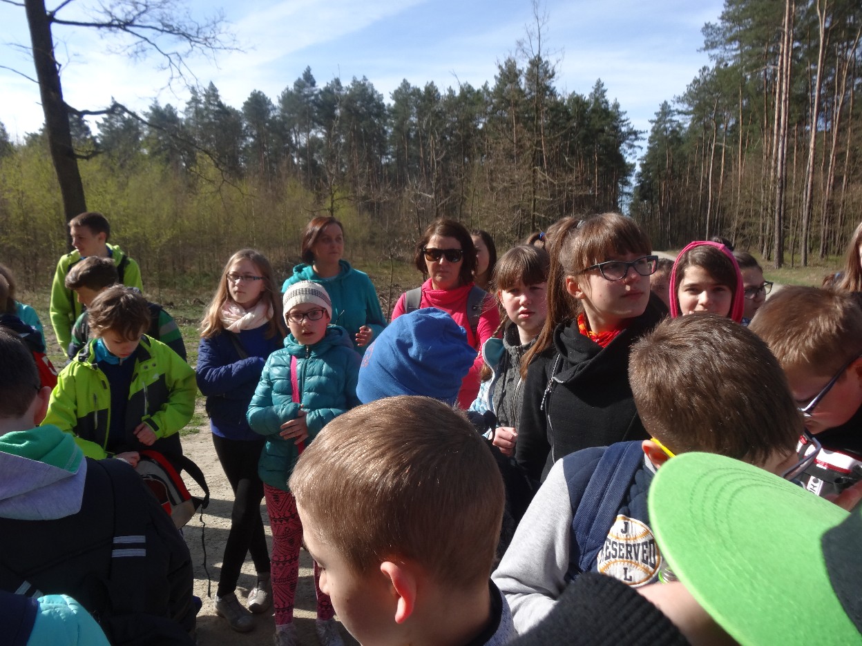 Wszyscy zebraliśmy się w szkole o godzinie 8:20, a dziesięć minut później wyruszyliśmy. Pogoda nam sprzyjała. Słońce świeciło, ale nie było zbyt gorąco. Dotarliśmy do lasu i odbyliśmy spacer po nim. Zadzieraliśmy w górę głowy, aby ujrzeć korony drzew. Z zaciekawieniem słuchaliśmy pana leśnika. Dowiedzieliśmy się, że ta duże rośliny doskonale chronią przed wiatrem. Samica sarny to koza, jelenia – łania. Obserwowaliśmy ptaki, przypatrywaliśmy się sadzonkom. Teraz wiemy co jest najlepszym lekarstwem na chore gardło. Po długim marszu dotarliśmy na polanę. Tam, w specjalnie przygotowanym miejscu odbyło się ognisko. Każdy upiekł kiełbaski, niektórzy nawet chleb czy bułki. Mieliśmy też czas na porozmawianie ze sobą, gry i zabawę. Około godziny 12:00 wyruszyliśmy z powrotem do szkoły. Zaszliśmy tam o 12:25. Po takim dniu w lesie każdy czuł się lepiej.