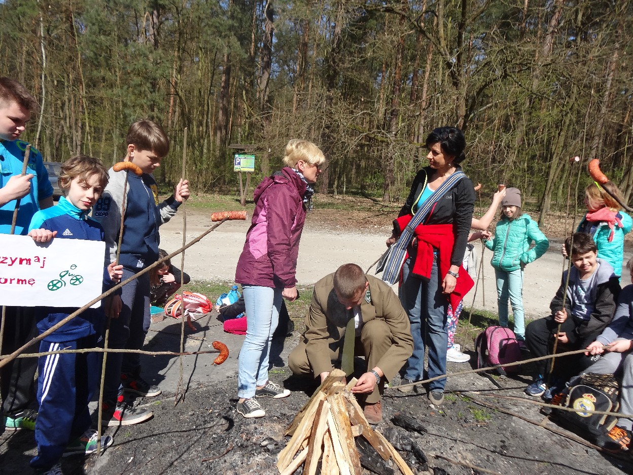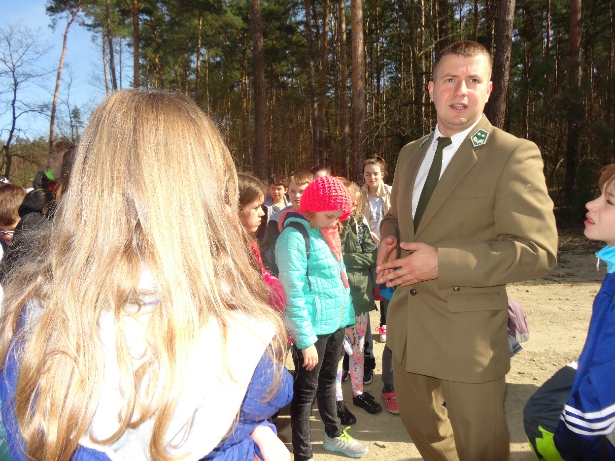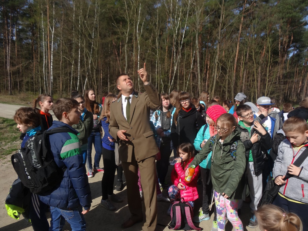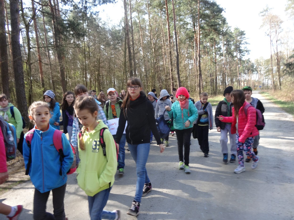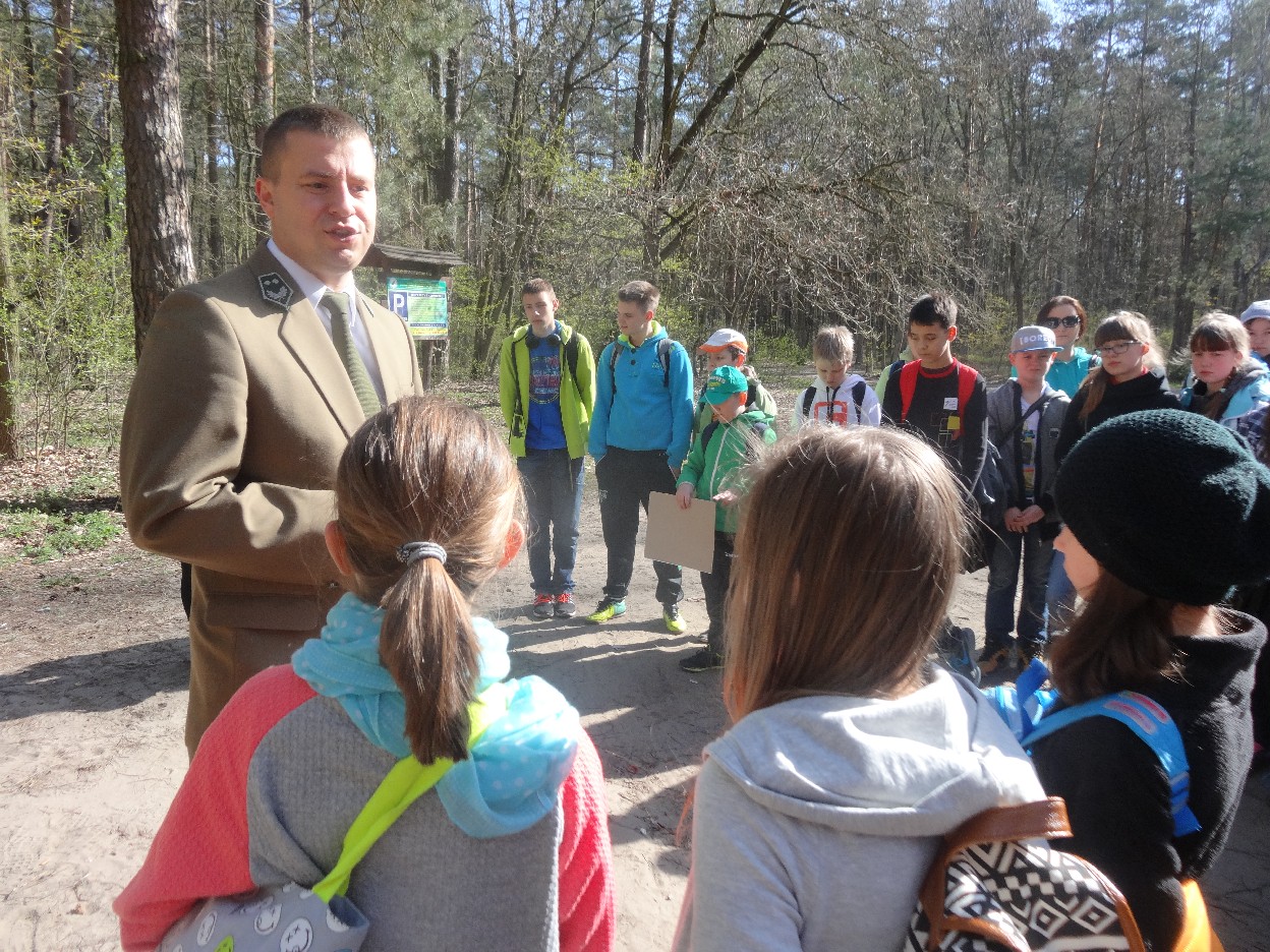 Wszyscy zebraliśmy się w szkole o godzinie 8:20, a dziesięć minut później wyruszyliśmy. Pogoda nam sprzyjała. Słońce świeciło, ale nie było zbyt gorąco. Dotarliśmy do lasu i odbyliśmy spacer po nim. Zadzieraliśmy w górę głowy, aby ujrzeć korony drzew. Z zaciekawieniem słuchaliśmy pana leśnika. Dowiedzieliśmy się, że ta duże rośliny doskonale chronią przed wiatrem. Samica sarny to koza, jelenia – łania. Obserwowaliśmy ptaki, przypatrywaliśmy się sadzonkom. Teraz wiemy co jest najlepszym lekarstwem na chore gardło. Po długim marszu dotarliśmy na polanę. Tam, w specjalnie przygotowanym miejscu odbyło się ognisko. Każdy upiekł kiełbaski, niektórzy nawet chleb czy bułki. Mieliśmy też czas na porozmawianie ze sobą, gry i zabawę. Około godziny 12:00 wyruszyliśmy z powrotem do szkoły. Zaszliśmy tam o 12:25. Po takim dniu w lesie każdy czuł się lepiej.