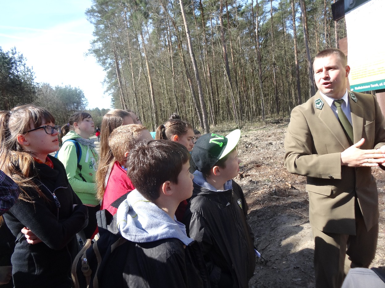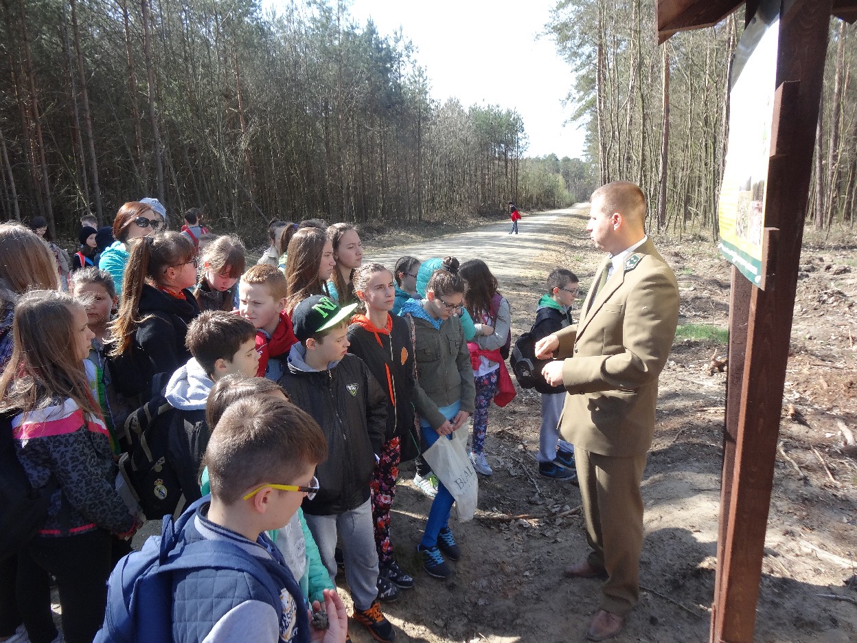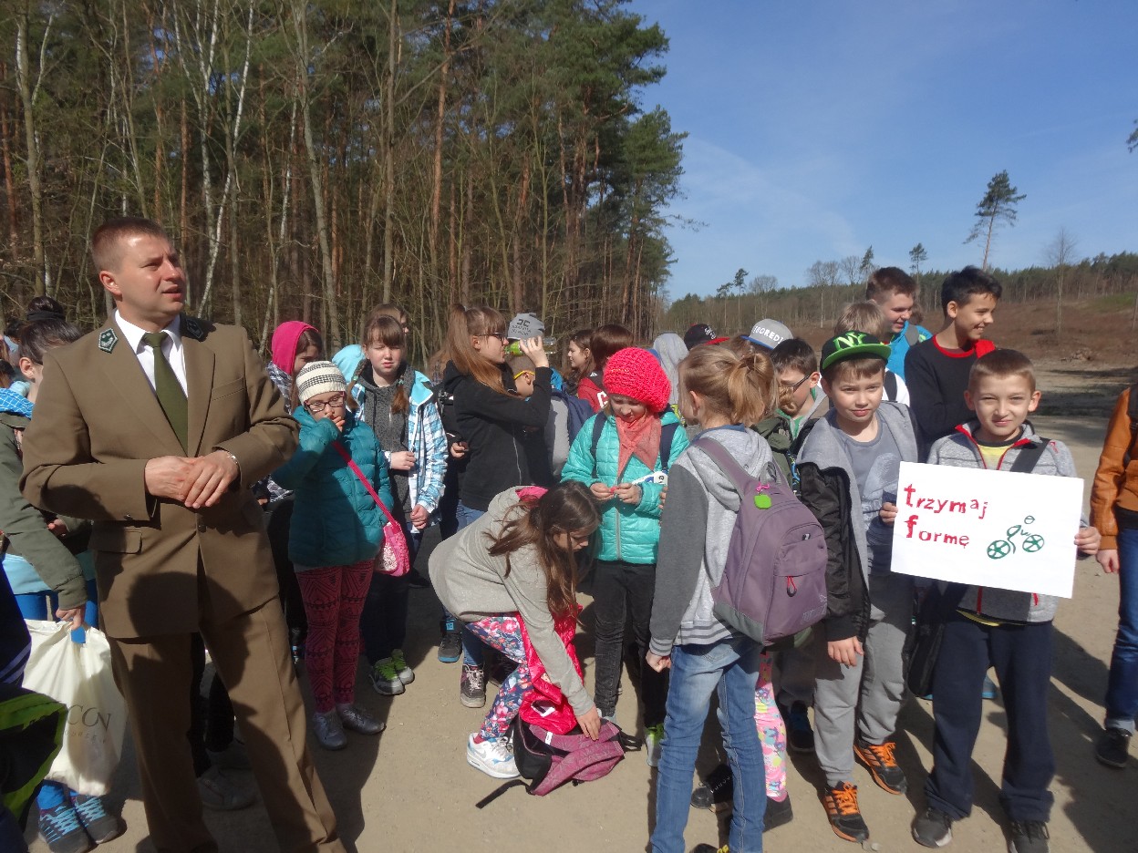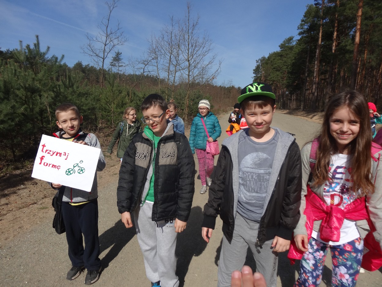Wszyscy zebraliśmy się w szkole o godzinie 8:20, a dziesięć minut później wyruszyliśmy. Pogoda nam sprzyjała. Słońce świeciło, ale nie było zbyt gorąco. Dotarliśmy do lasu i odbyliśmy spacer po nim. Zadzieraliśmy w górę głowy, aby ujrzeć korony drzew. Z zaciekawieniem słuchaliśmy pana leśnika. Dowiedzieliśmy się, że ta duże rośliny doskonale chronią przed wiatrem. Samica sarny to koza, jelenia – łania. Obserwowaliśmy ptaki, przypatrywaliśmy się sadzonkom. Teraz wiemy co jest najlepszym lekarstwem na chore gardło. Po długim marszu dotarliśmy na polanę. Tam, w specjalnie przygotowanym miejscu odbyło się ognisko. Każdy upiekł kiełbaski, niektórzy nawet chleb czy bułki. Mieliśmy też czas na porozmawianie ze sobą, gry i zabawę. Około godziny 12:00 wyruszyliśmy z powrotem do szkoły. Zaszliśmy tam o 12:25. Po takim dniu w lesie każdy czuł się lepiej.