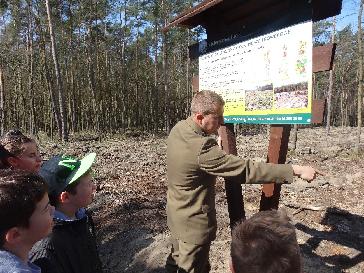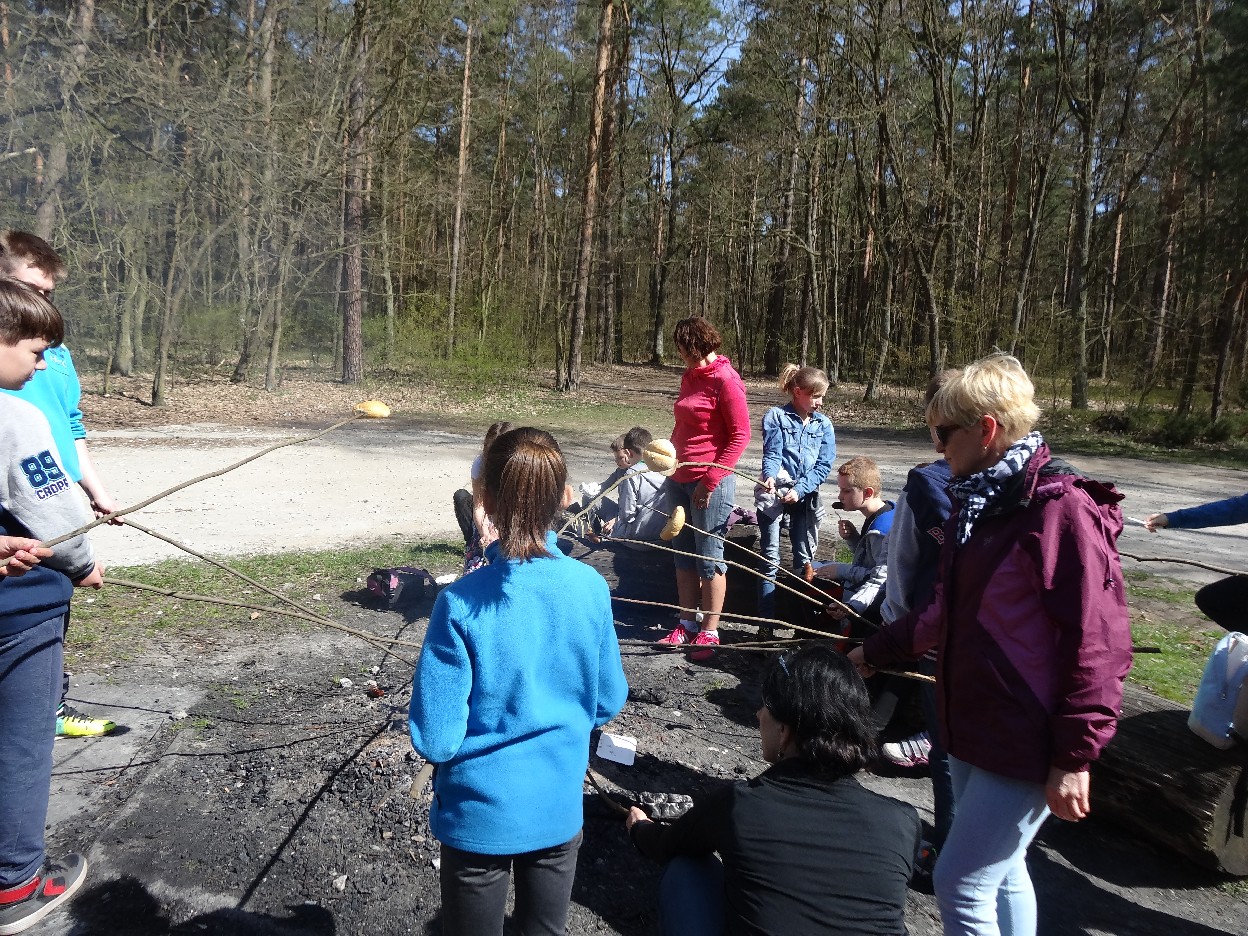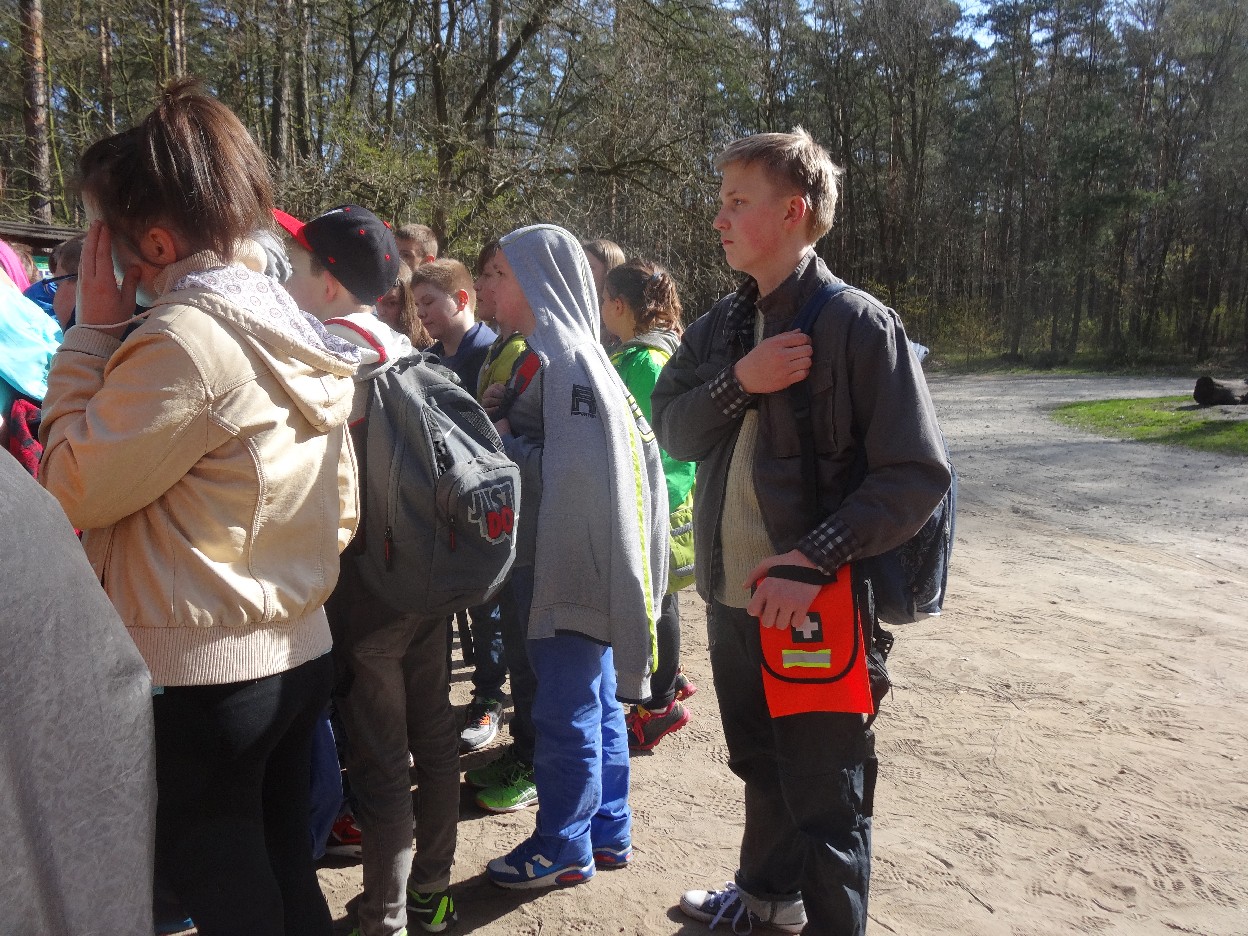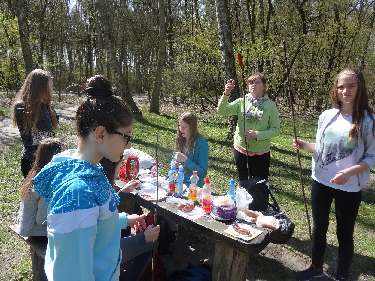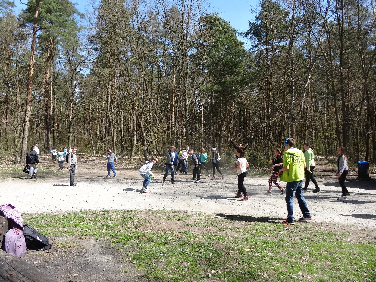 Wszyscy zebraliśmy się w szkole o godzinie 8:20, a dziesięć minut później wyruszyliśmy. Pogoda nam sprzyjała. Słońce świeciło, ale nie było zbyt gorąco. Dotarliśmy do lasu i odbyliśmy spacer po nim. Zadzieraliśmy w górę głowy, aby ujrzeć korony drzew. Z zaciekawieniem słuchaliśmy pana leśnika. Dowiedzieliśmy się, że ta duże rośliny doskonale chronią przed wiatrem. Samica sarny to koza, jelenia – łania. Obserwowaliśmy ptaki, przypatrywaliśmy się sadzonkom. Teraz wiemy co jest najlepszym lekarstwem na chore gardło. Po długim marszu dotarliśmy na polanę. Tam, w specjalnie przygotowanym miejscu odbyło się ognisko. Każdy upiekł kiełbaski, niektórzy nawet chleb czy bułki. Mieliśmy też czas na porozmawianie ze sobą, gry i zabawę. Około godziny 12:00 wyruszyliśmy z powrotem do szkoły. Zaszliśmy tam o 12:25. Po takim dniu w lesie każdy czuł się lepiej.