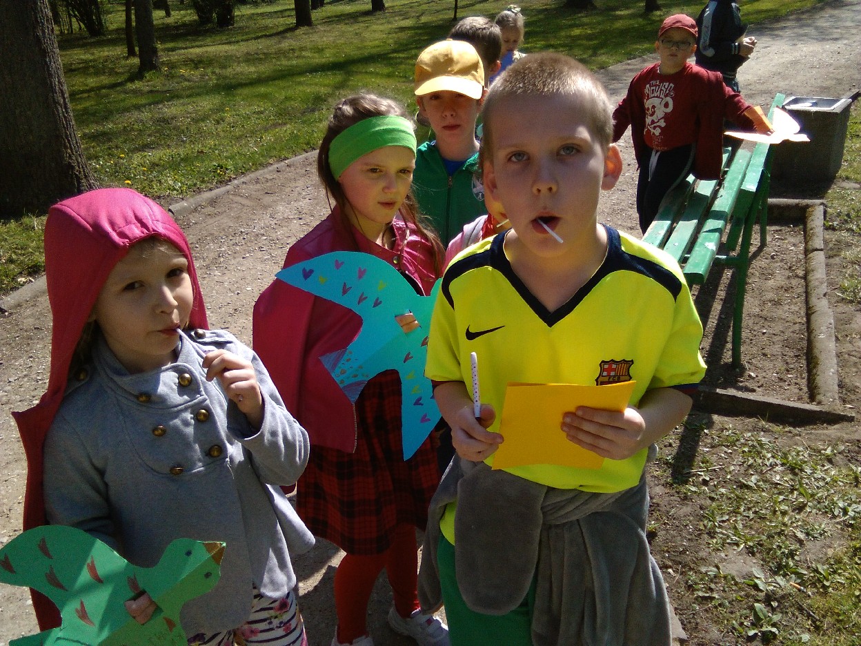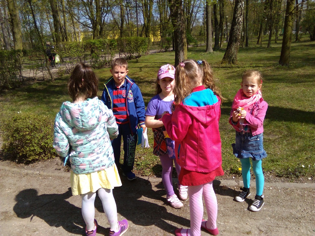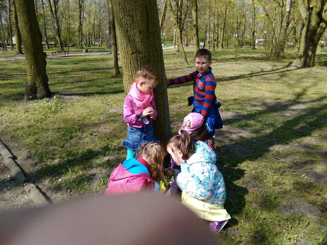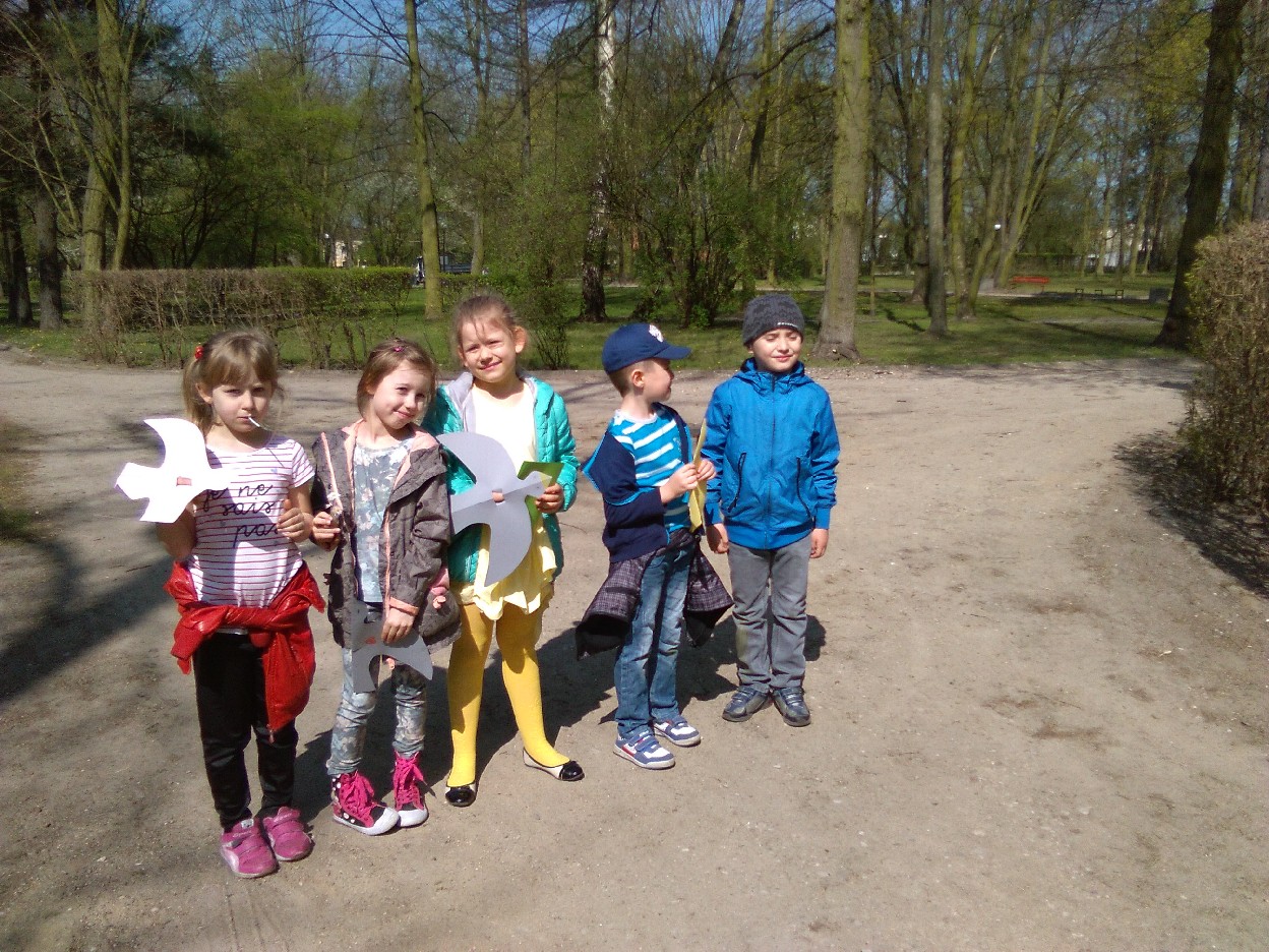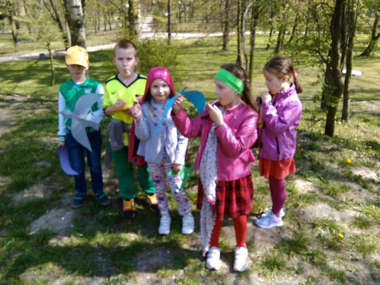 Odkąd słońce coraz częściej zaczęło zaglądać do naszej klasy, nie mogliśmy się już skupić na pracy. Postanowiliśmy wybrać się do parku na pierwszy wiosenny spacer. Podzieleni na zespoły, robiliśmy notatki z naszych obserwacji .. mieliśmy oczy i uszy szeroko otwarte... Przyjemnie było popatrzeć na kobierce kolorowych fiołków, biało-różowych stokrotek, zawilców i pierwiosnków, które spośród zielonej trawy uśmiechały się do nas. Zauważyliśmy, że i kwiaty leszczyny mają swój urok. Pośród drzew – które już wypuściły pierwsze listki - zobaczyć można było nie tylko skowronki, kruki, wrony, kosy, ale też – co nas zdziwiło - rybitwę i gołębie. Przez moment zamknęliśmy oczy i w bezruchu słuchaliśmy śpiewu ptaków. To był prawdziwy, ptasi koncert. Widzieliśmy też owady, które wyszły ze swoich zimowych ukryć, aby nacieszyć się słońcem. Zaskoczyła nas uroda maleńkich kowali bezskrzydłych, które bardzo przypominają biedronki. Widzieliśmy też pracowite mrówki, pasikonika, urzędującego pająka, ślimaka i piękne kolorowe motyle. W ten ciepły, słoneczny dzień na spacerze w parku było mnóstwo ludzi. Oni pewnie tak jak jak my, przyszli odpocząć i poobserwować budzącą się do życia przyrodę.