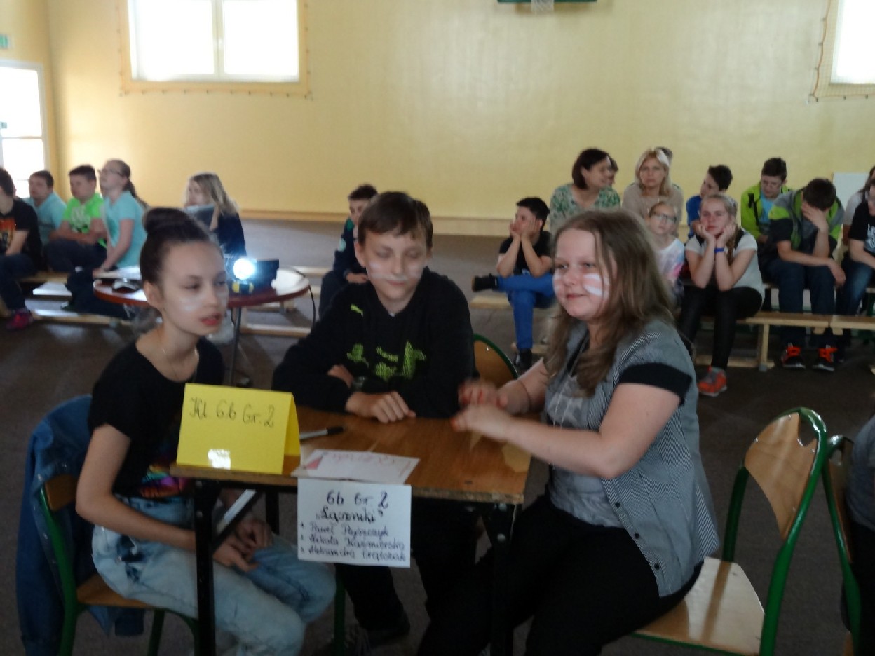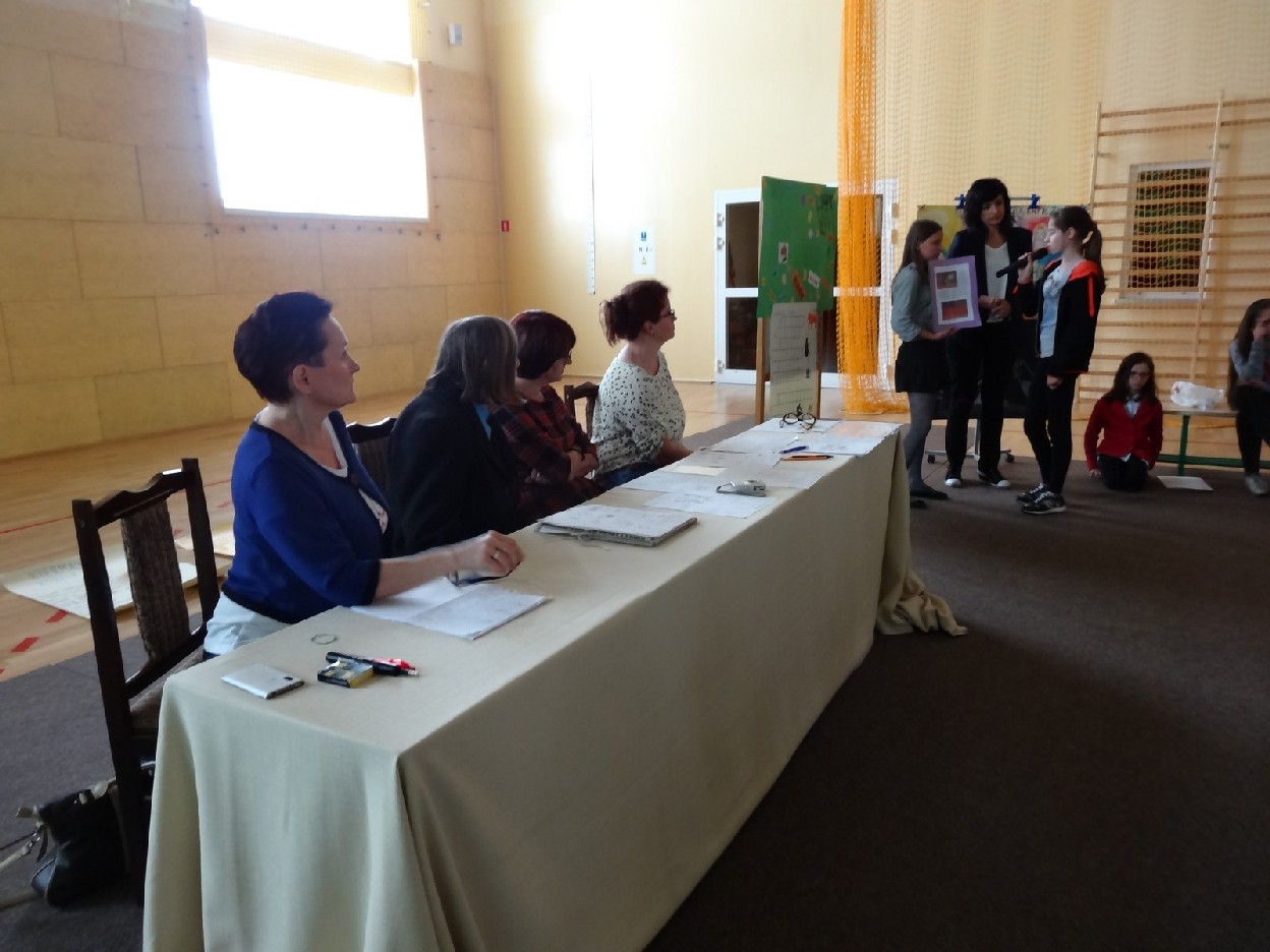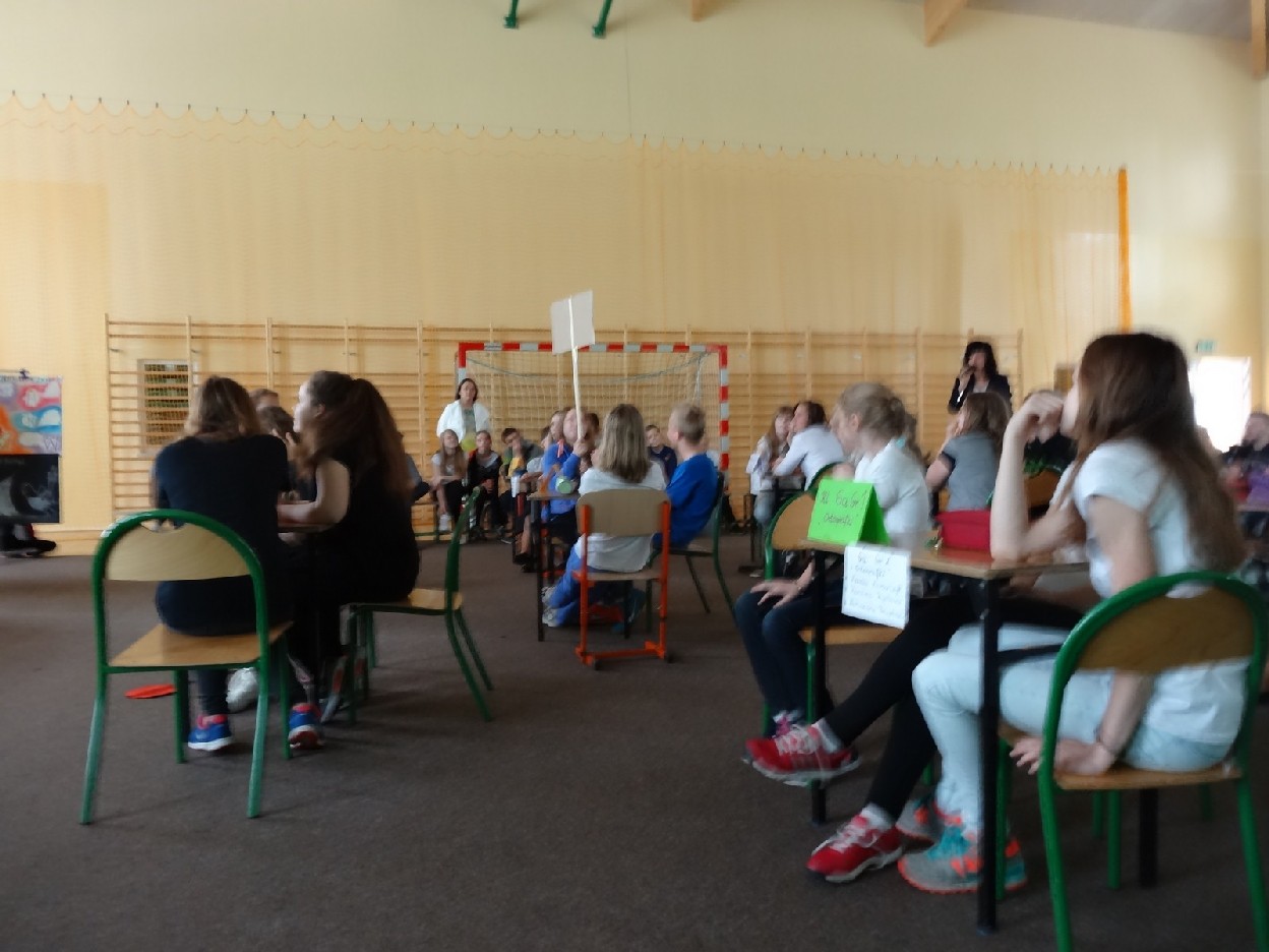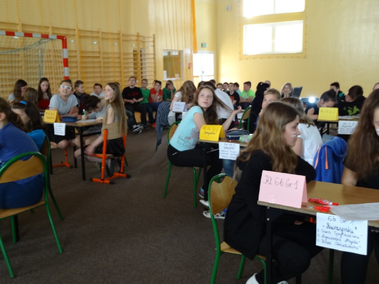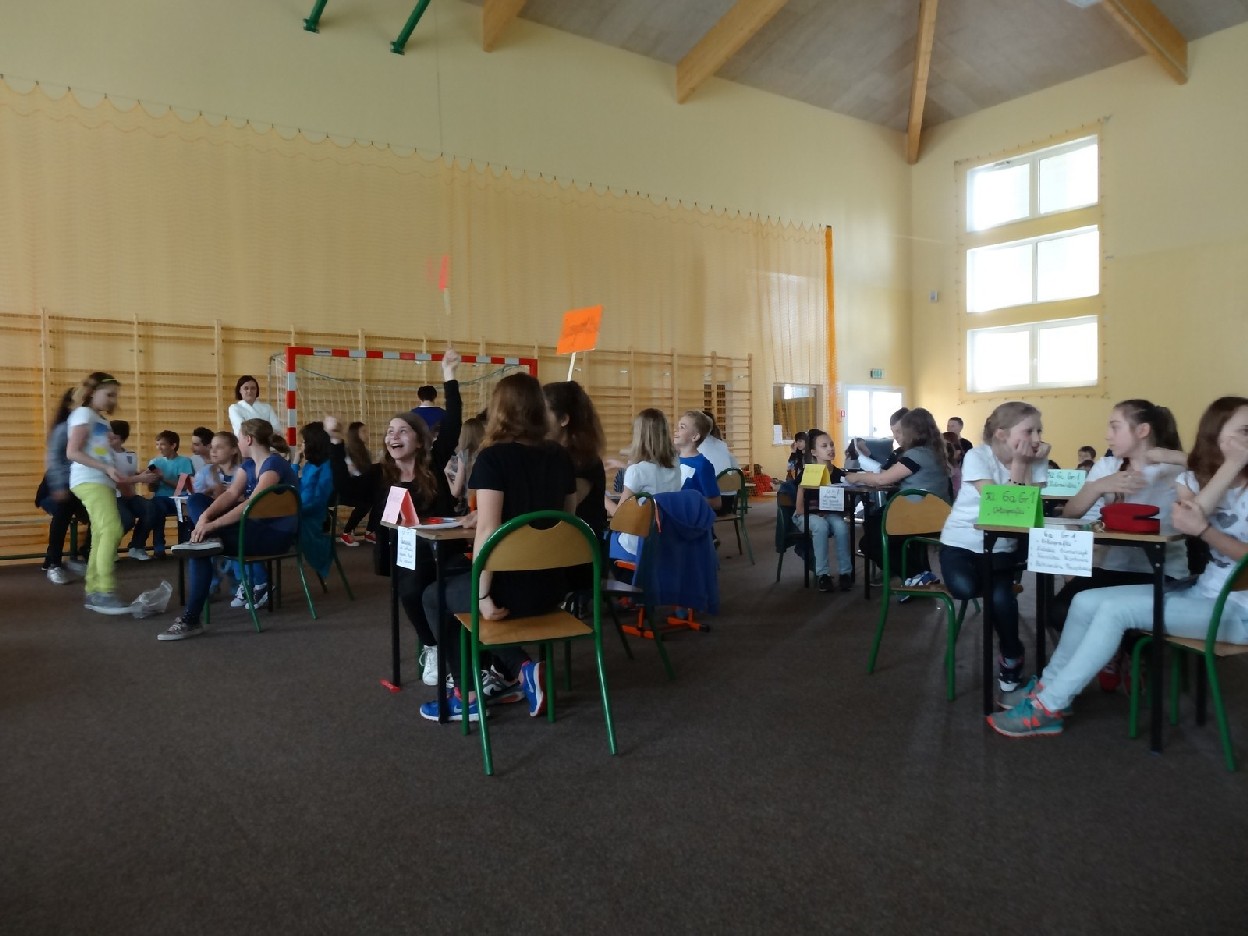 Dnia 15.05.2015r. na czwartej i piątej godzinie lekcyjnej w naszej szkole w sali gimnastycznej odbył się I Szkolny Turniej Językowy „ Z poprawną polszczyzną na co dzień”. Szóste klasy wystawiły dwie trzyosobowe drużyny, które brały udział w konkursi: „Poetki”, „Ortografki” z 6a, „Murzynki”, „Łączniki” z 6b, „Samogłoski’, „Polonistki” z 6c, ‘Gżegżółki”, „Biedronki” z 6d. Uroczystość prowadziła nauczycielka języka polskiego- pani Ewa Pawlak. Zmagania uczniów oceniała szanowna komisja, do której należały: pani Emilia Kozłowska, pani Maria Dizner, pani Małgorzata Pakuła oraz pani Elżbieta Nowak.